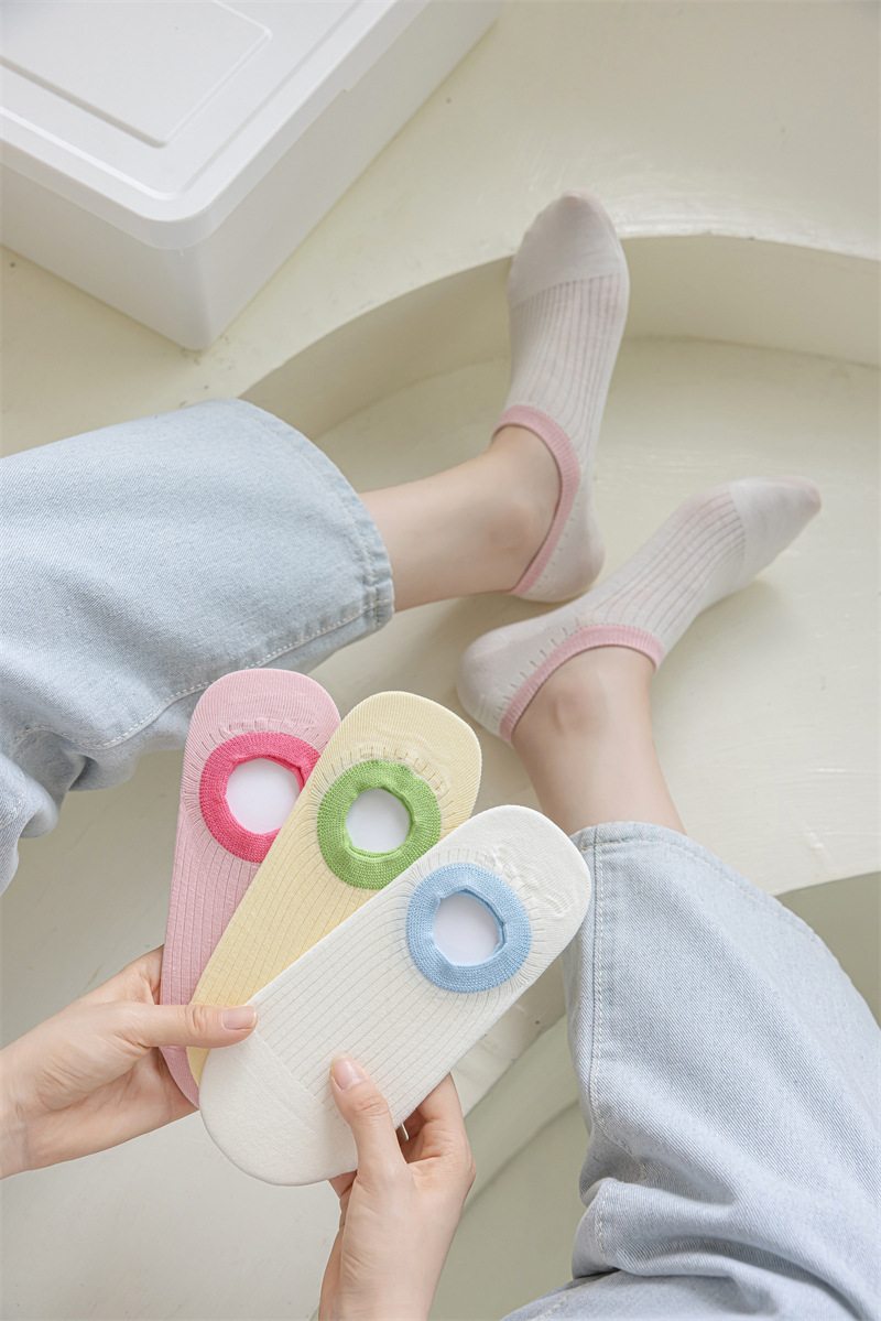 여성 컬러 매칭 발목 양말 로우 컷 보이지 않는 양말 미끄럼 미끄럼 방지 힐, 여름 얇은 순수면 뼈없는 보이지 않는 양말스토어 가기