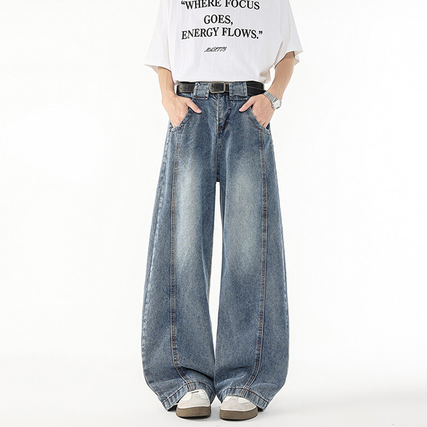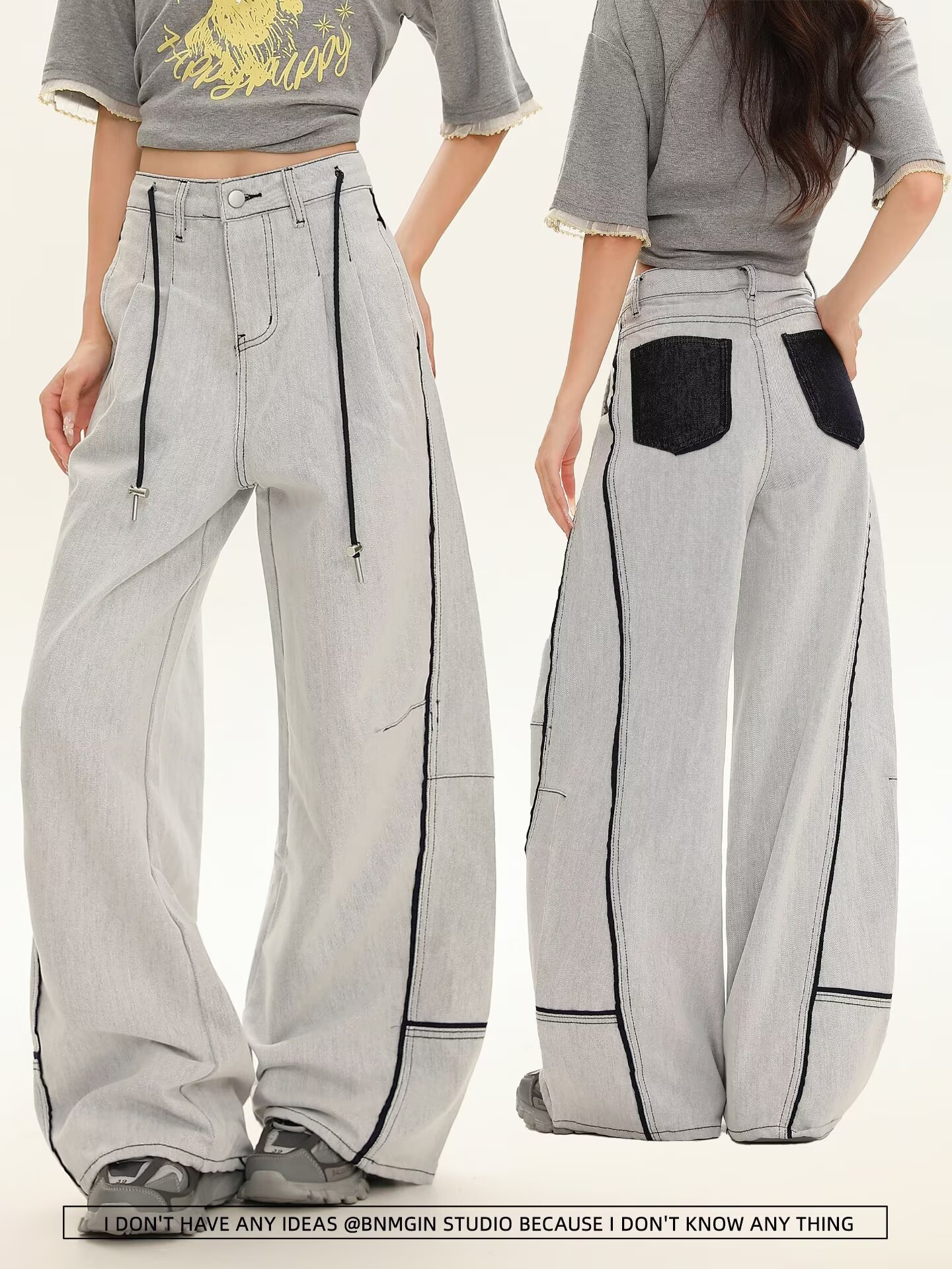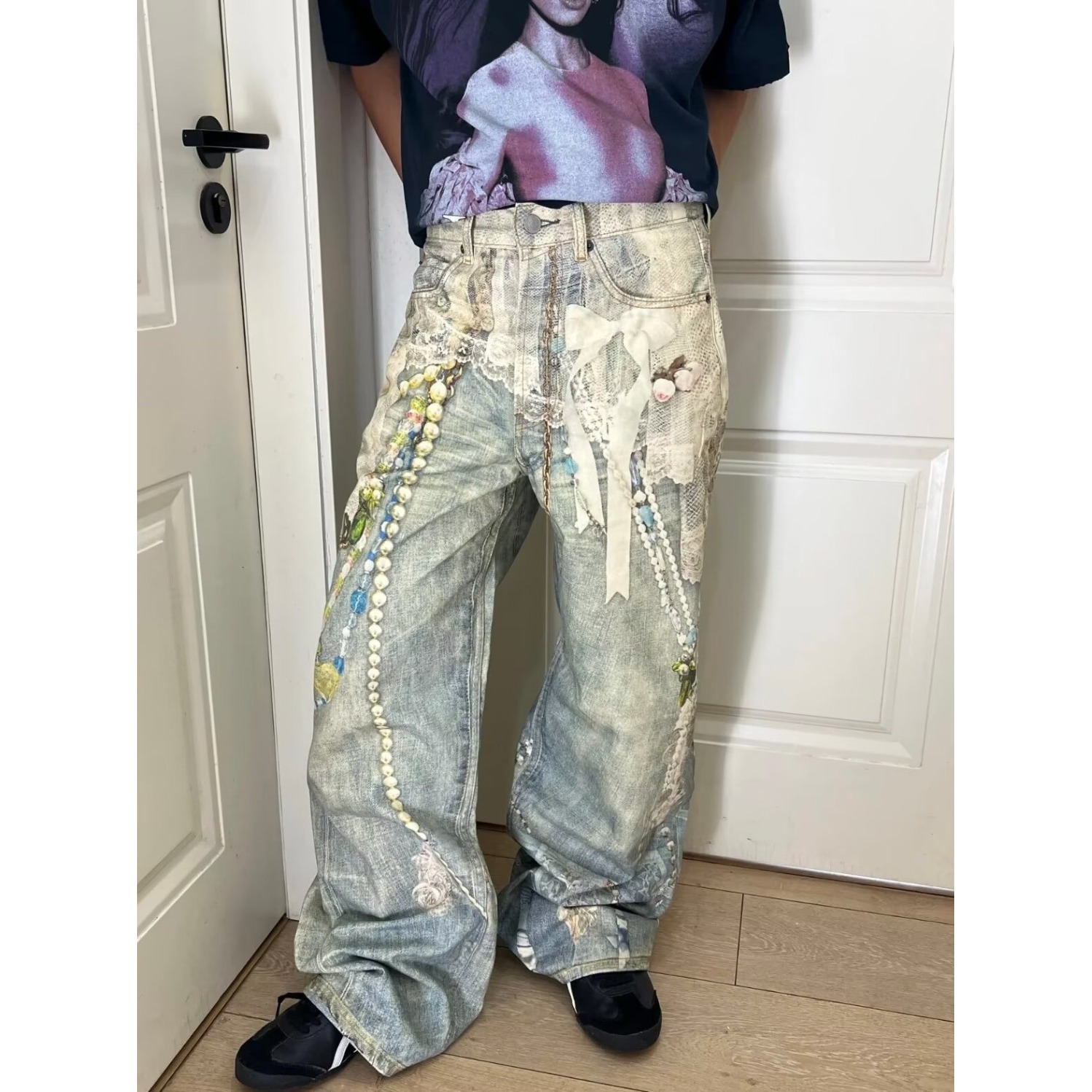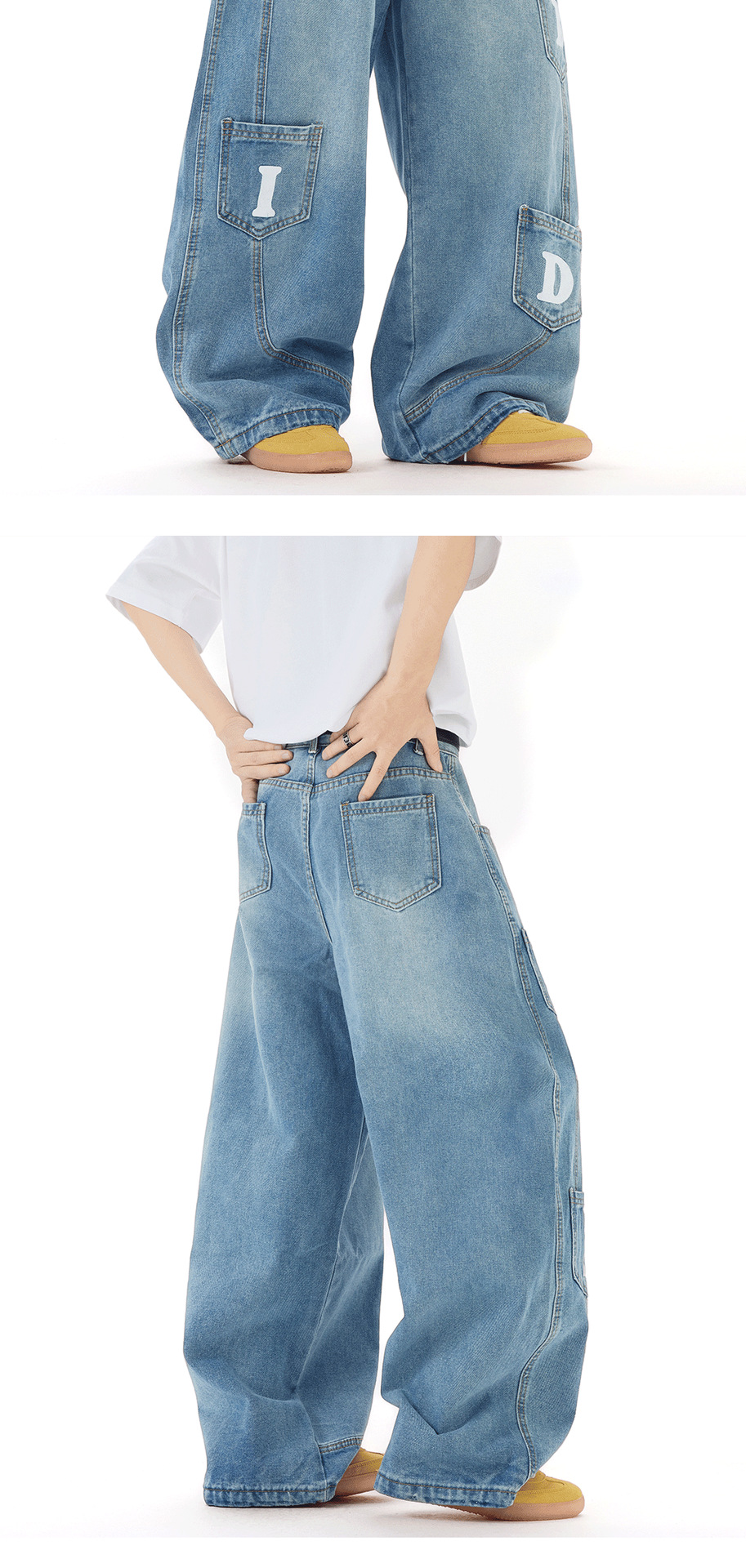 아메리칸 레트로 트렌디 브랜드 워싱 멀티 포켓 디자인 세이버 팬츠 디스트레스드 남녀 청바지 바닥 길이 루즈 팬츠스토어 가기