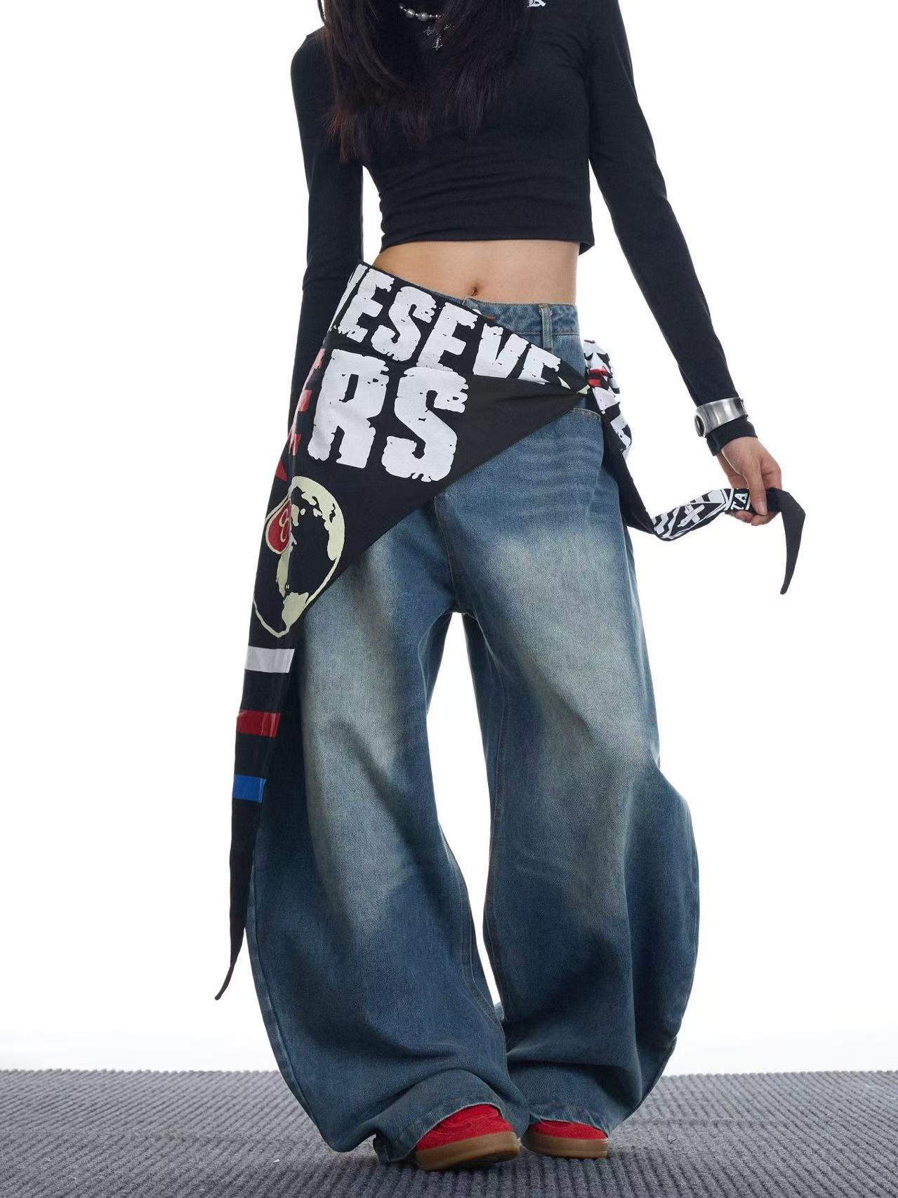 아메리칸 레트로 트렌디 브랜드 워싱 멀티 포켓 디자인 세이버 팬츠 디스트레스드 남녀 청바지 바닥 길이 루즈 팬츠
