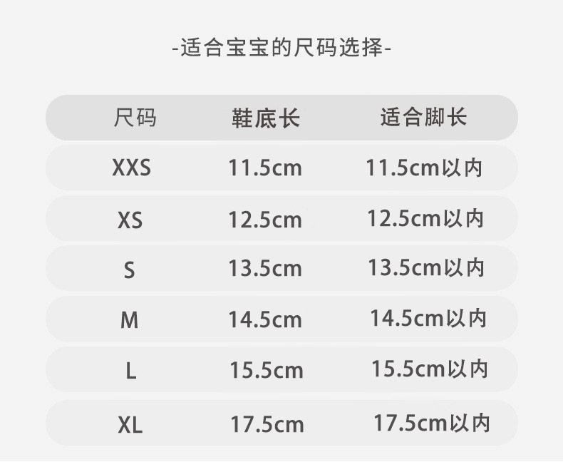 • XXS는 11.5CM 내의 발 길이에 적합합니다.