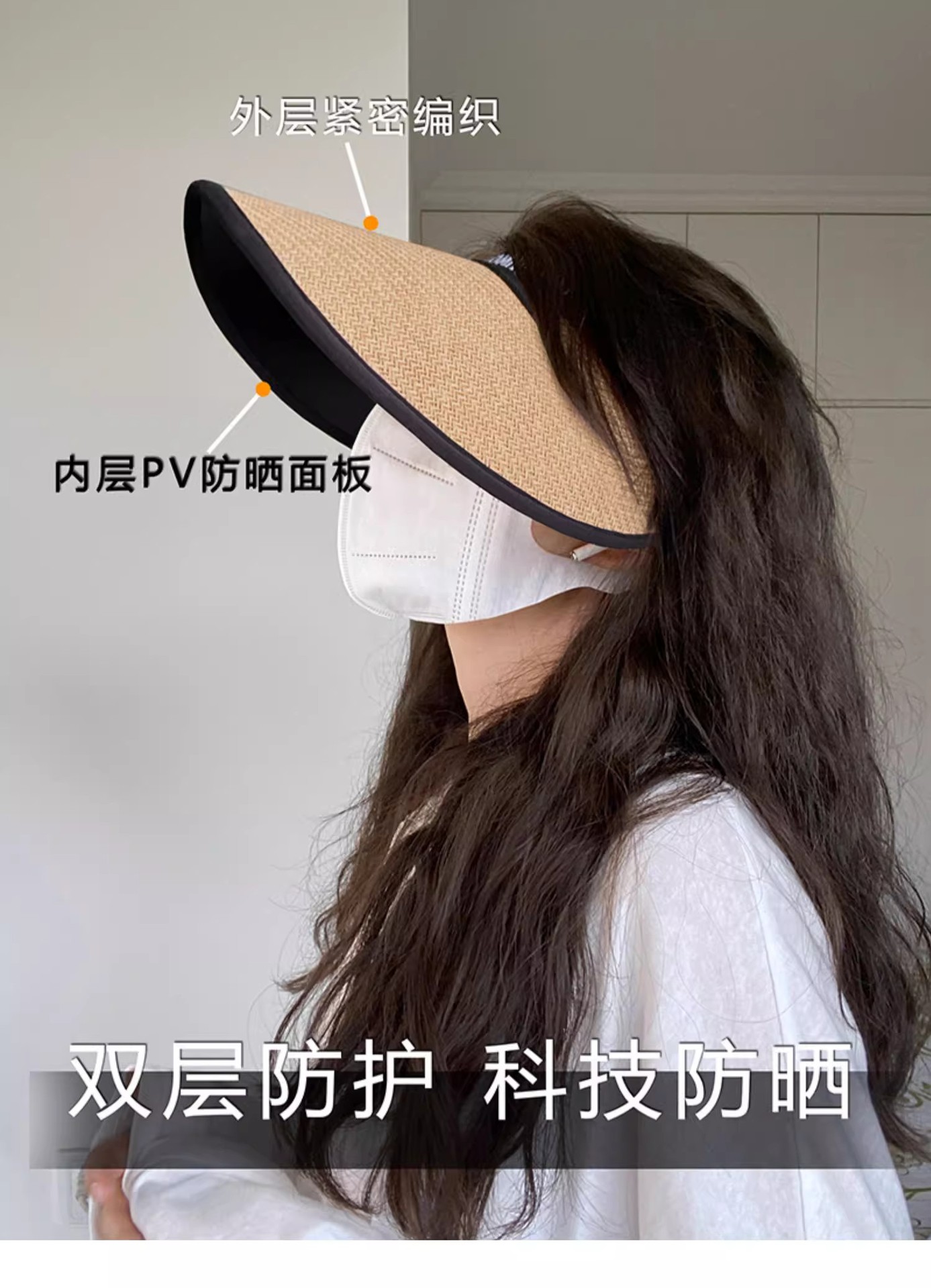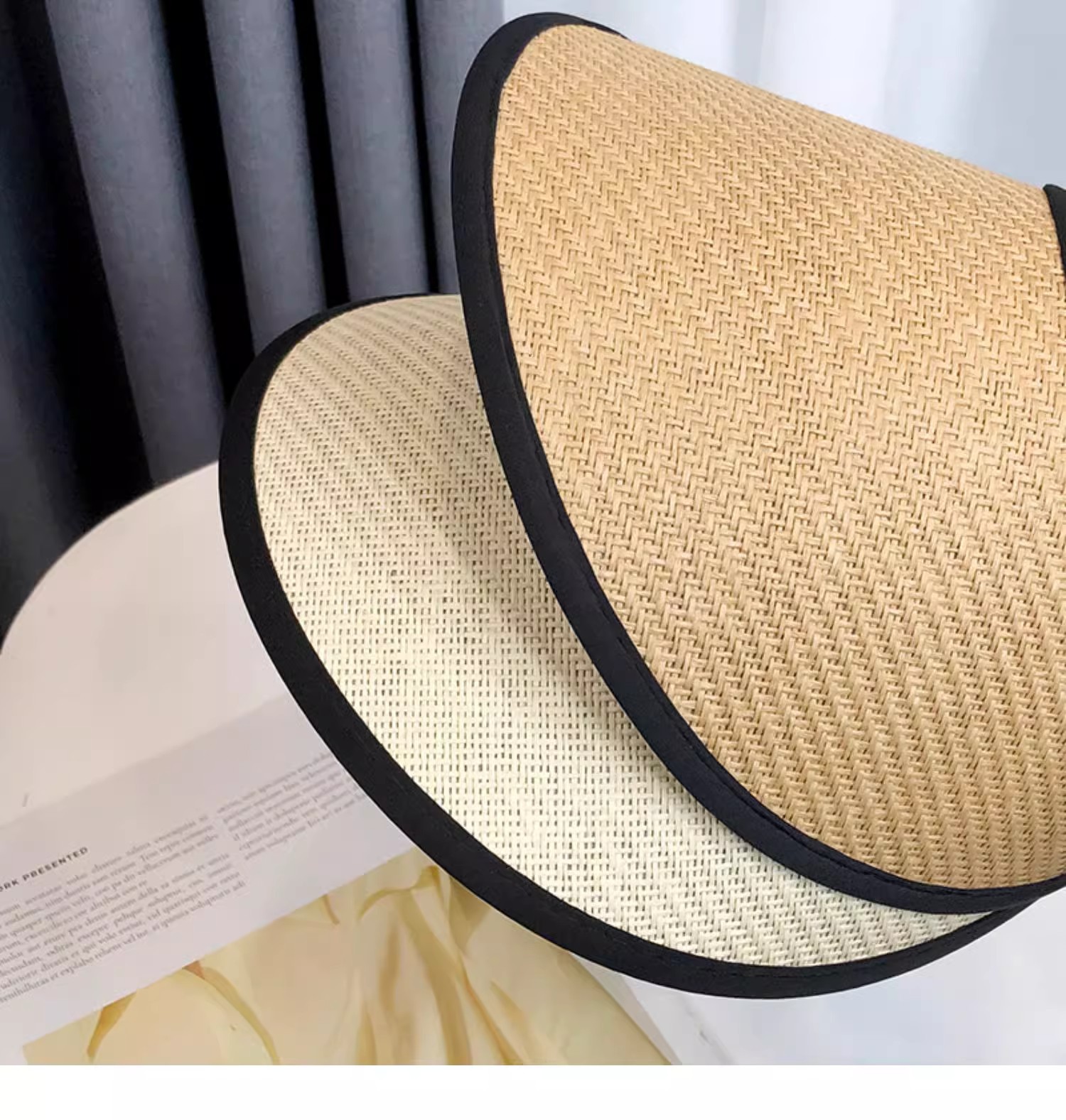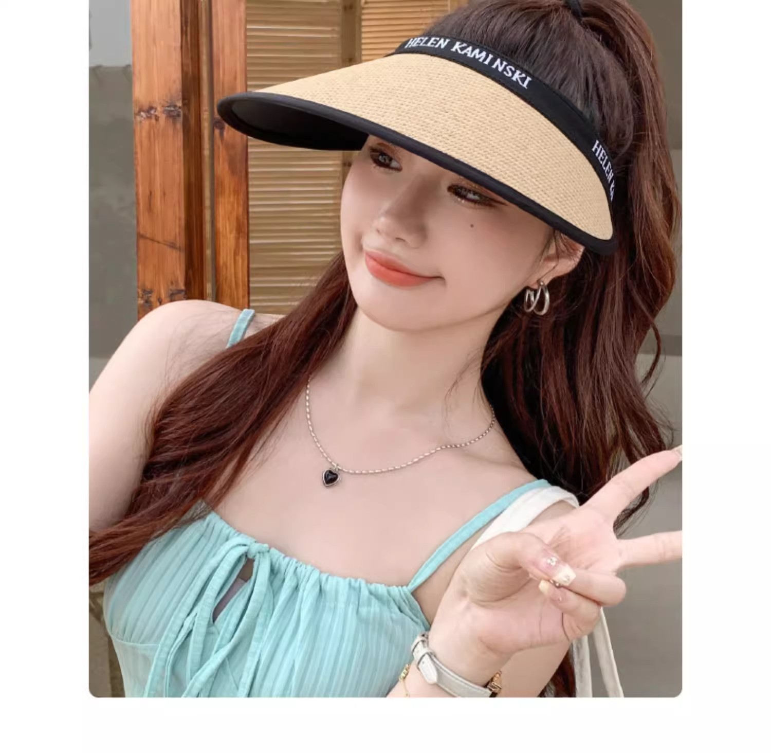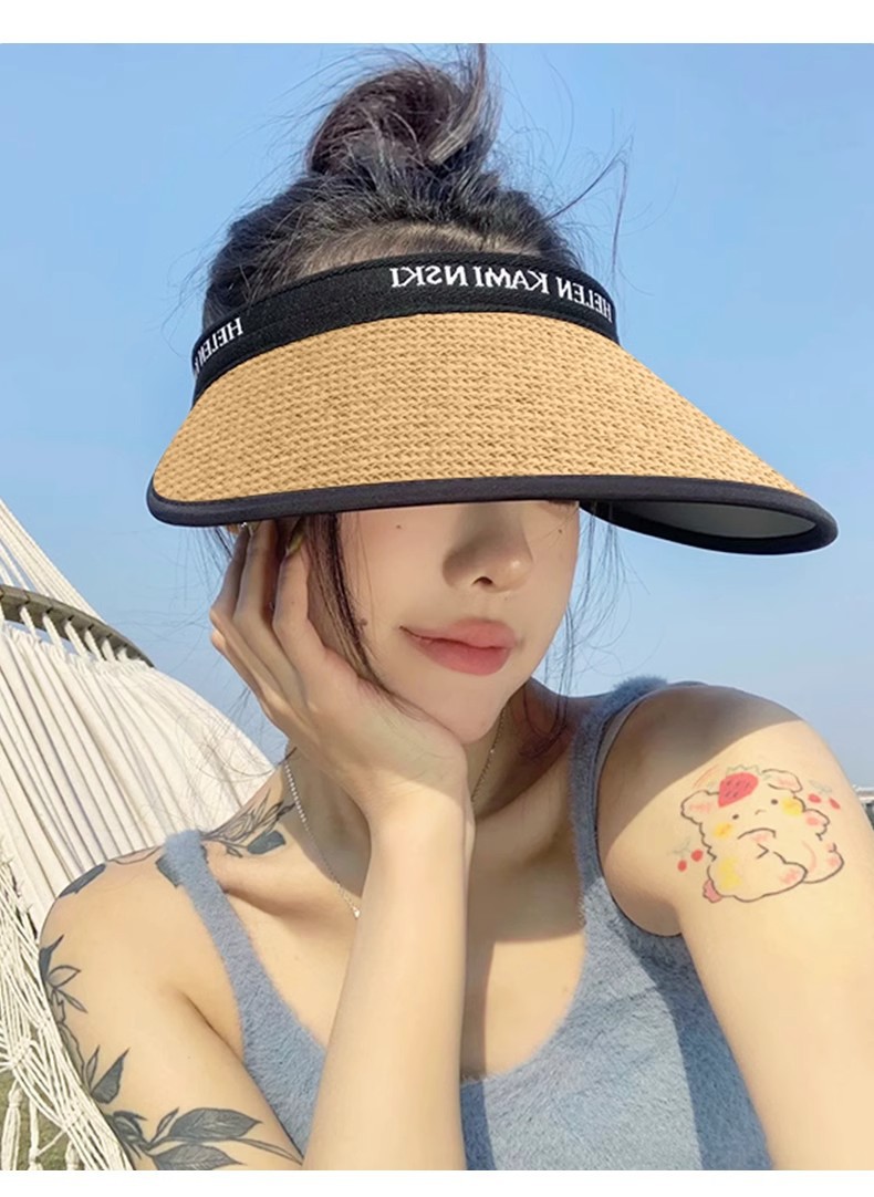 여성용 양면 UV 자외선 차단 모자, 새로운 여름 자외선 차단 챙이 큰 태양 모자, 레터링 밀짚 빈탑 태양 모자스토어 가기