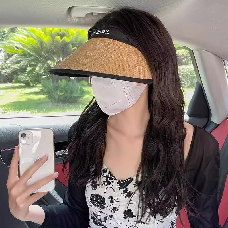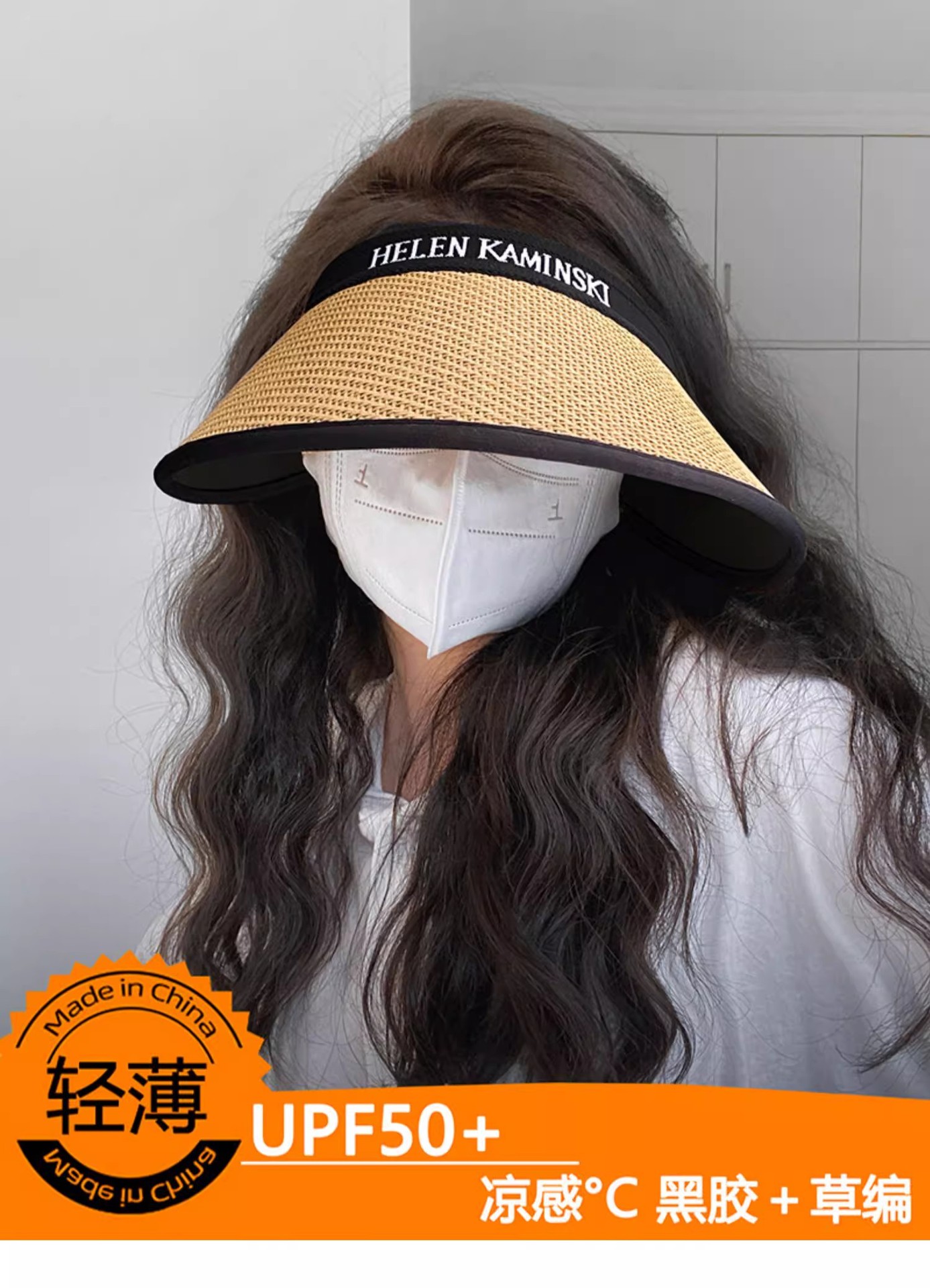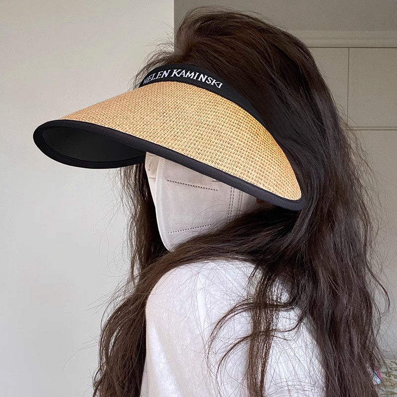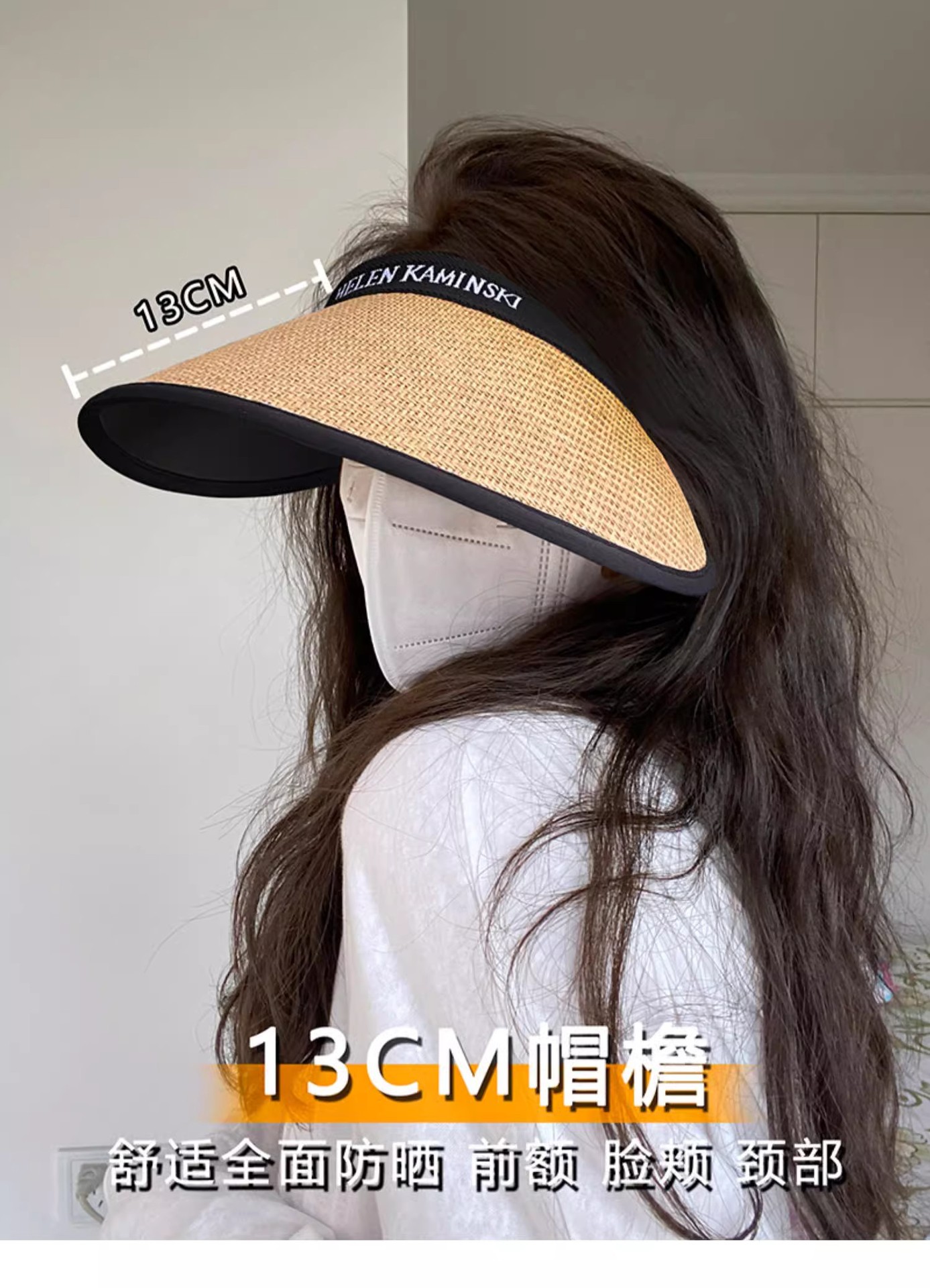 여성용 양면 UV 자외선 차단 모자, 새로운 여름 자외선 차단 챙이 큰 태양 모자, 레터링 밀짚 빈탑 태양 모자스토어 가기