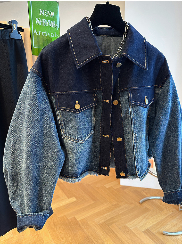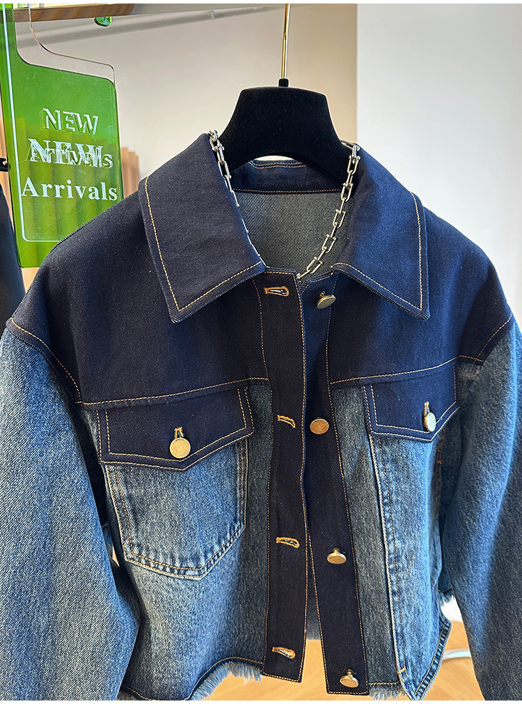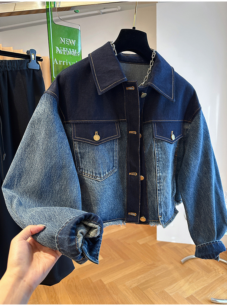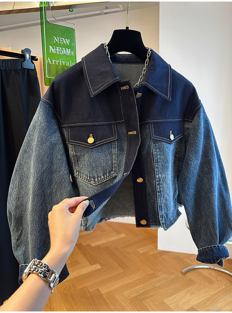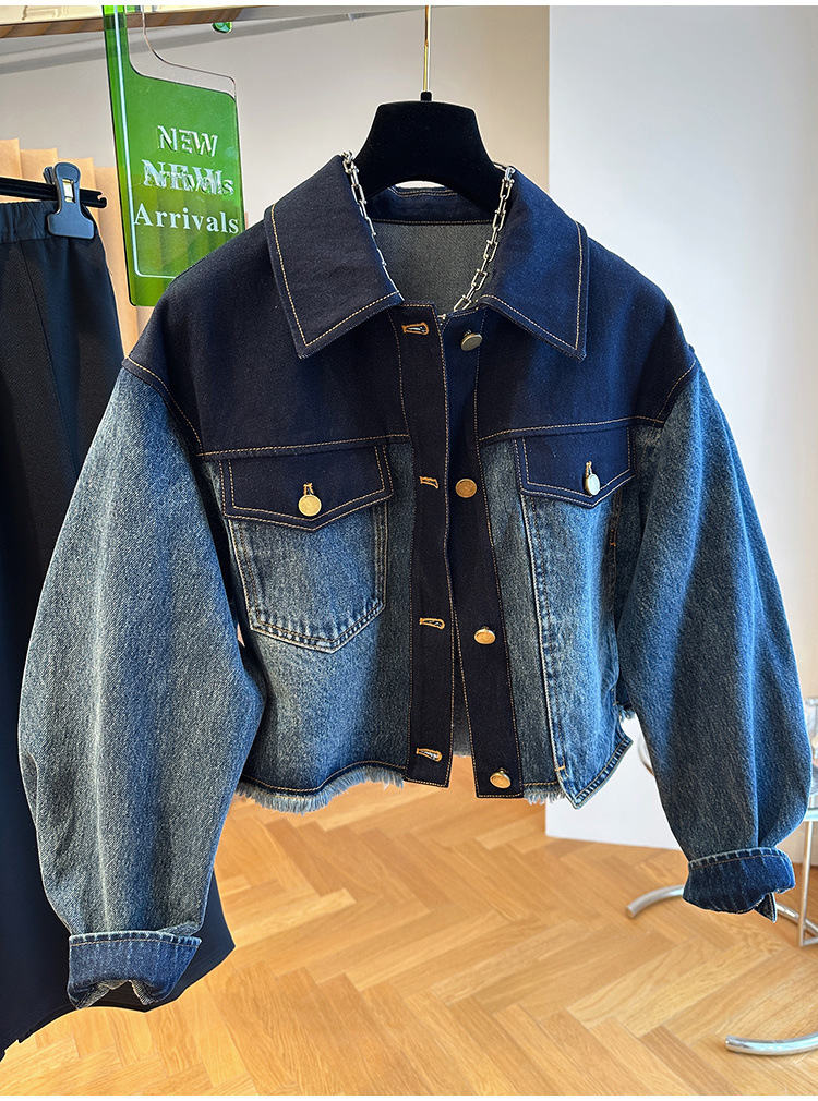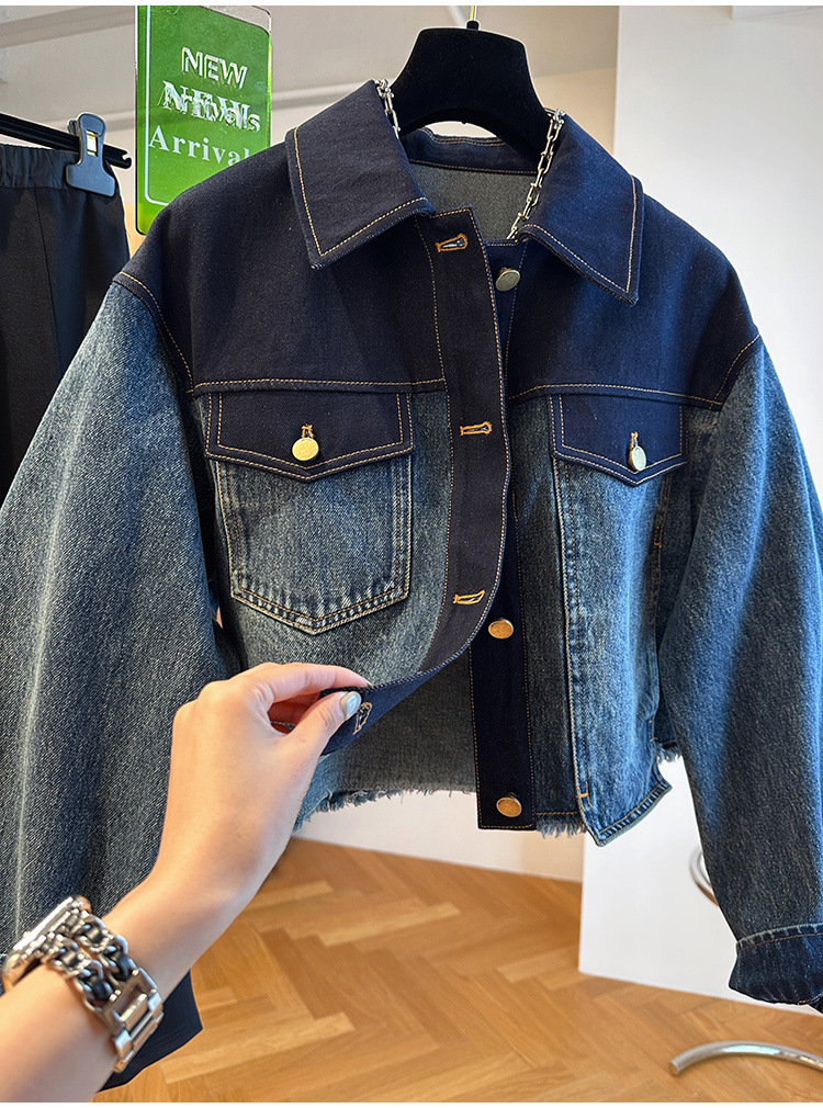 올해 인기있는 유럽의 느슨한 캐주얼 그라디언트, 데님 코트 여성용 봄과 가을 짧은 재킷 탑스토어 가기