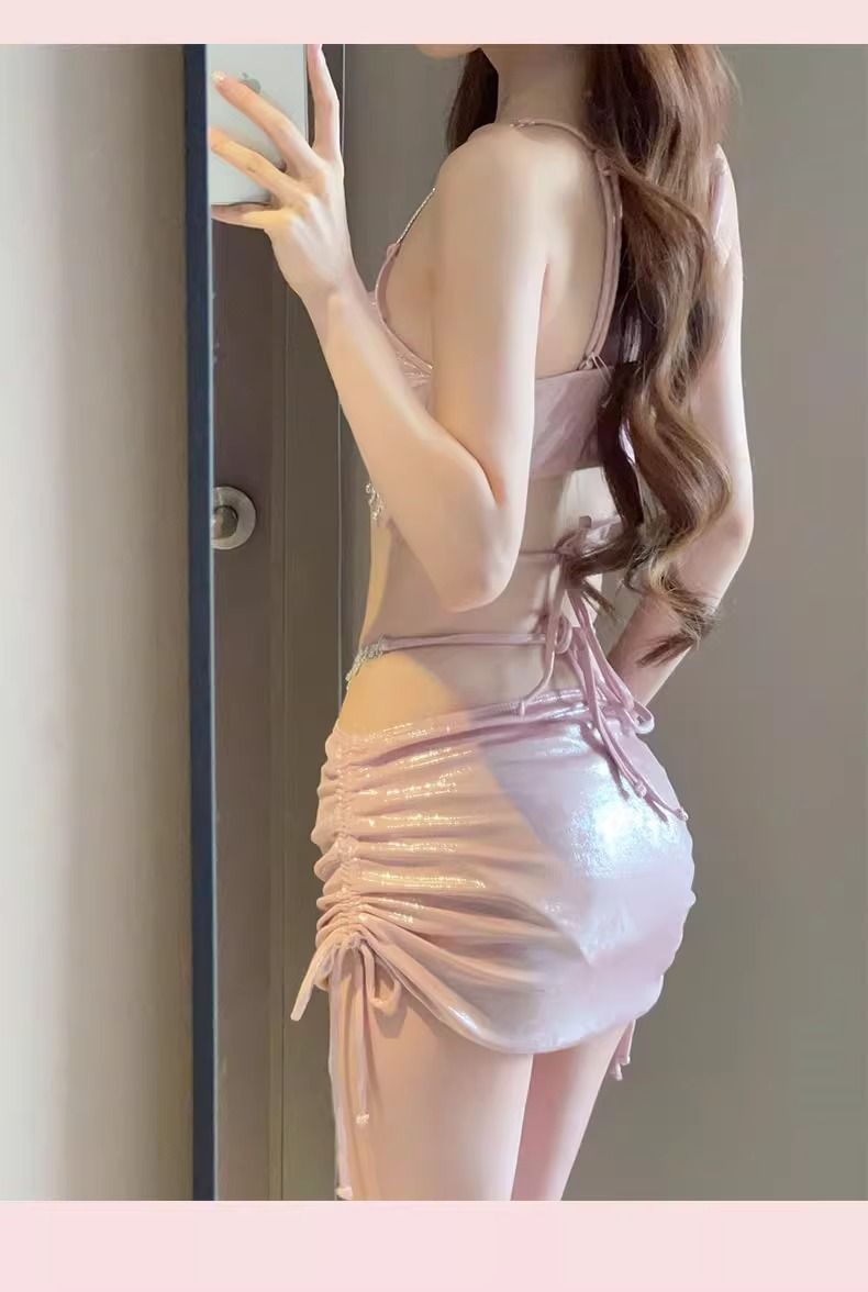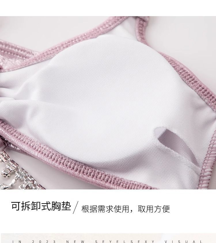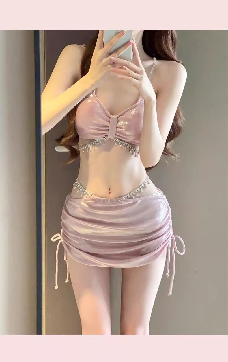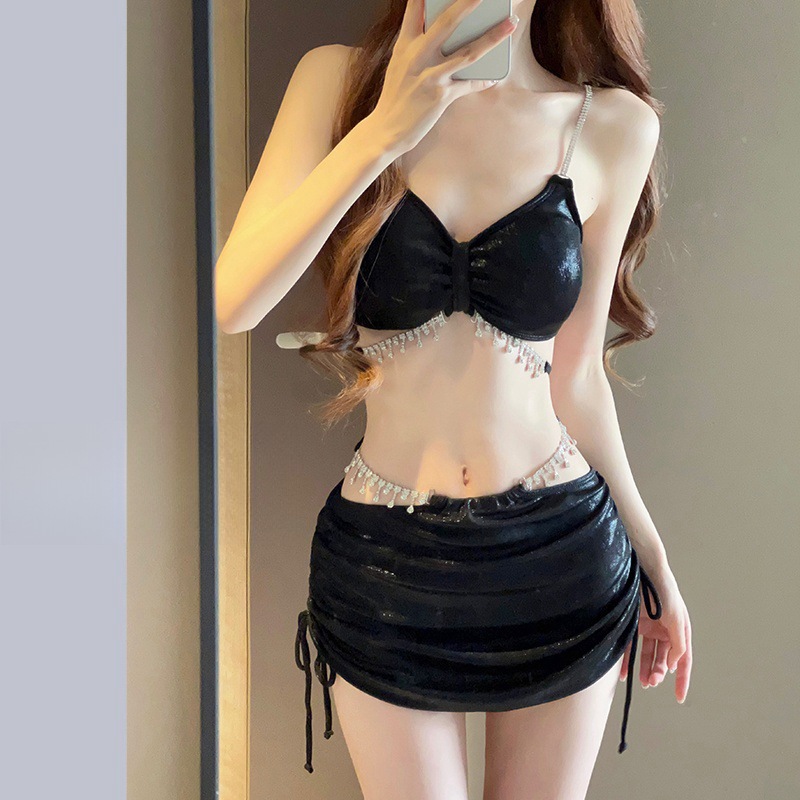 비키니2025 신상 끈 수영복 여성용, 큐빅 장식 휴가용 온천 섹시 투피스 수영복스토어 가기