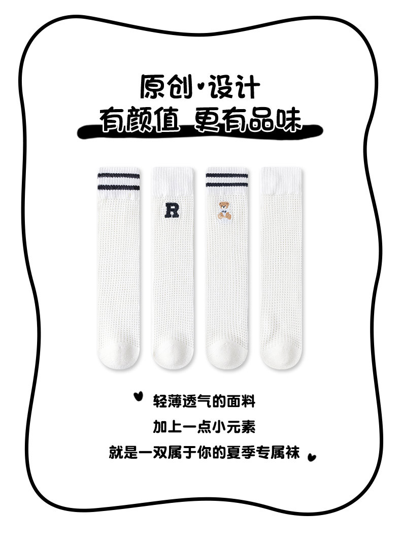 어린이 양말 학생 공연 스포츠 양말 여름 한국식 메쉬 자수 곰 조수 양말 61 고등학교 교복 양말