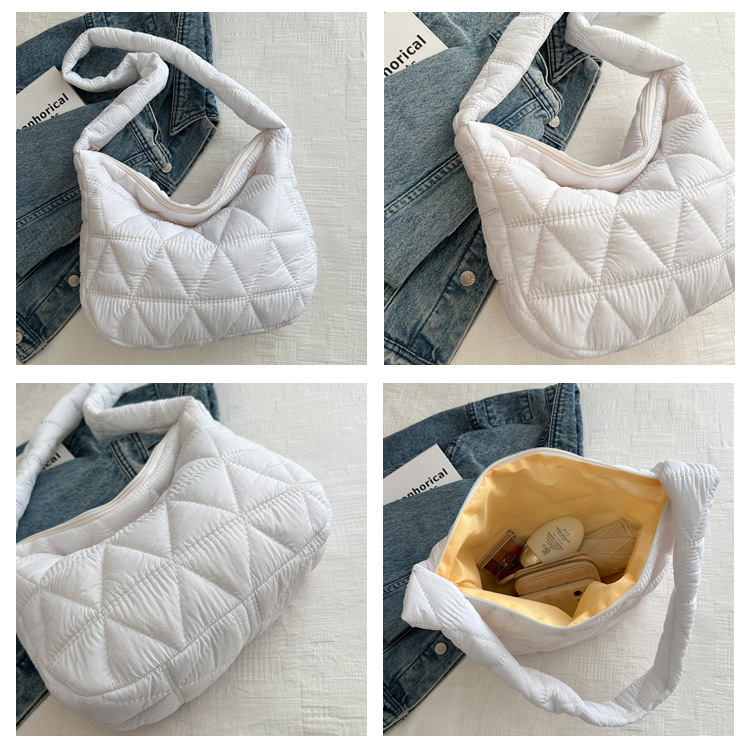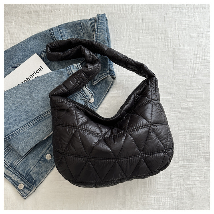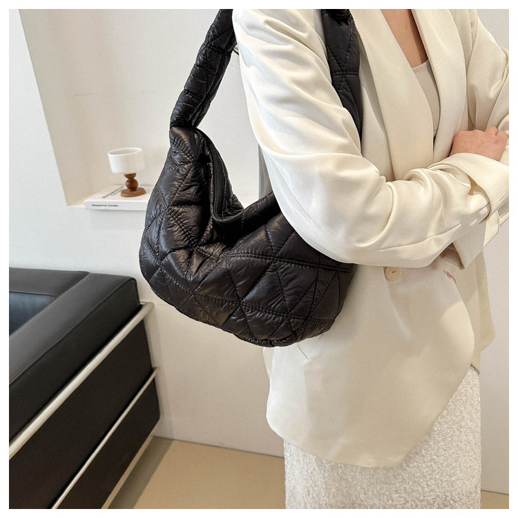여성 가방 2024 새로운 유행 한국 스타일 대용량 다이아몬드 자수면 패딩 의류 구름 가방 서양식 여성 어깨 겨드랑이 가방스토어 가기