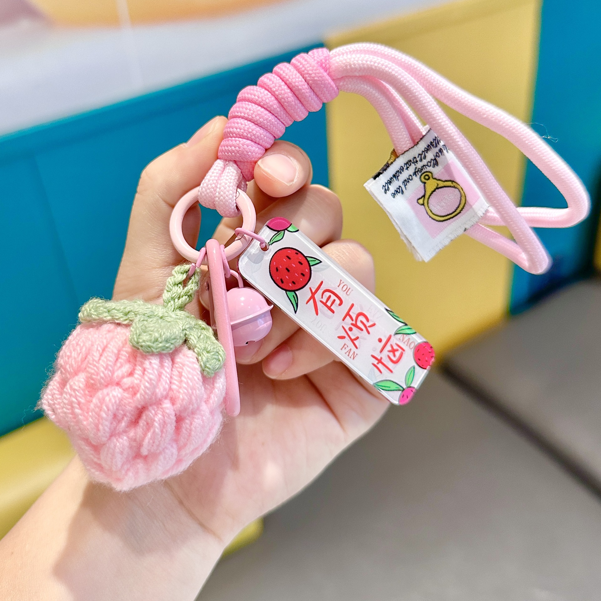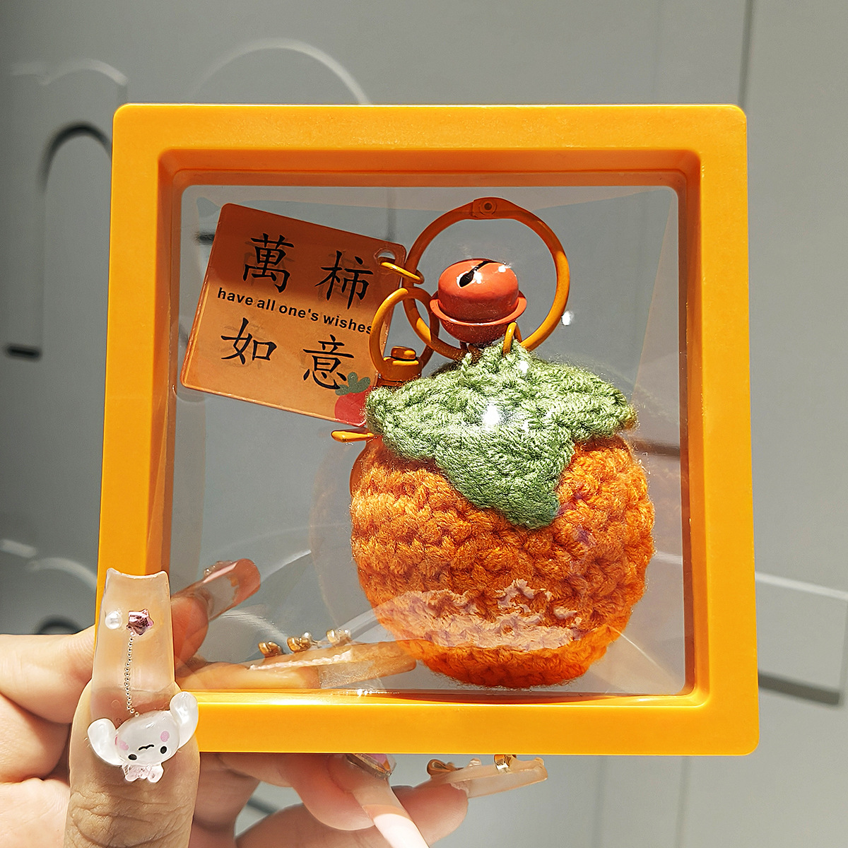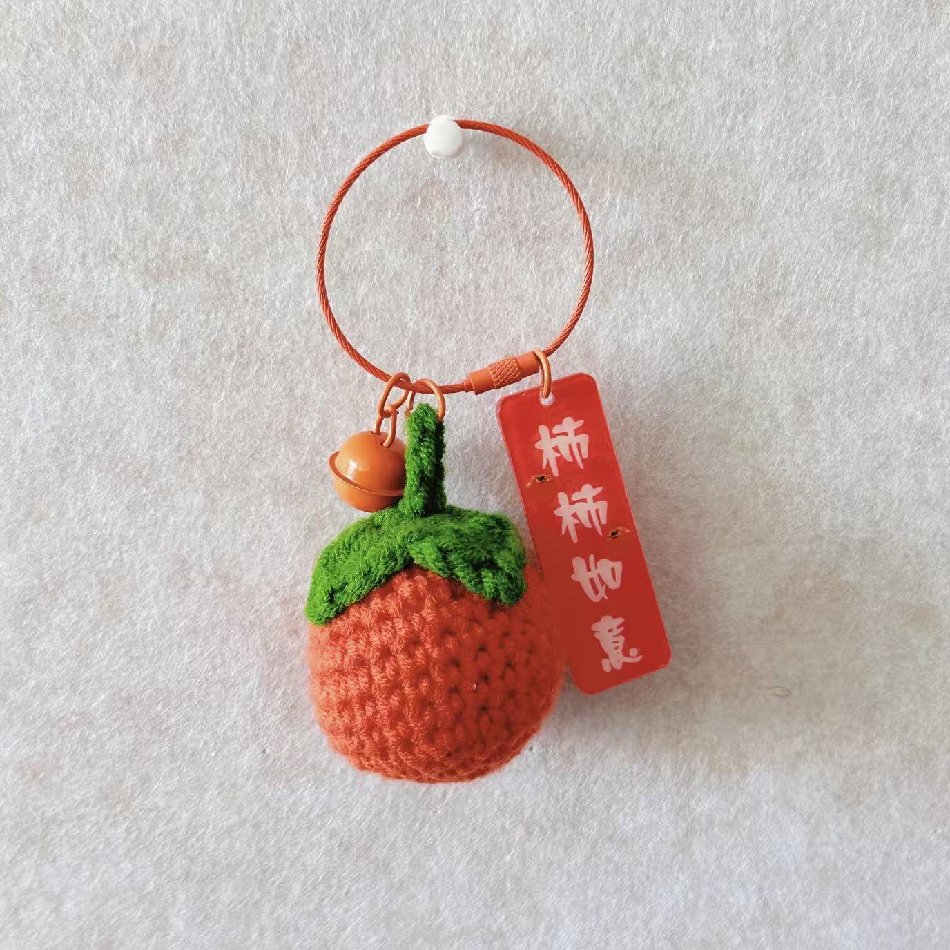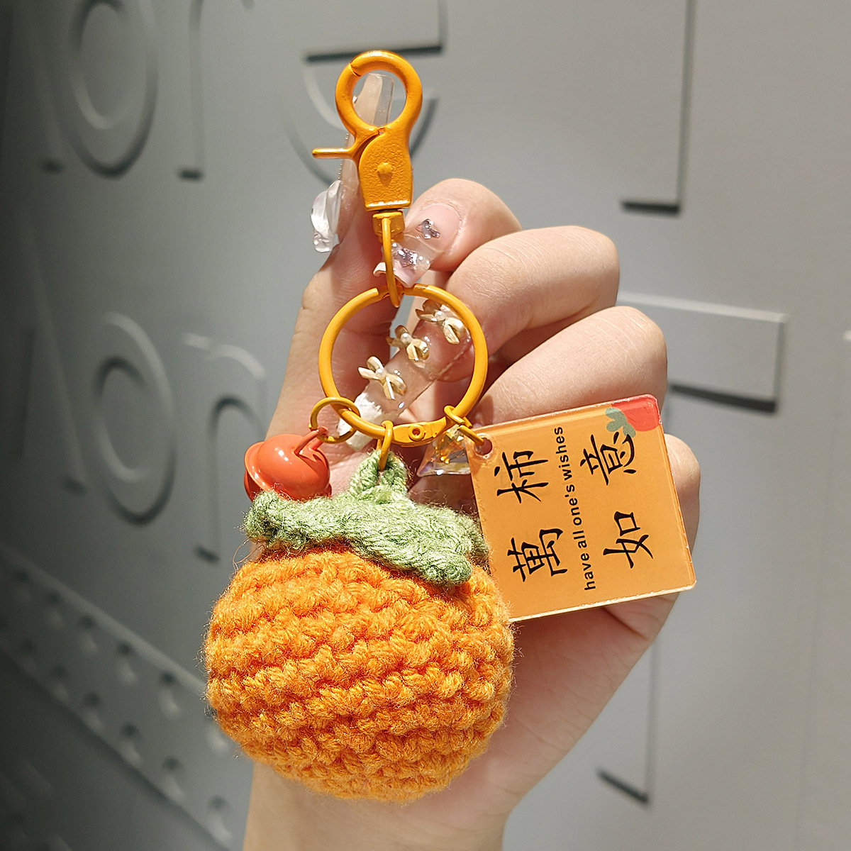 손으로 짠 양모 펜던트 봉제 크로 셰 뜨개질 좋은 일이 일어납니다. 감 키 체인 좋은 감 가방 작은 액세서리스토어 가기