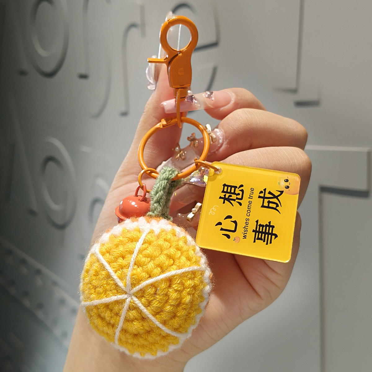 손으로 짠 양모 펜던트 봉제 크로 셰 뜨개질 좋은 일이 일어납니다. 감 키 체인 좋은 감 가방 작은 액세서리
