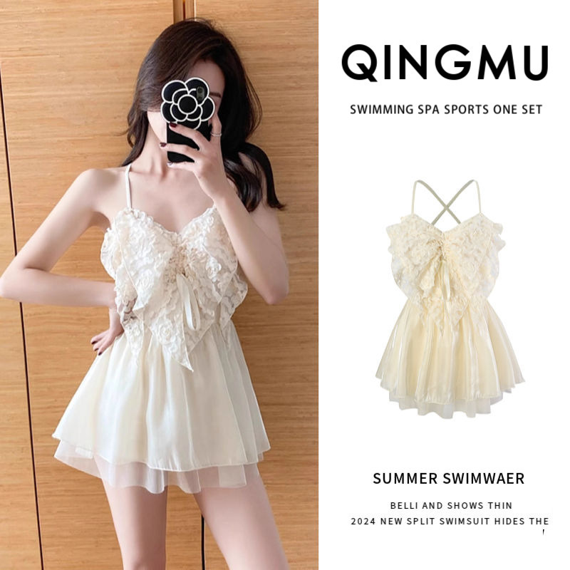 여성용 수영복 여름 레이스 하이 엔드 2025 새로운 순수 욕망 틈새 인터넷 연예인 보수적 인 배 커버 슬리밍 온천 수영복스토어 가기