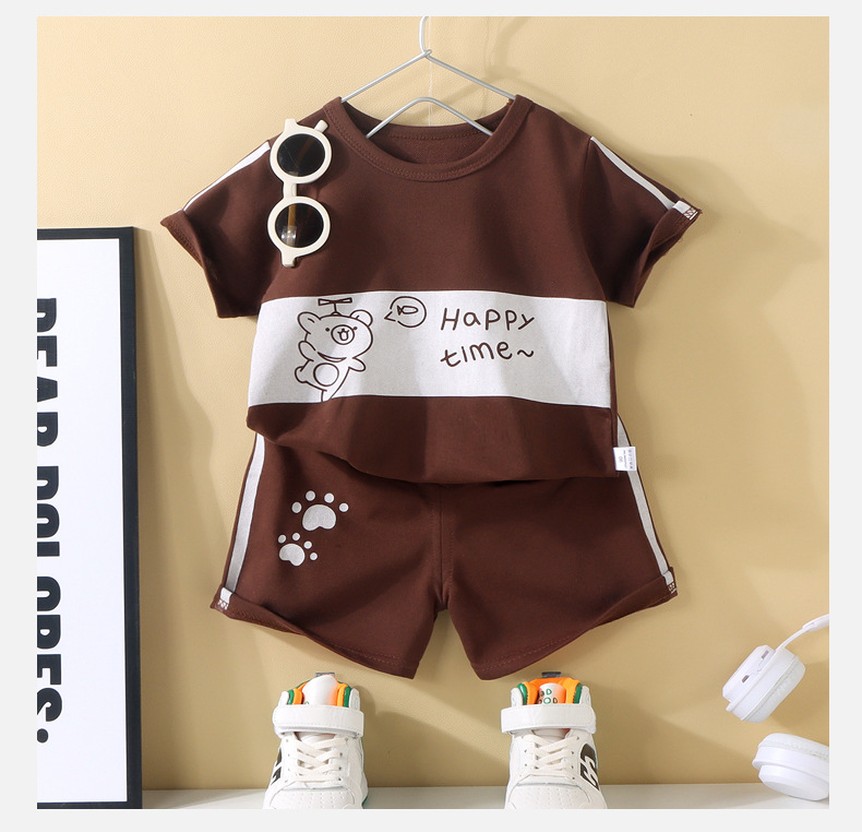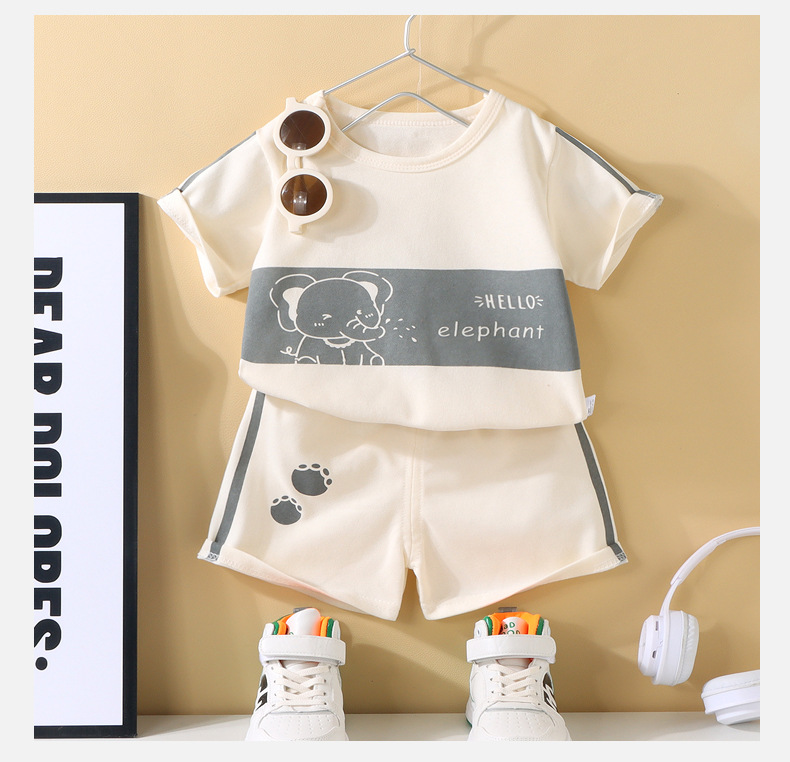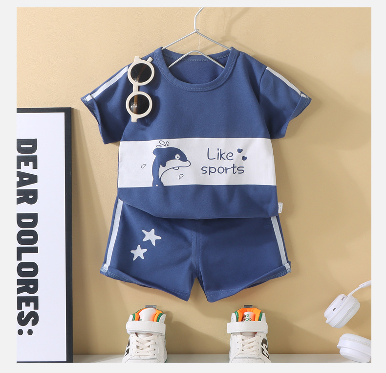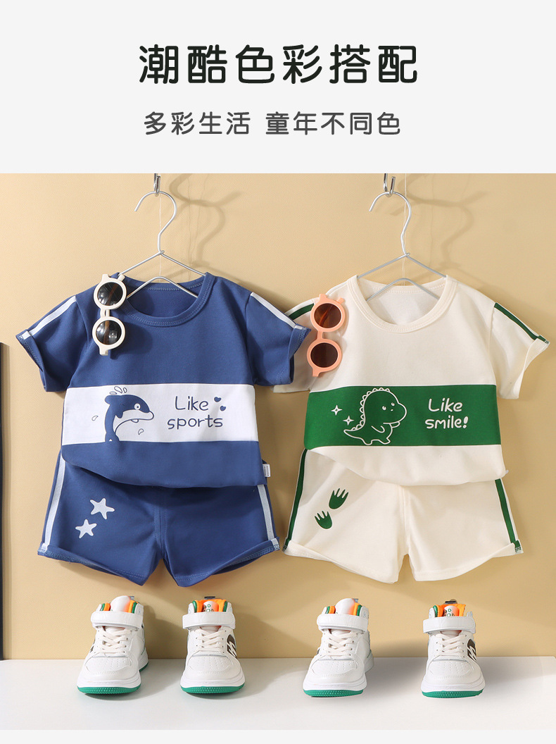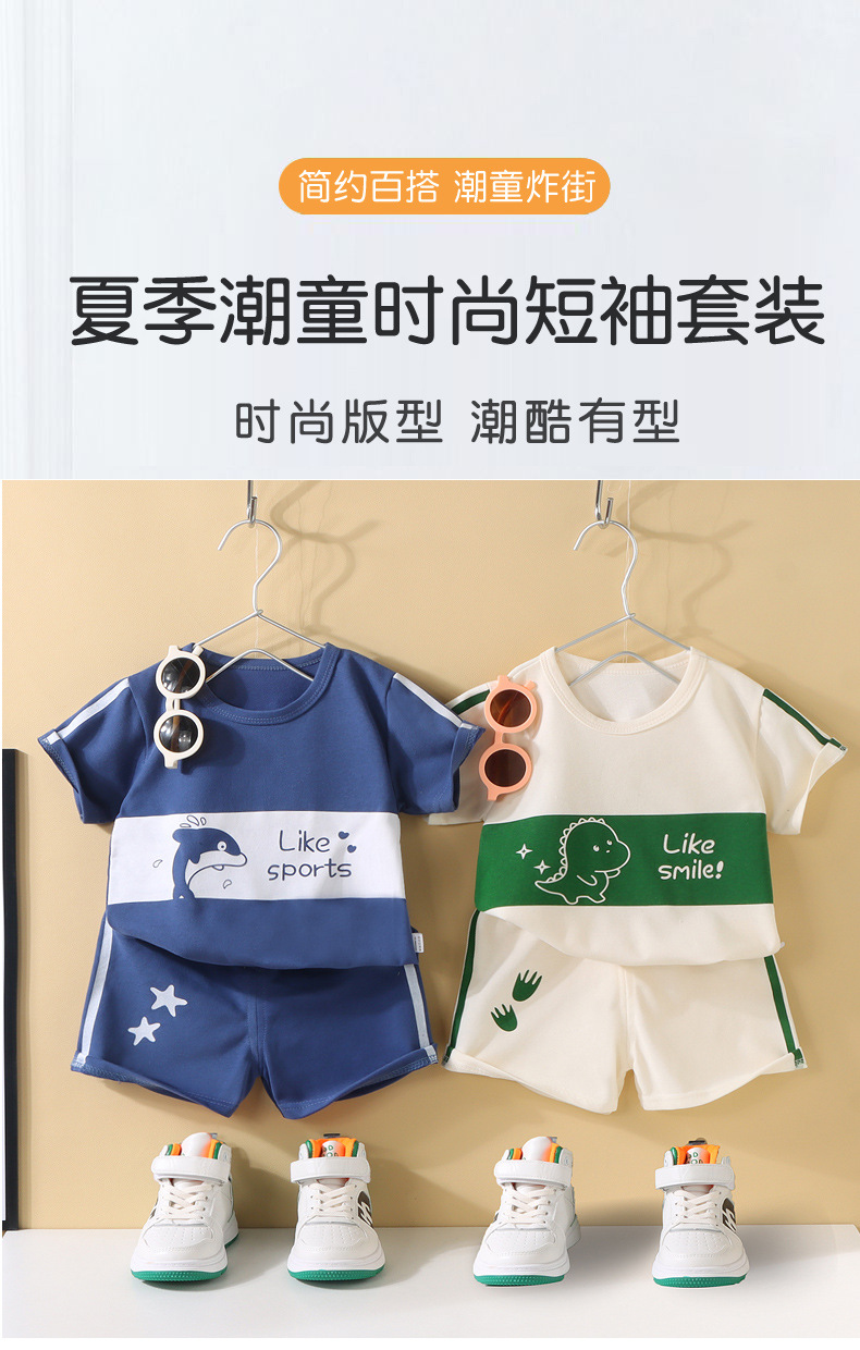 어린이 반팔 세트 소년 소녀 티셔츠 여름 아기 아기 옷 한국식 어린이 패션 여름 옷 원피스 배달