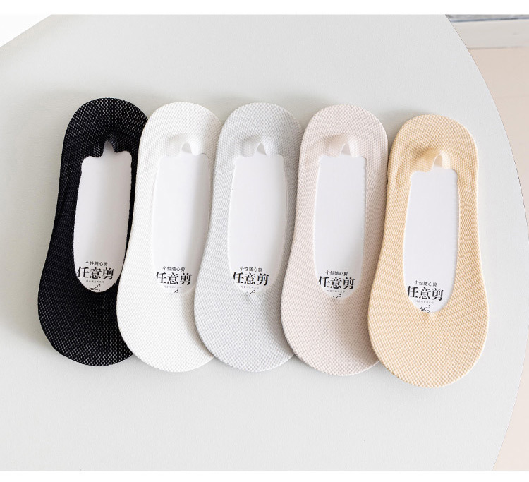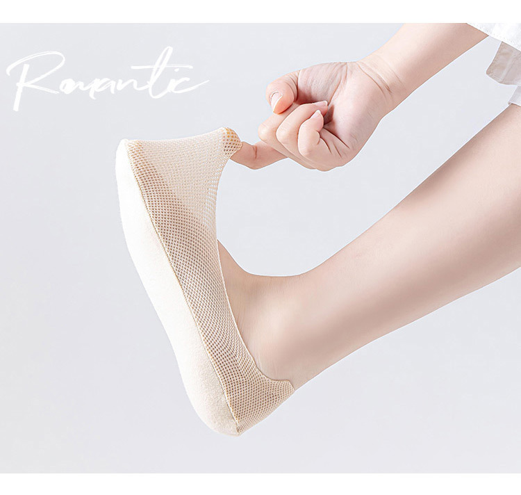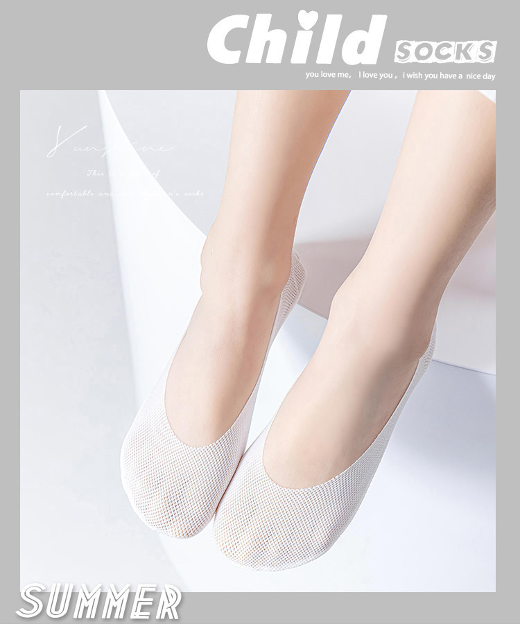 소녀 보트 양말 여름 얇은 메쉬 아이스 실크 보이지 않는 양말 로우 컷 코튼 바닥 미끄럼 미끄럼 방지 힐 양말 스킨 컬러 화이트