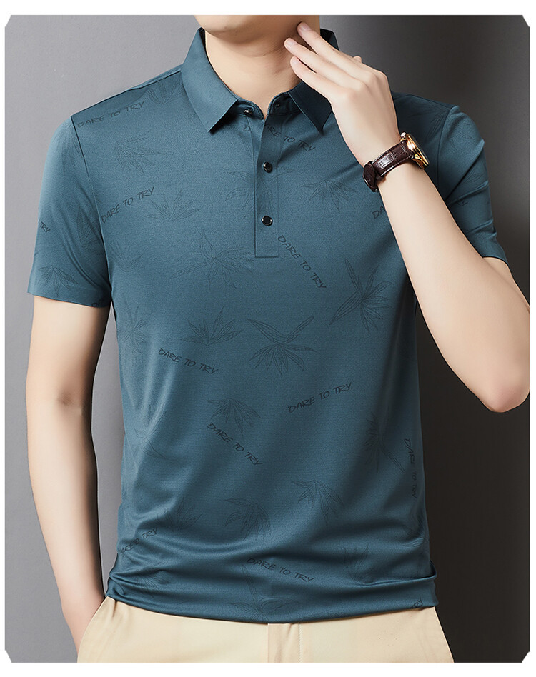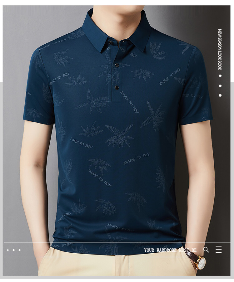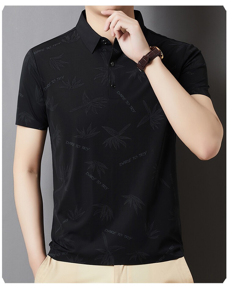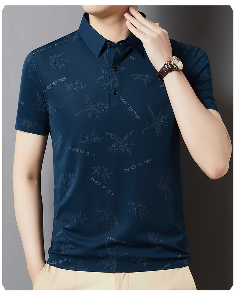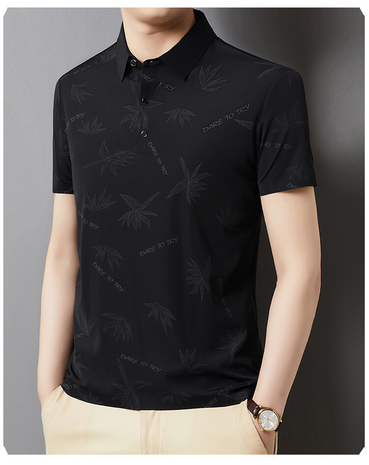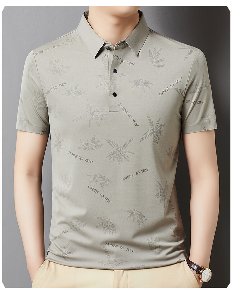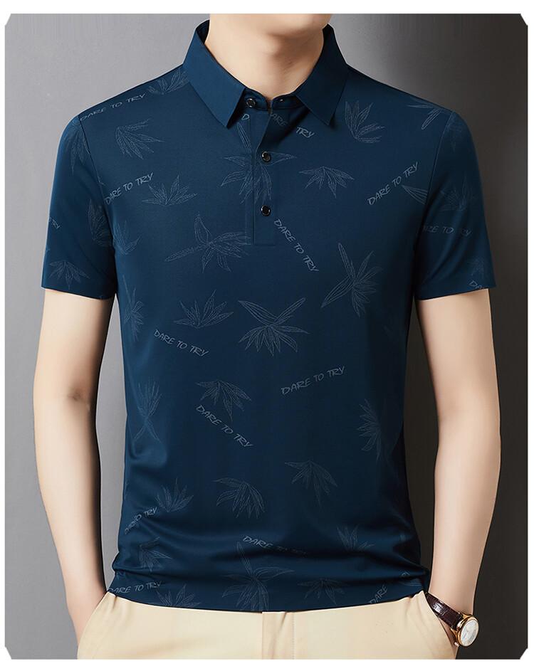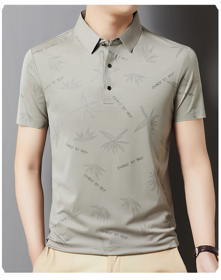 남자의 새로운 인쇄 옷깃 POLO 짧은 소매 여름 원활한 슬림 티셔츠 비즈니스 중년 및 노인 주름 방지 캐주얼 탑