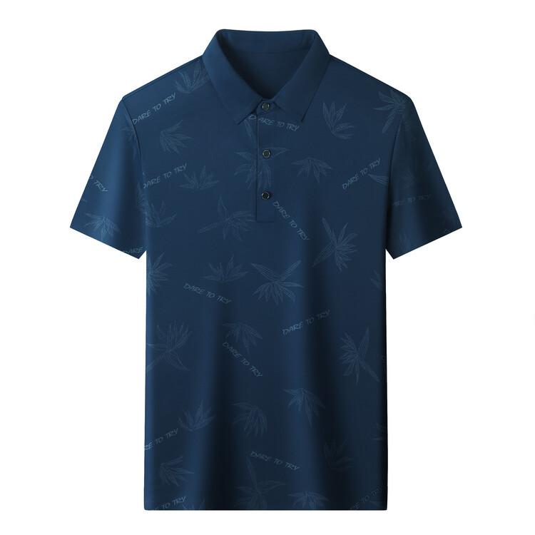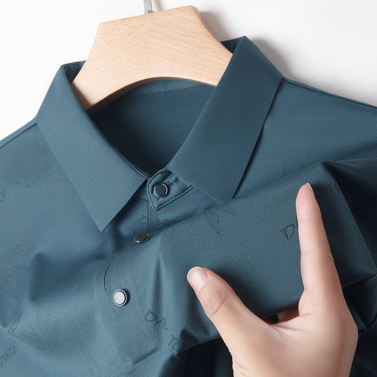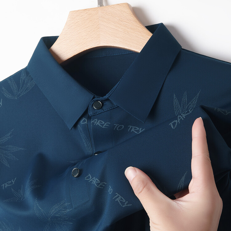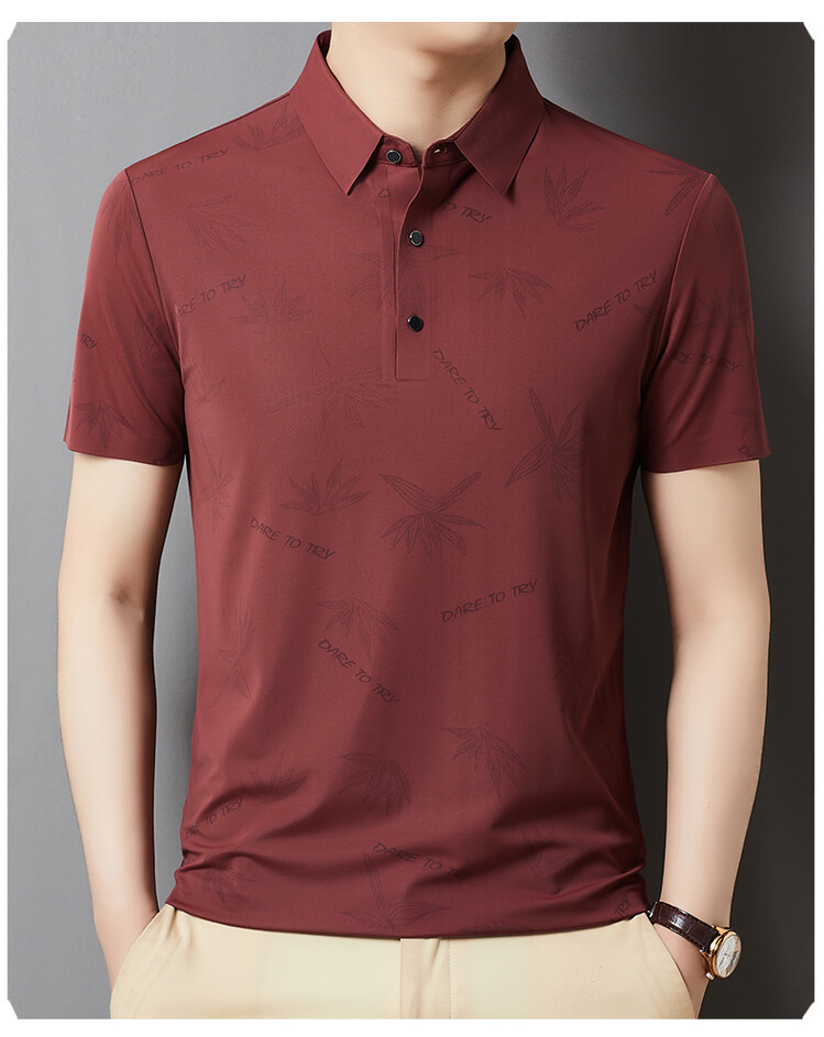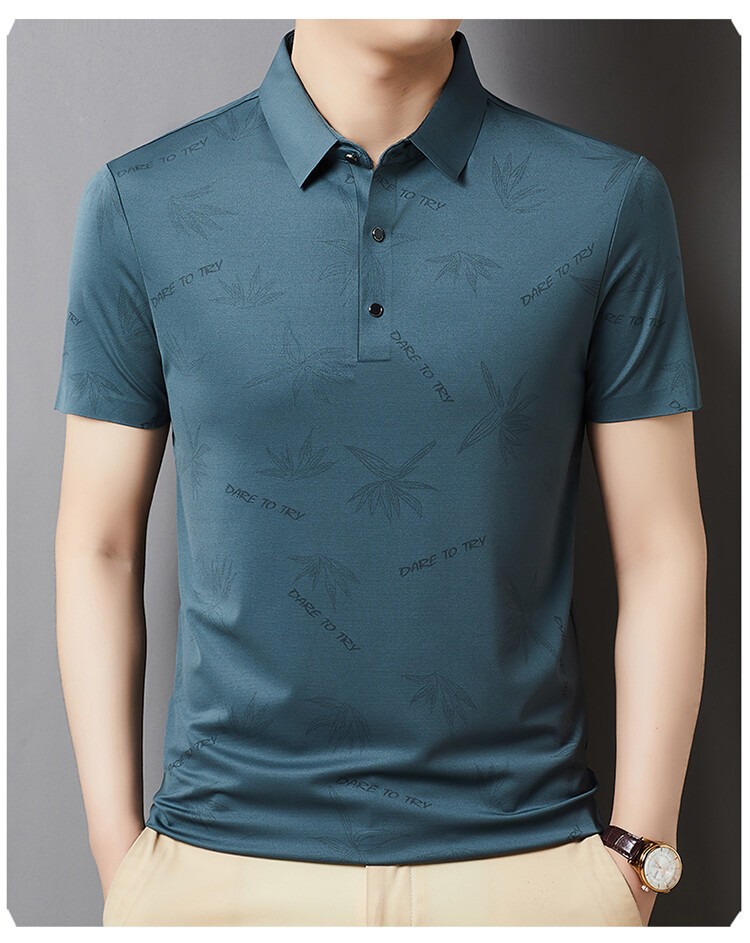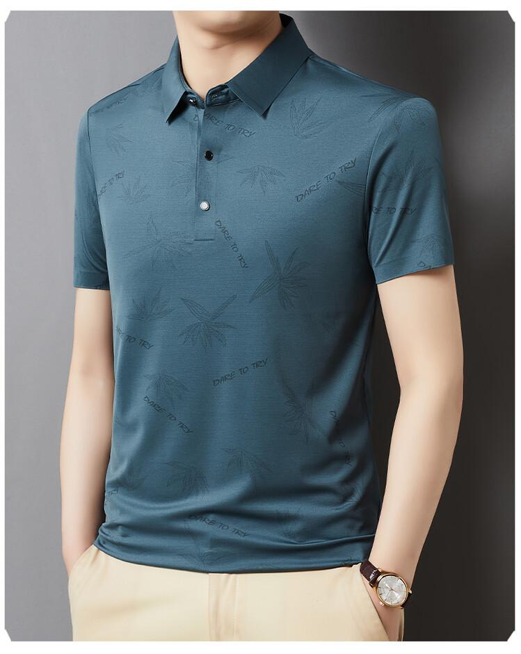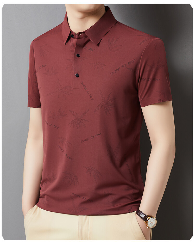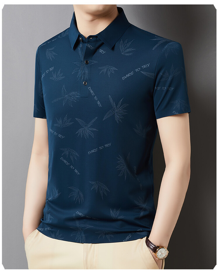 남자의 새로운 인쇄 옷깃 POLO 짧은 소매 여름 원활한 슬림 티셔츠 비즈니스 중년 및 노인 주름 방지 캐주얼 탑