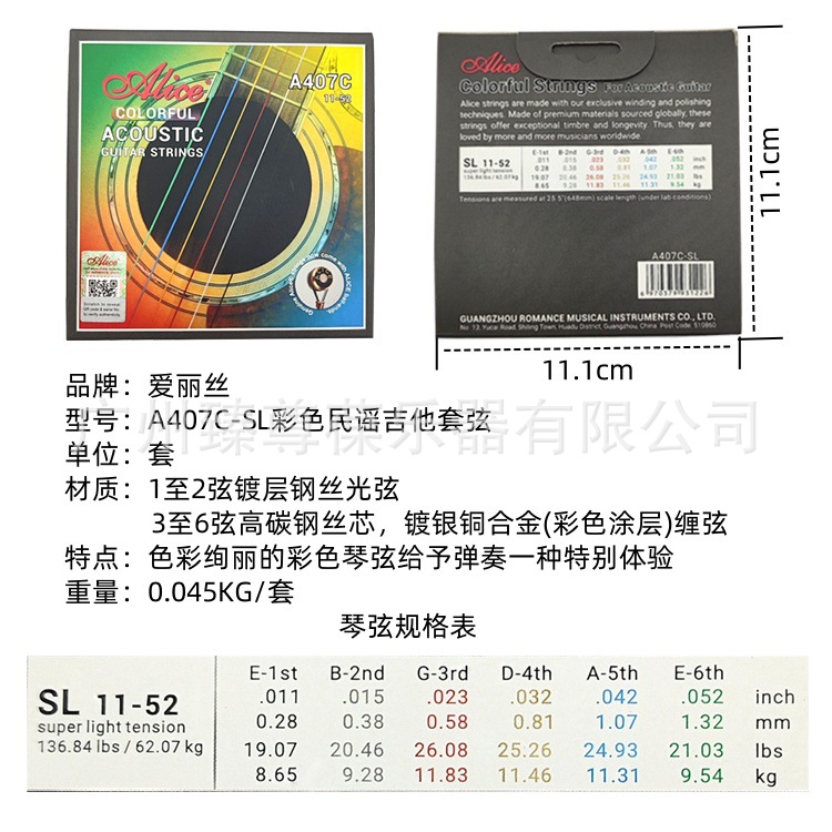 앨리스 A407C 컬러 포크 기타 현 앨리스 내구성 어쿠스틱 기타 현 악기 스틸 와이어 액세서리스토어 가기