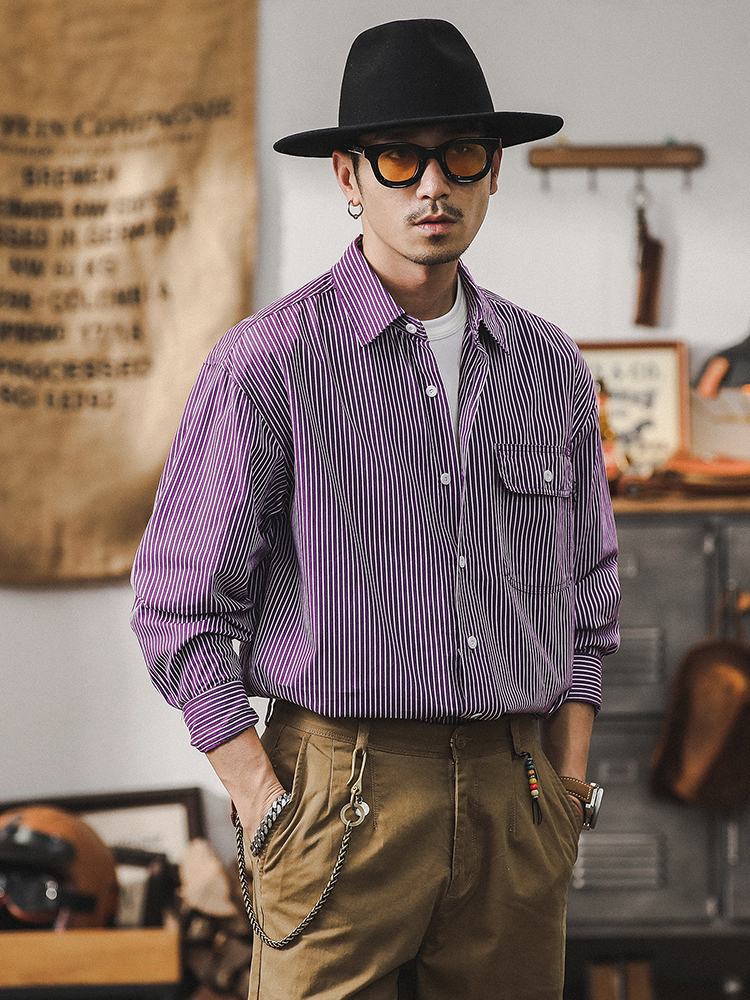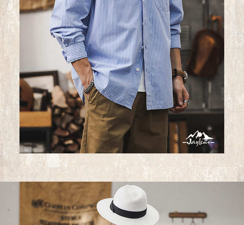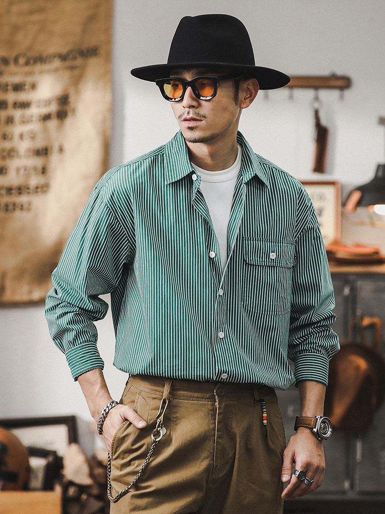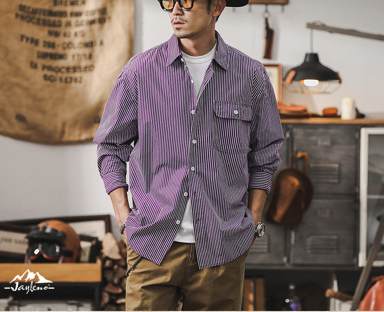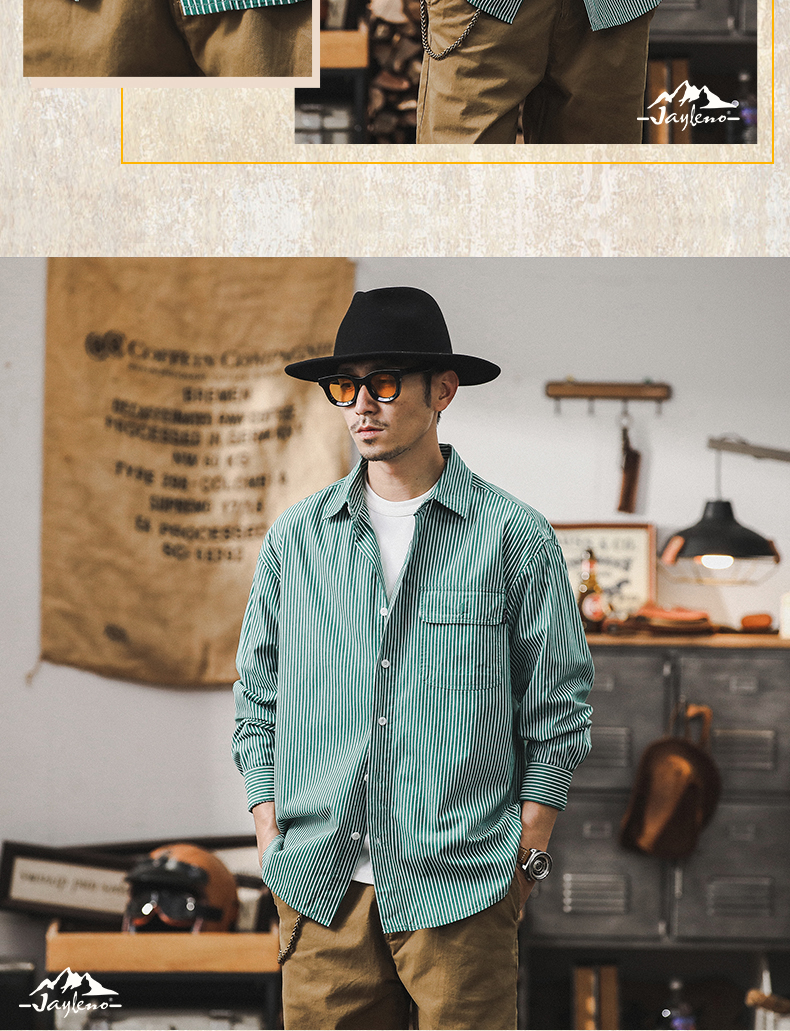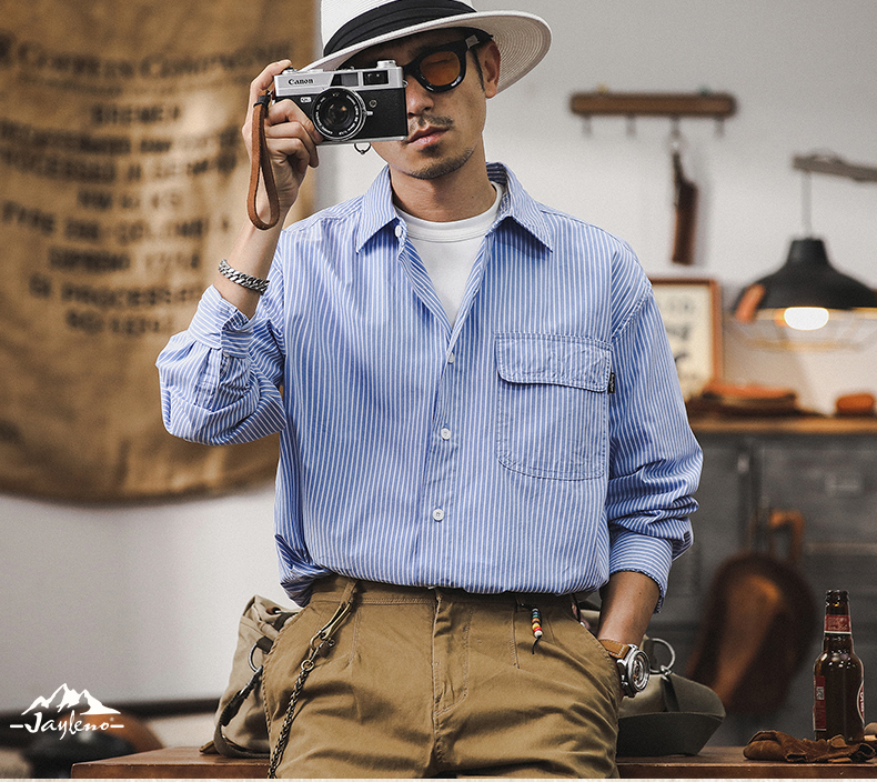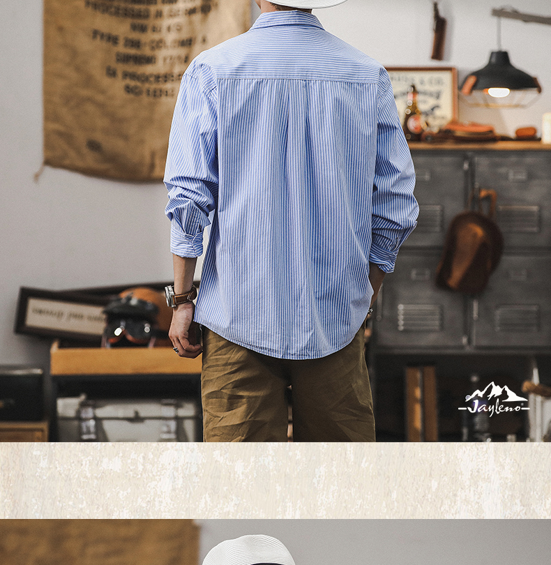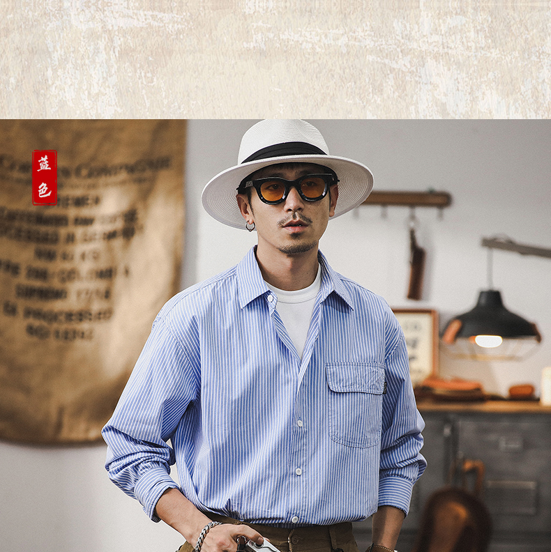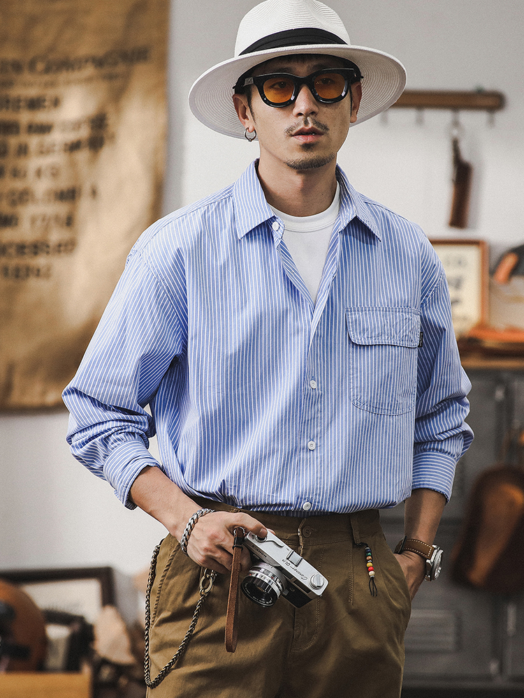 薄荷薄款经典条纹衬衫男2024新款男士外套春秋季宽松休闲长袖衬衣스토어 가기