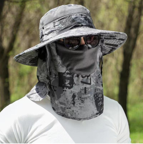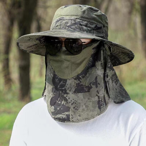 태양 모자 남자의 여름 자외선 차단 태양 커버 얼굴 마스크 어부 모자 야외 낚시 통기성 시원한 차 따기 모자