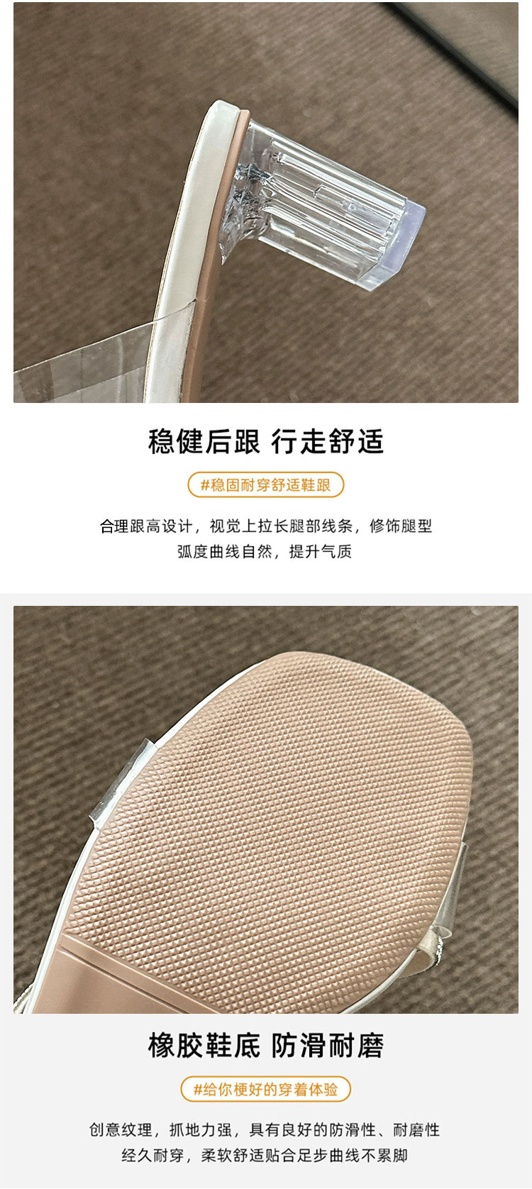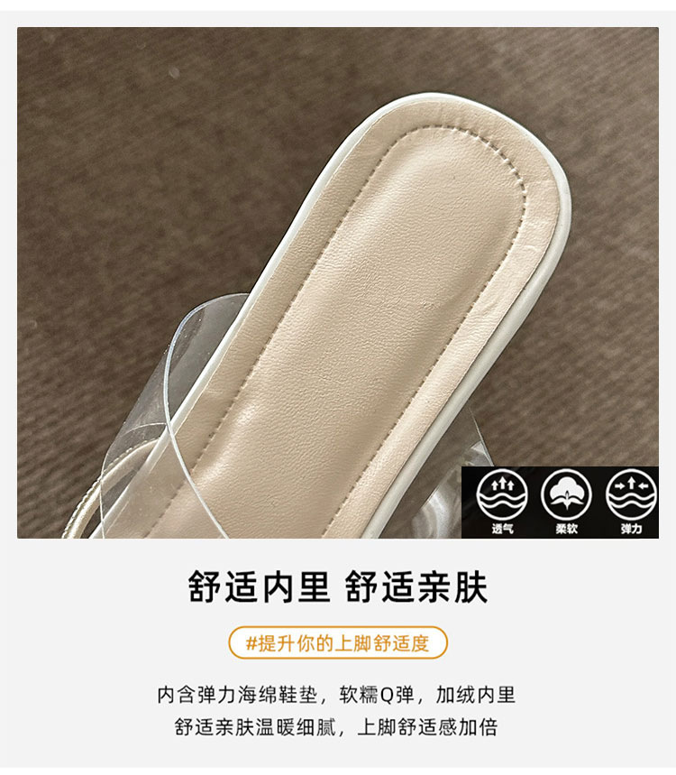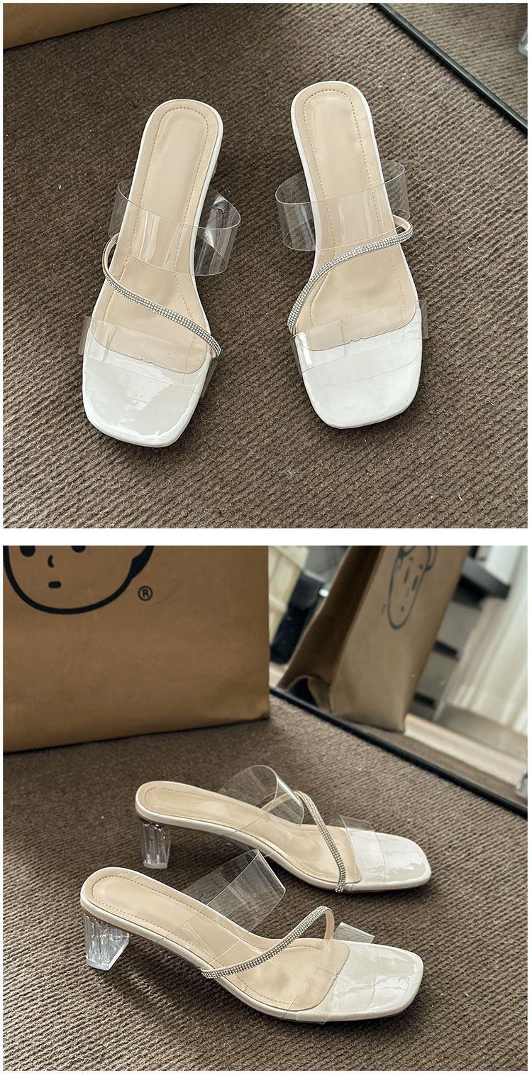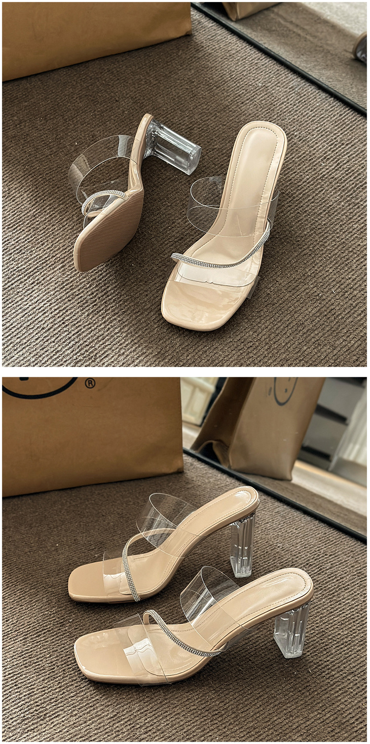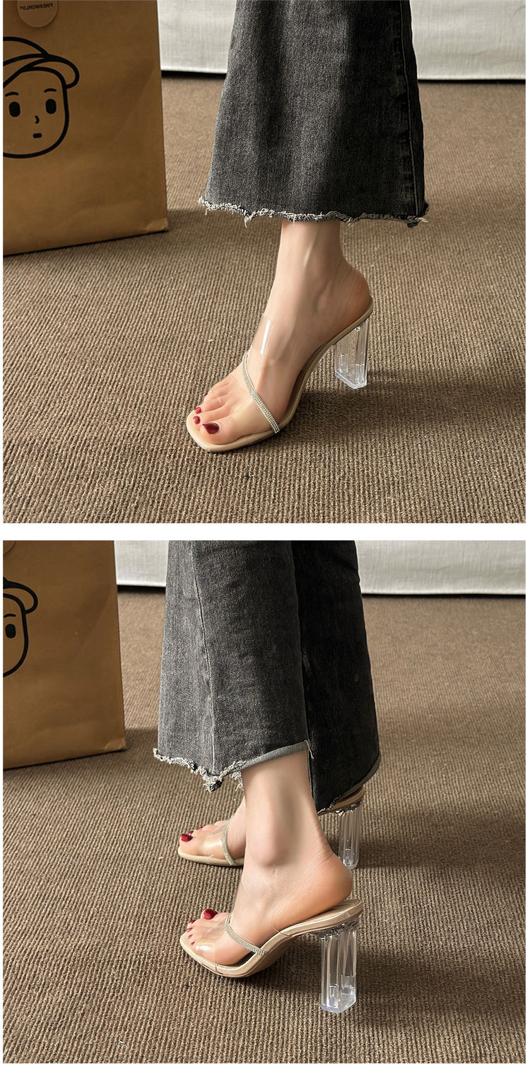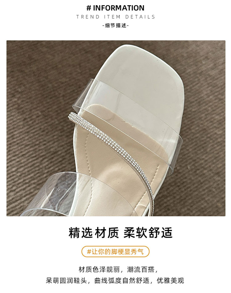 원스트랩 하이힐 슬리퍼 2024 여름 새로운 투명 방수 플랫폼 크리스탈 청키 힐 미드 힐 샌들 여성 요정 스타일