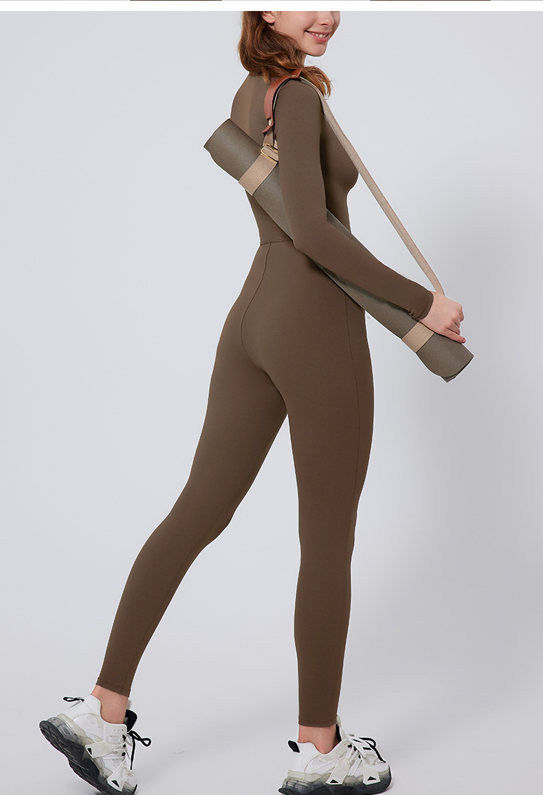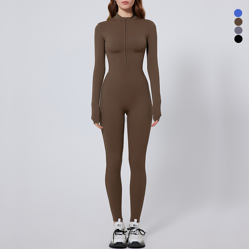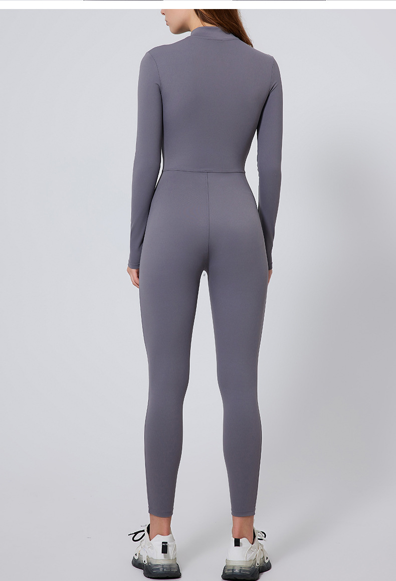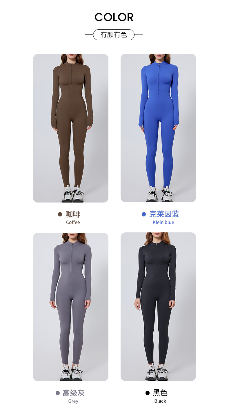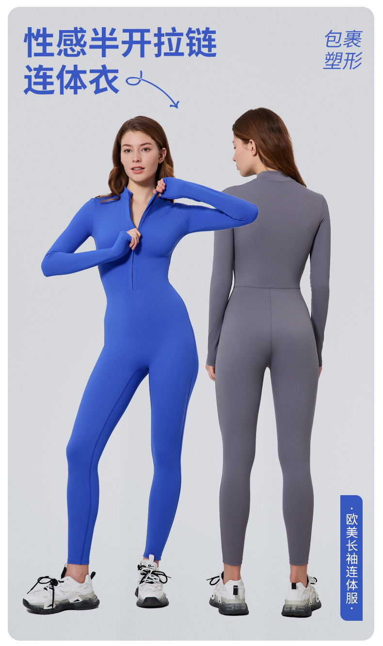 유럽과 미국의 누드 긴팔 요가 점프 수트 여성 야외 달리기 피트니스 지퍼 스포츠 점프 수트 원피스