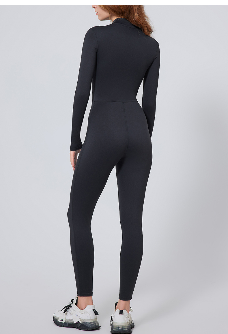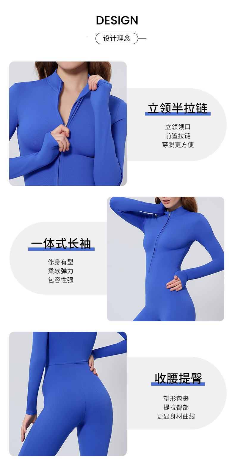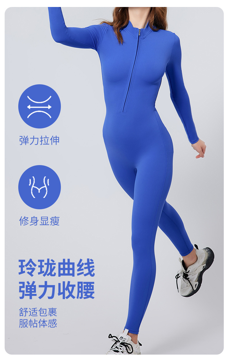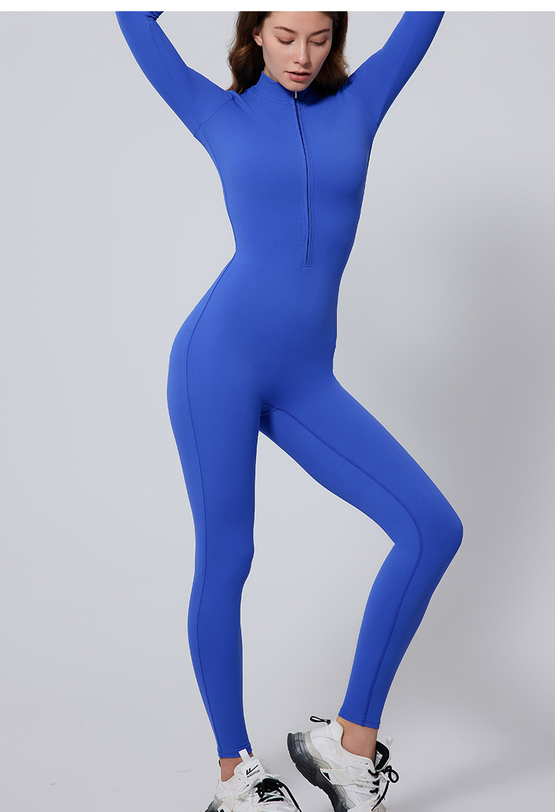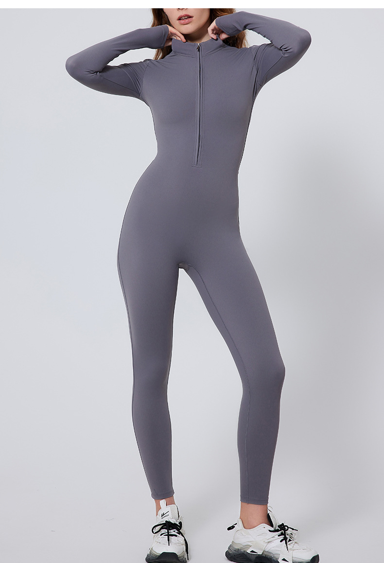 유럽과 미국의 누드 긴팔 요가 점프 수트 여성 야외 달리기 피트니스 지퍼 스포츠 점프 수트 원피스