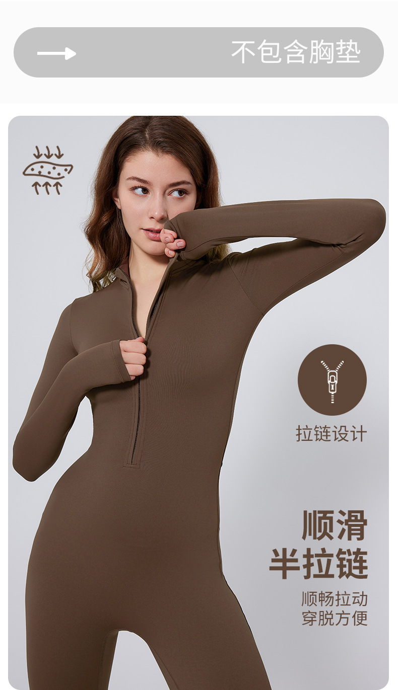 유럽과 미국의 누드 긴팔 요가 점프 수트 여성 야외 달리기 피트니스 지퍼 스포츠 점프 수트 원피스스토어 가기