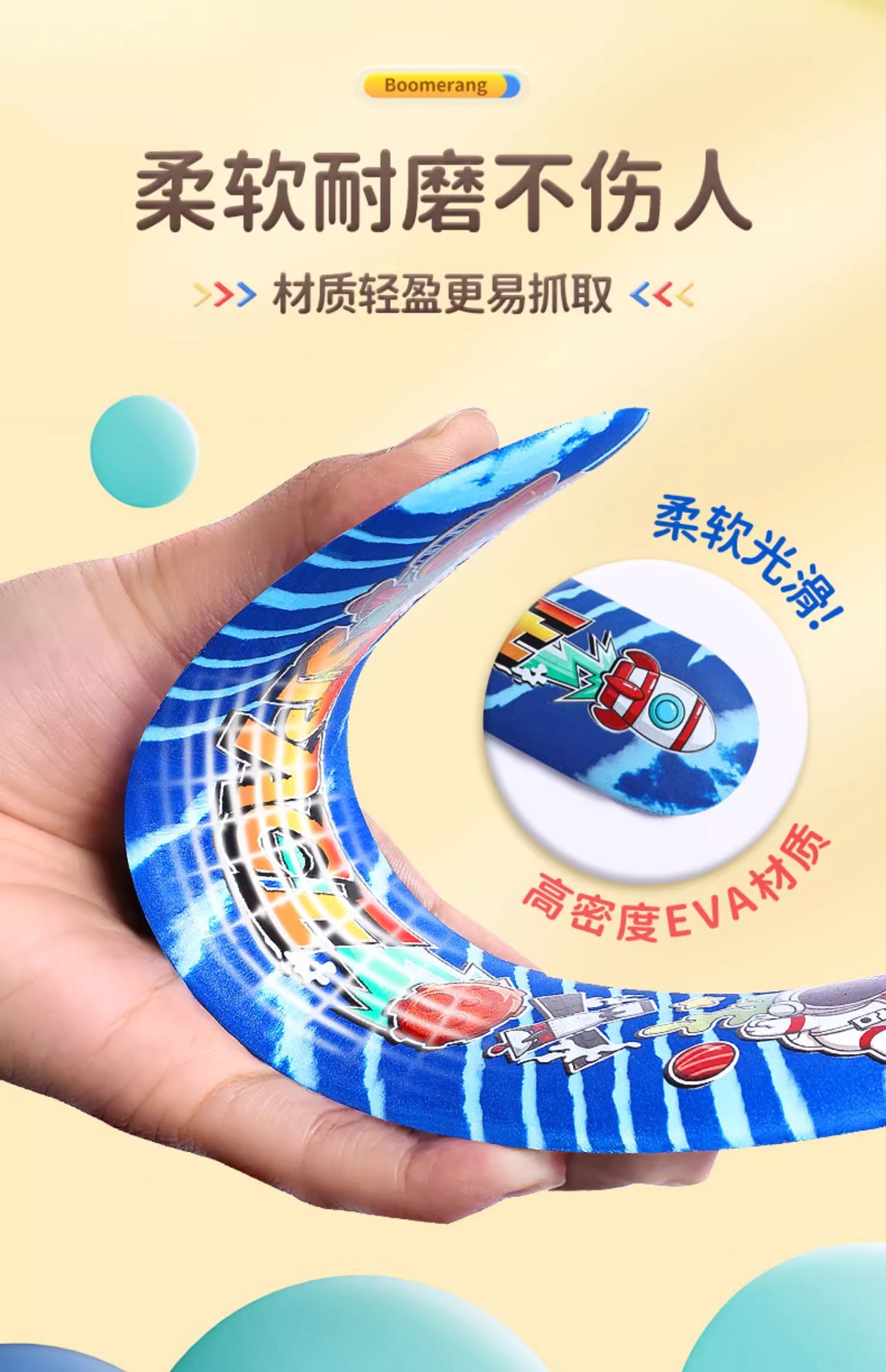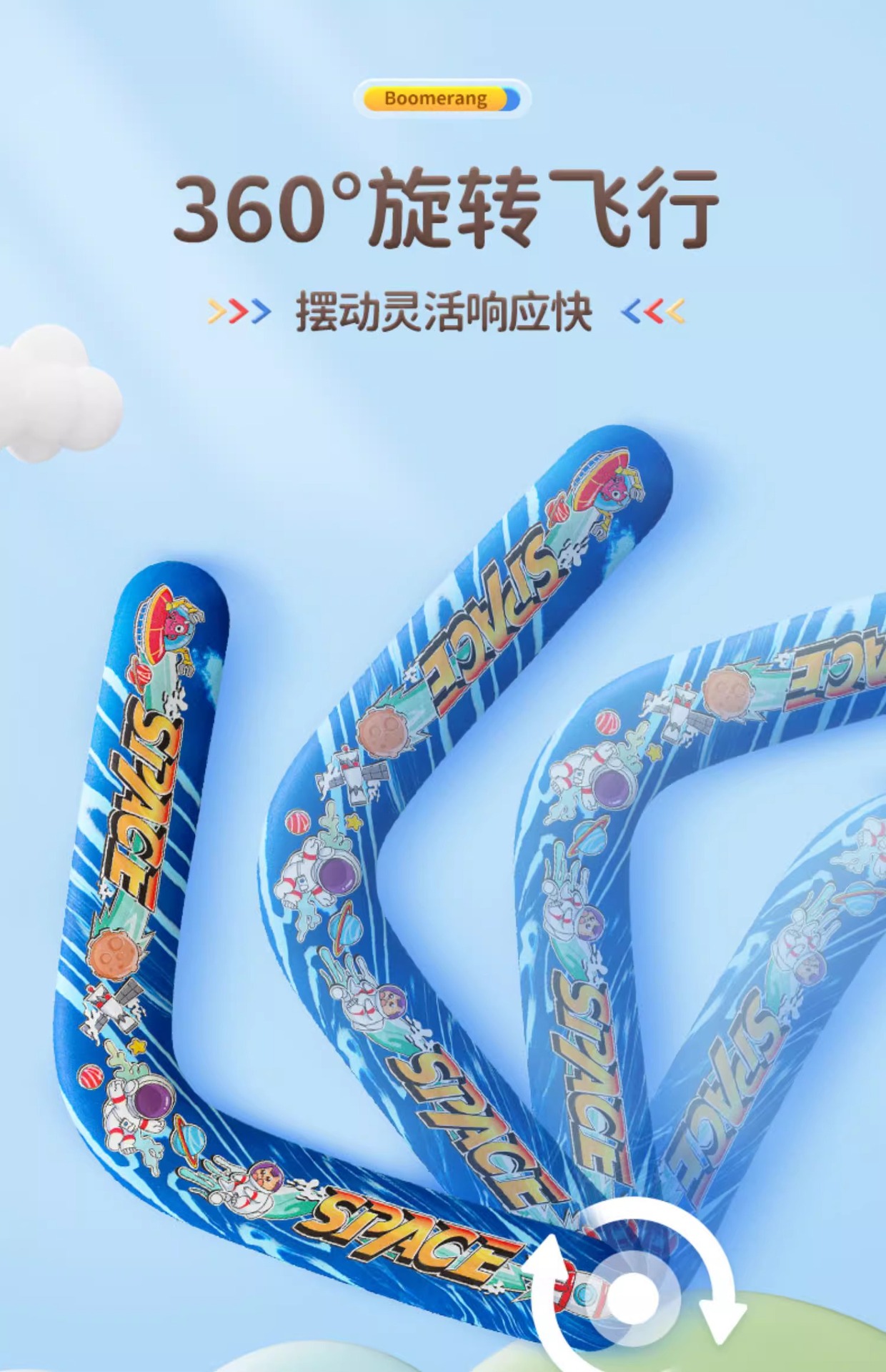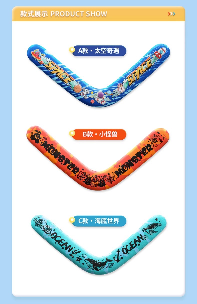 어린이용 부드러운 에바 폼 소재의 회전형 부메랑, 유럽 및 미국 야외 스포츠 장난감, 인기 있는 우주 모험스토어 가기