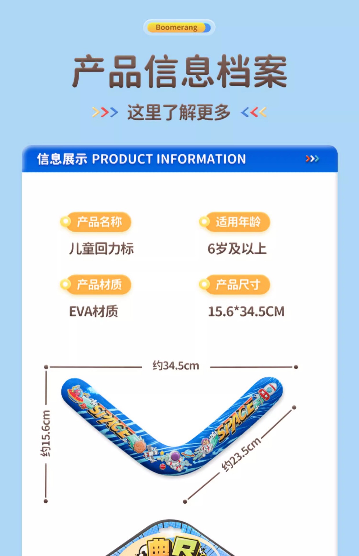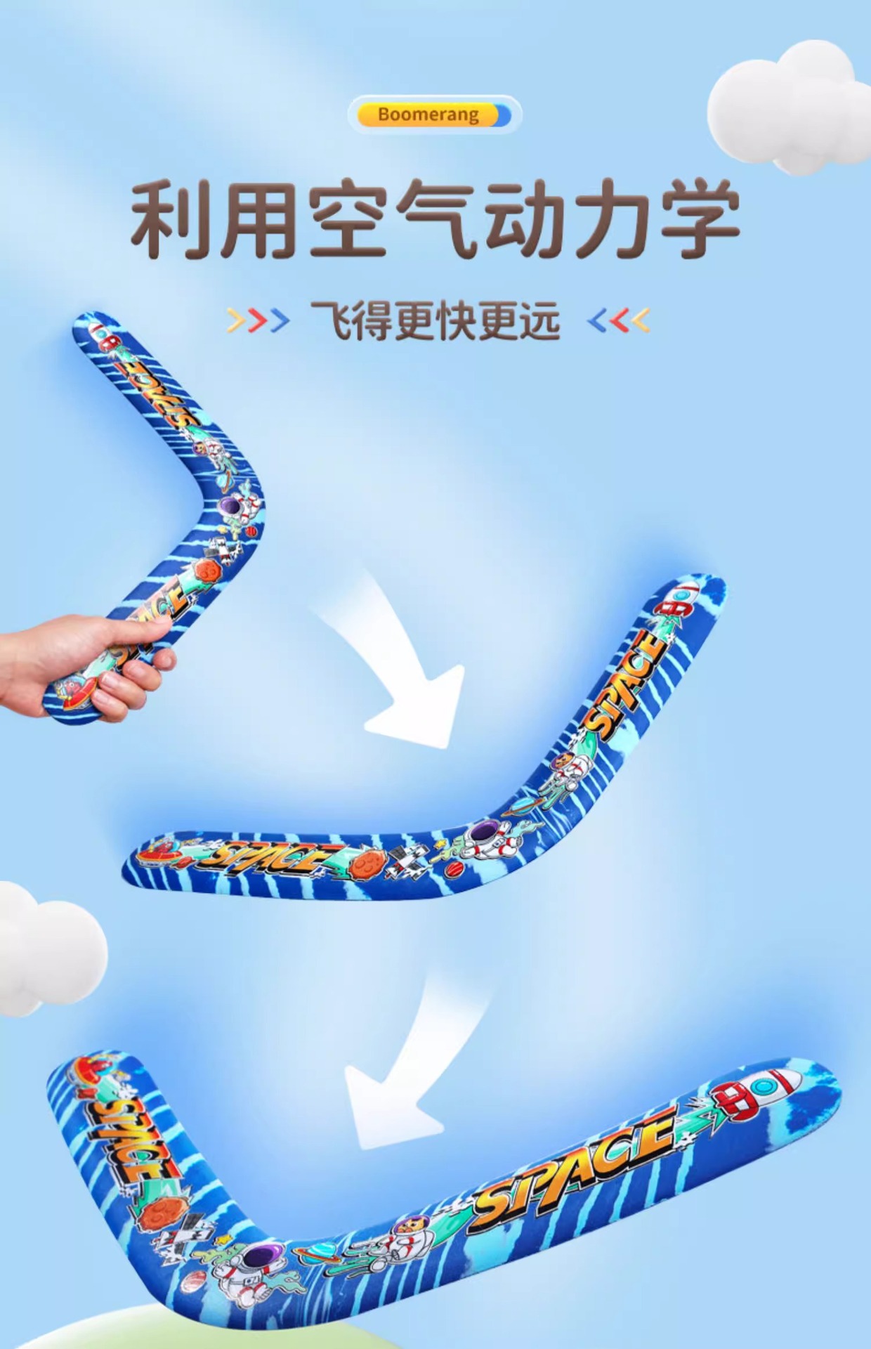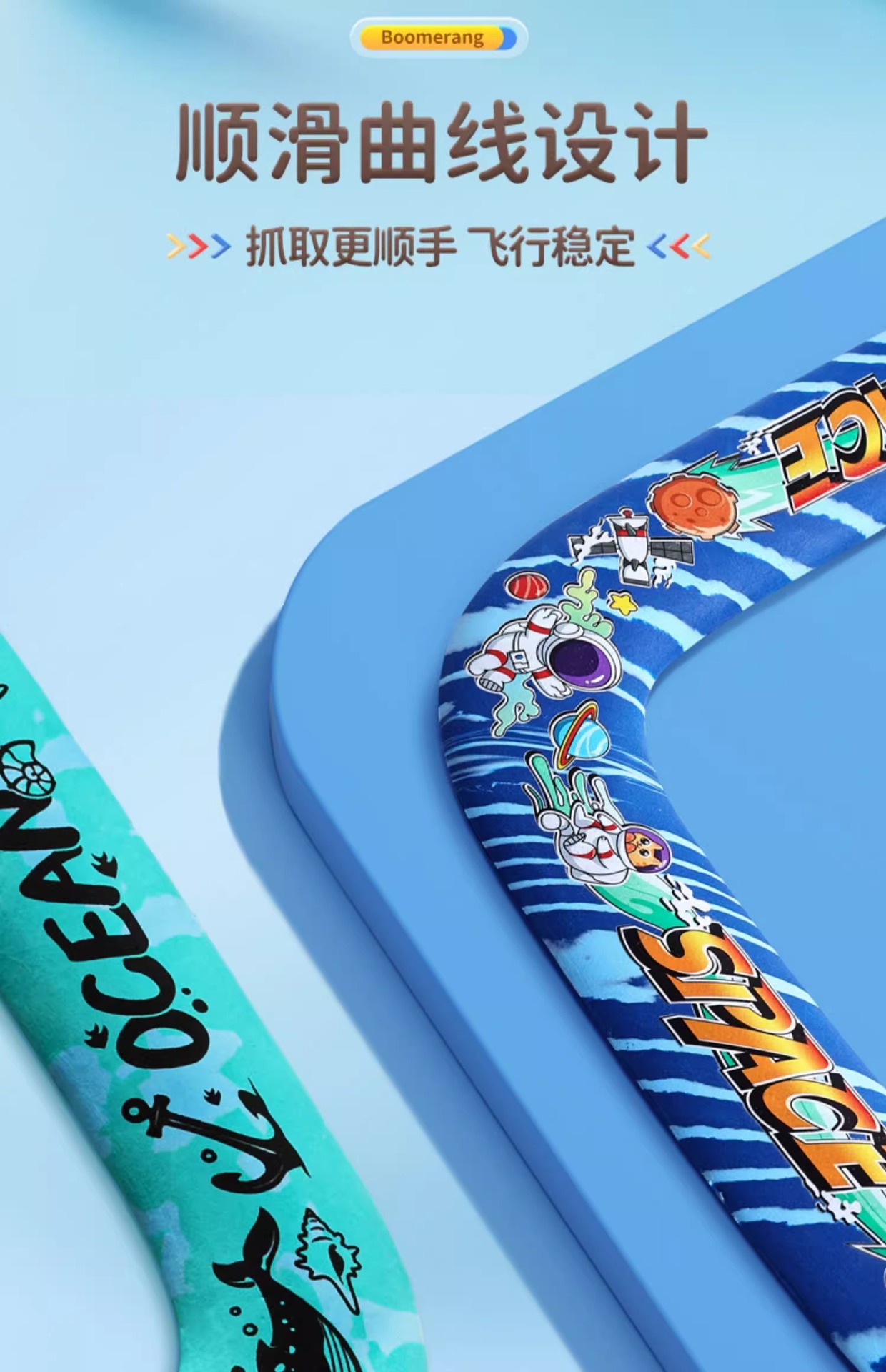 어린이용 부드러운 에바 폼 소재의 회전형 부메랑, 유럽 및 미국 야외 스포츠 장난감, 인기 있는 우주 모험스토어 가기
