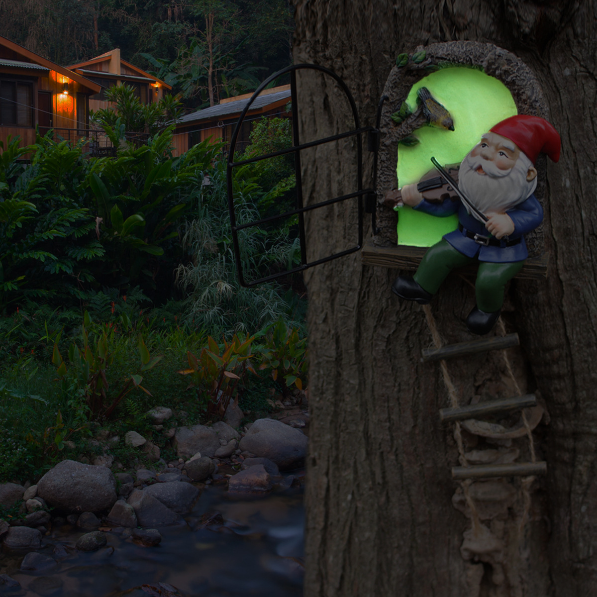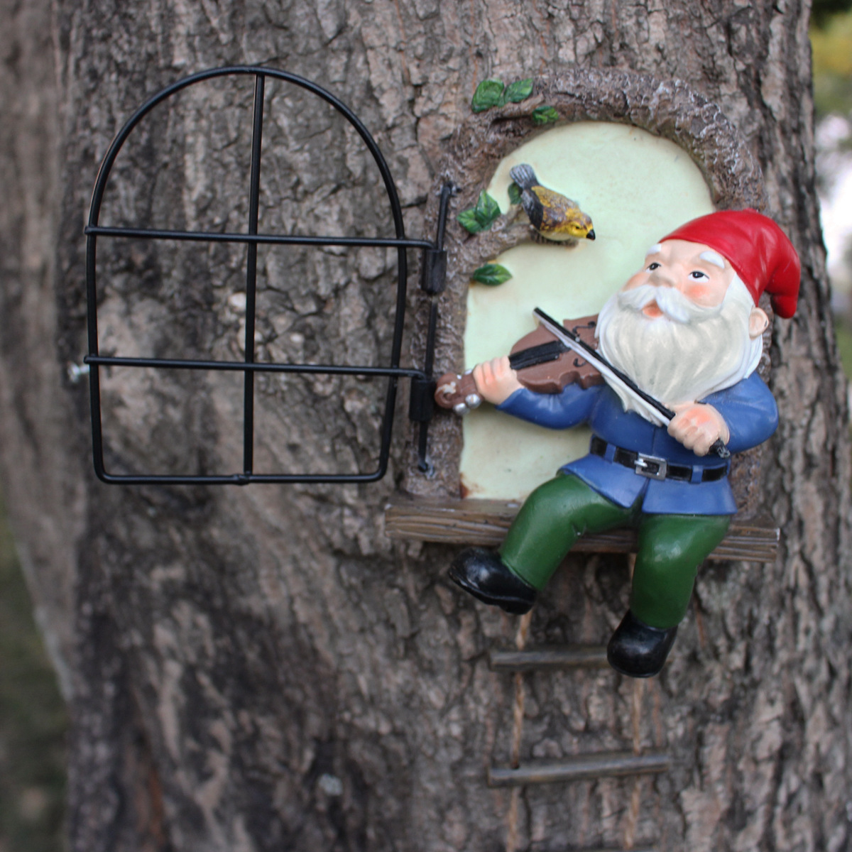 창조적 인 피아노 난쟁이 문과 윈도우 트리 매달린 수지 장식품 홈 벽 정원 안뜰 발코니 장식