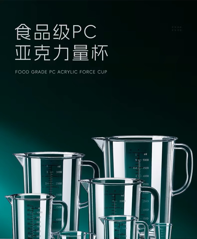 PC 아크릴 측정 컵 두꺼운 식품 등급 높은 투자율 플라스틱 스케일 컵 고온 저항하는 상업용 우유 차 가게 베이킹 측정 컵스토어 가기