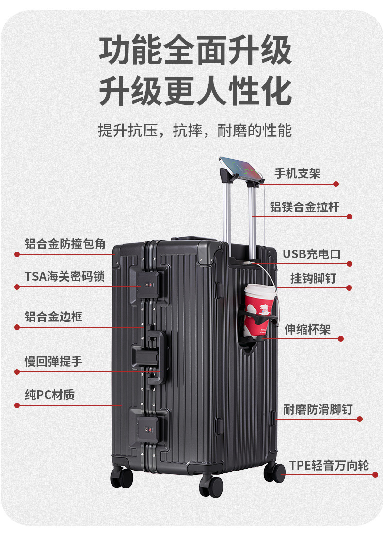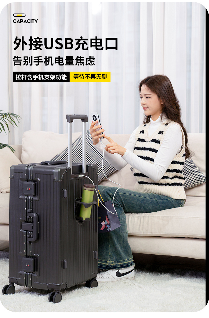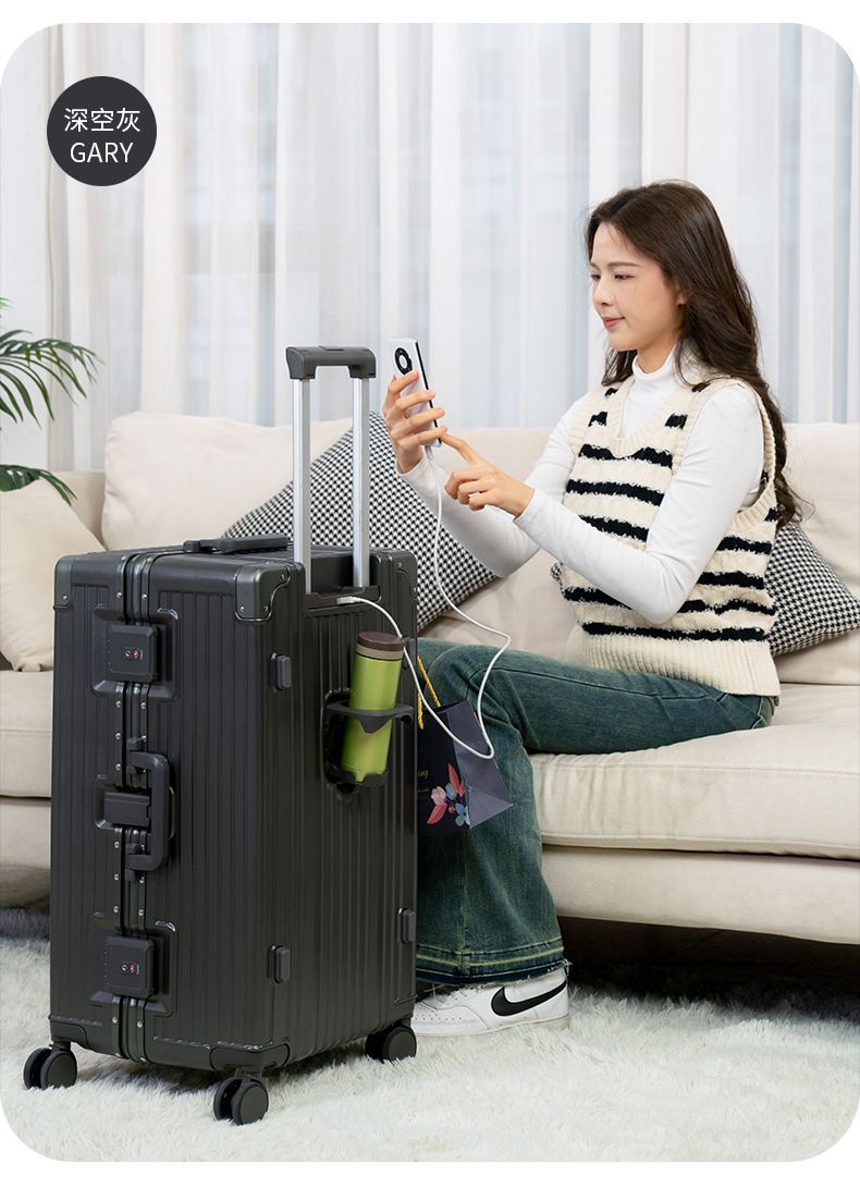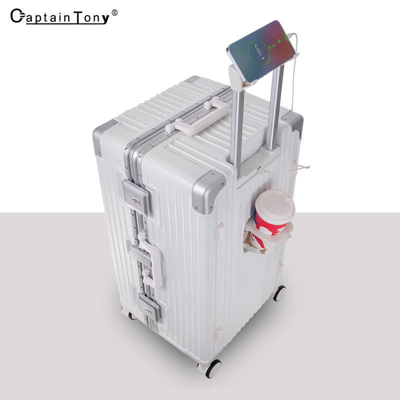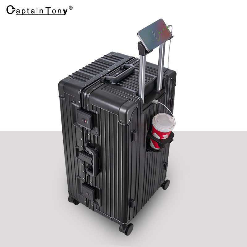 새로운 알루미늄 프레임 대용량 트롤리 케이스 다기능 세관 잠금 수하물 30 인치 가방 원피스 배달