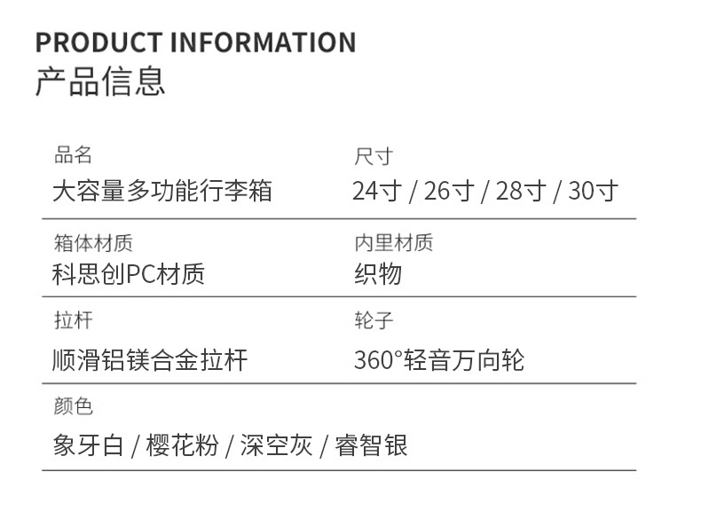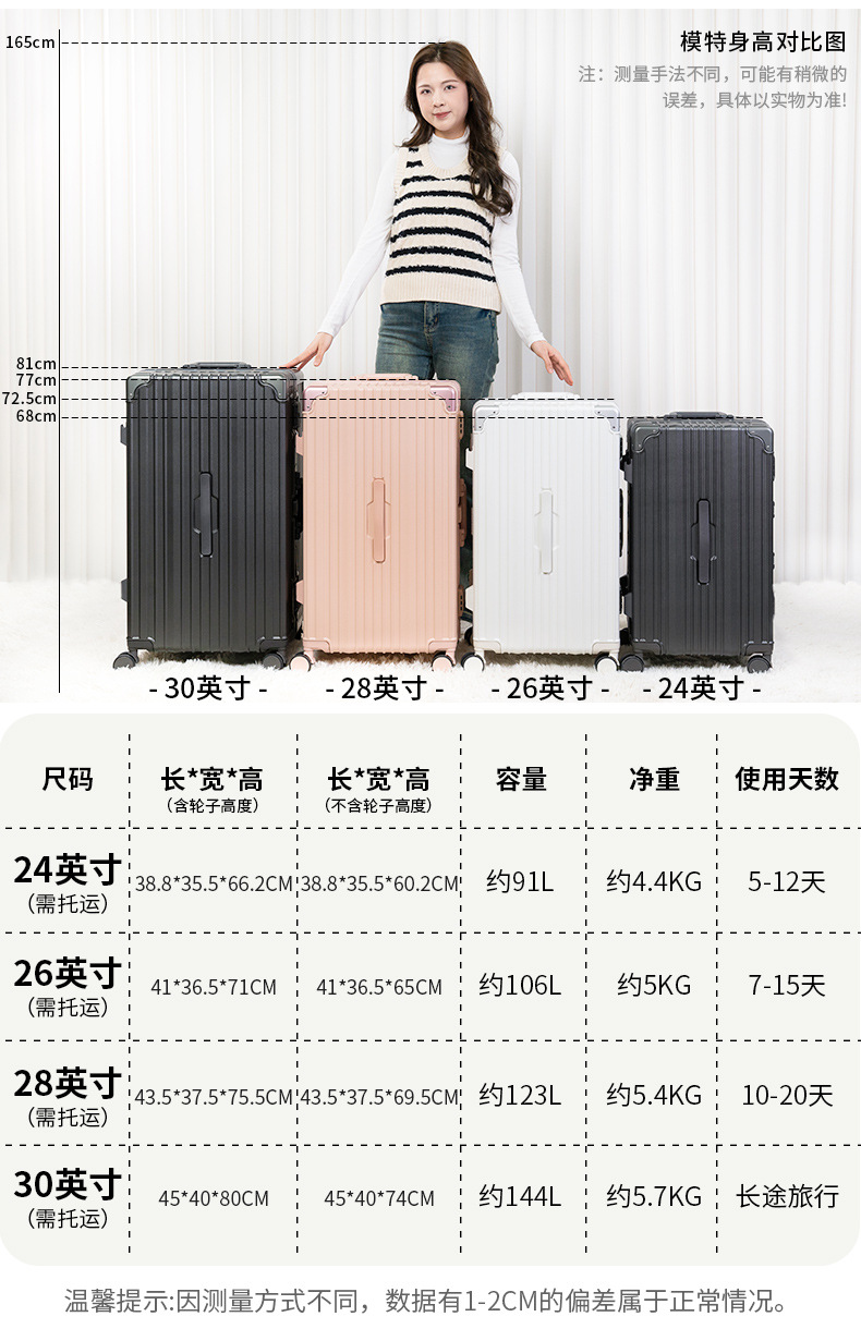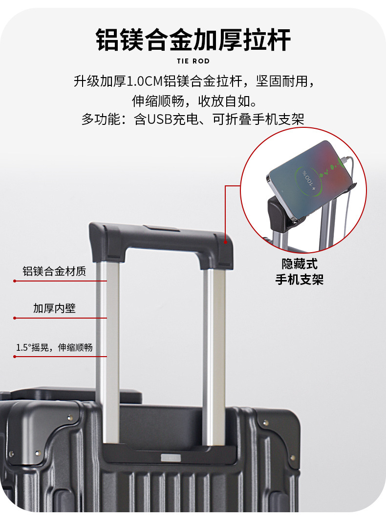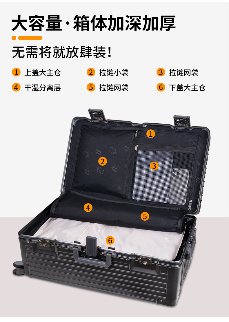 새로운 알루미늄 프레임 대용량 트롤리 케이스 다기능 세관 잠금 수하물 30 인치 가방 원피스 배달