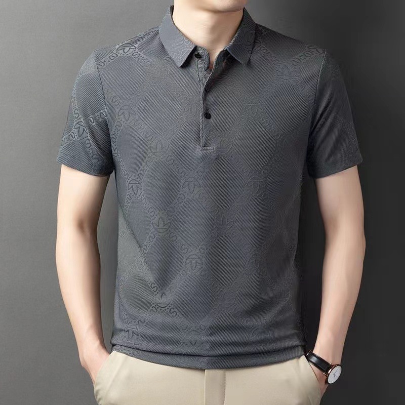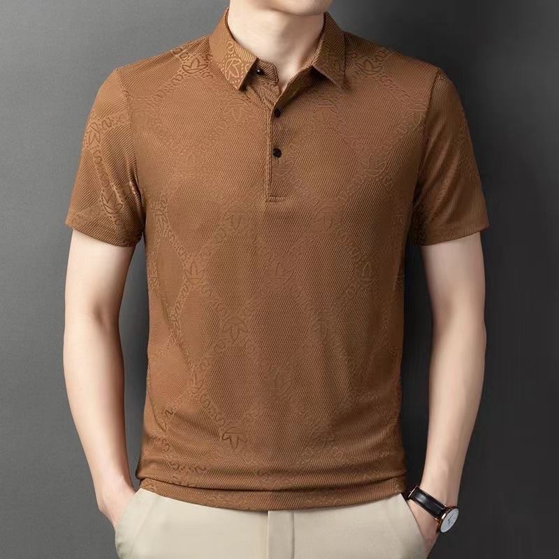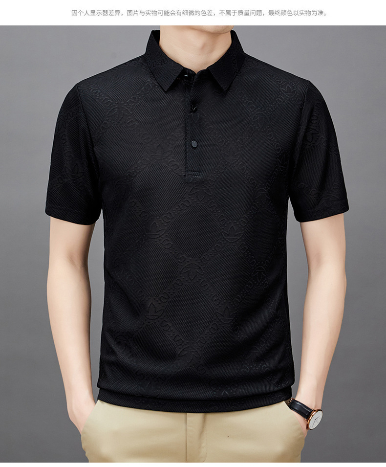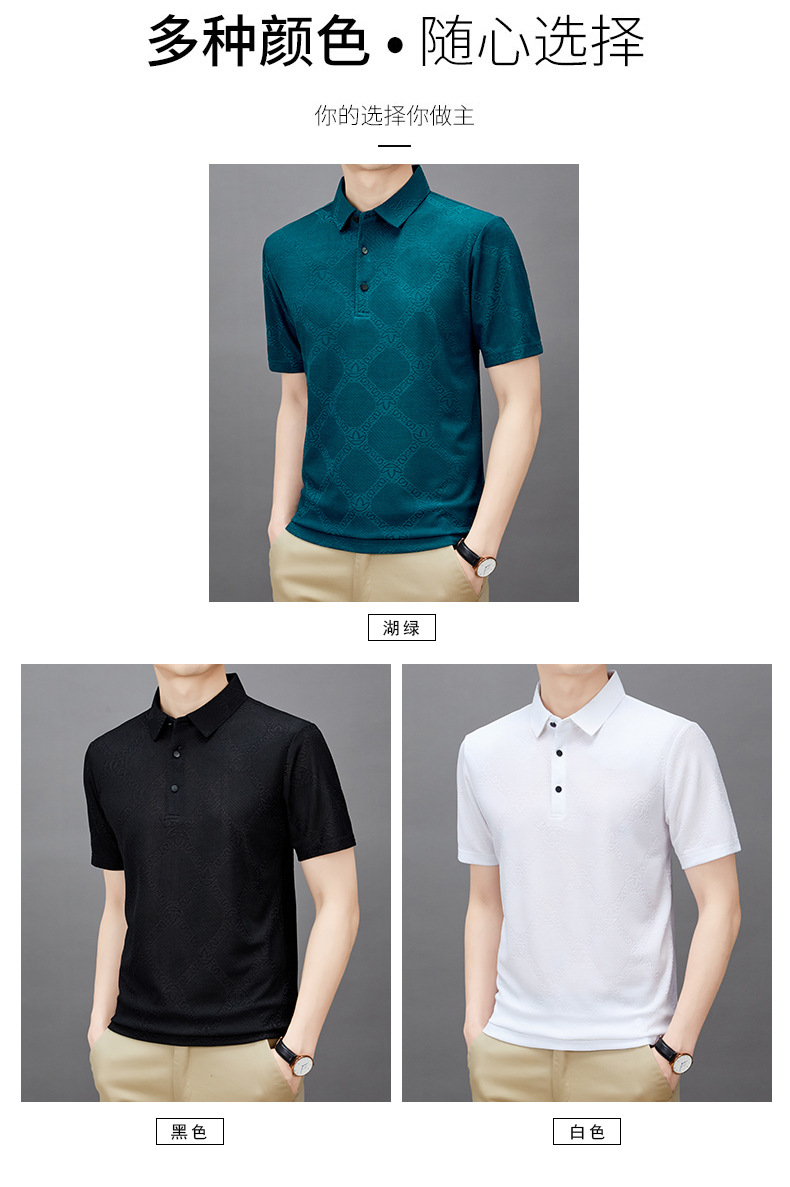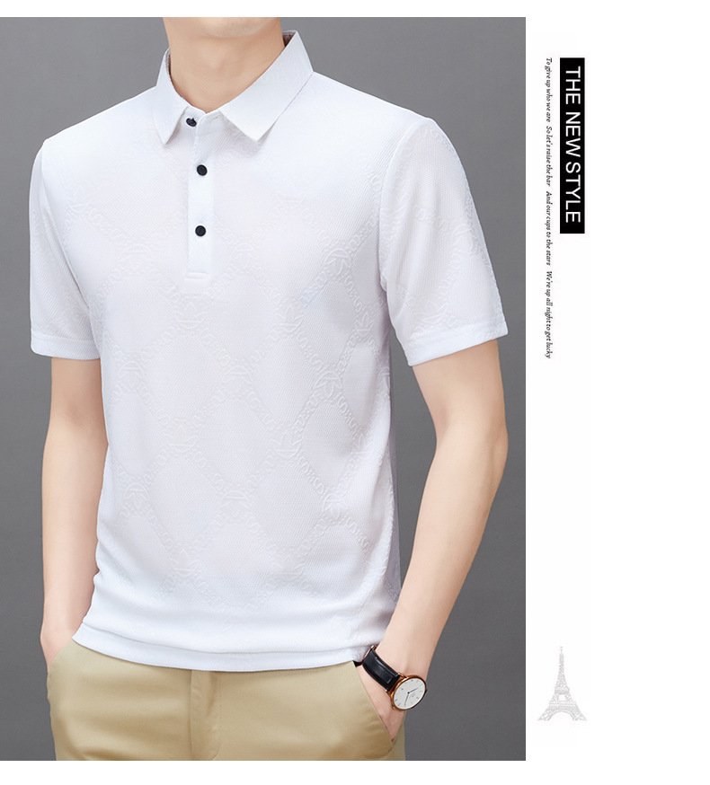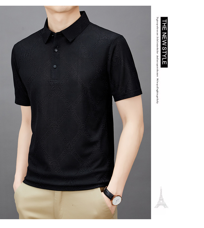 새로운 자카드 남성 아이스 실크 반팔 티셔츠 실키 여름 느슨한 빠른 건조 옷깃 원활한 폴로 셔츠 아이스 느낌 탑