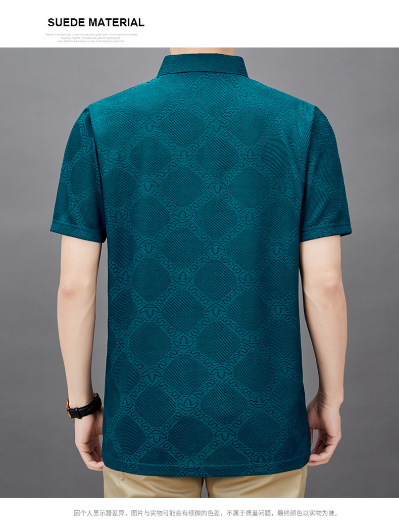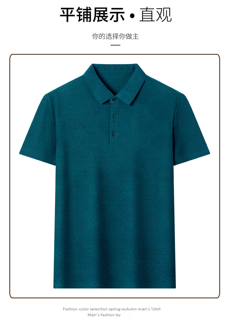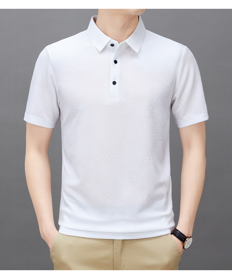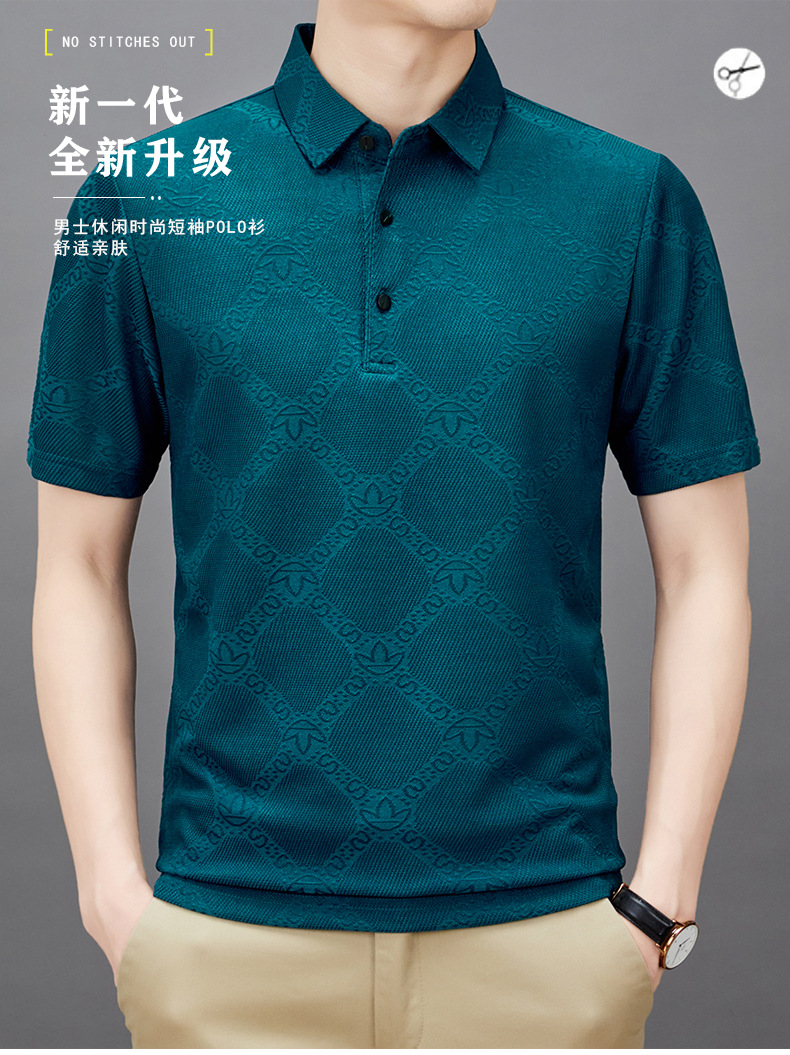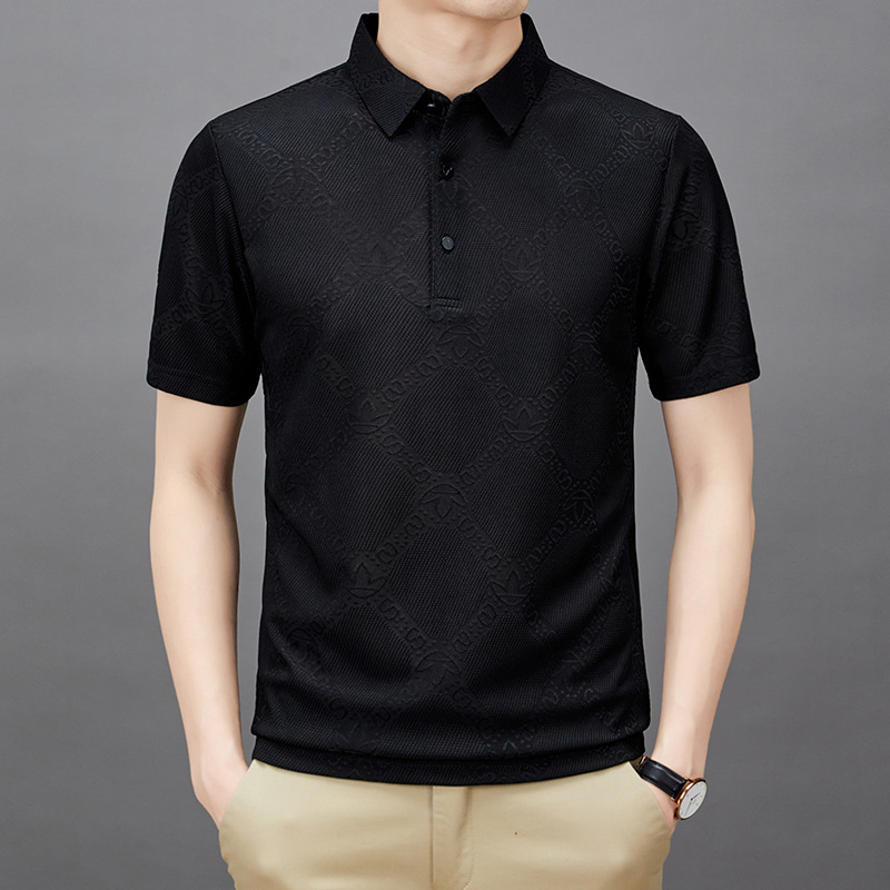 새로운 자카드 남성 아이스 실크 반팔 티셔츠 실키 여름 느슨한 빠른 건조 옷깃 원활한 폴로 셔츠 아이스 느낌 탑