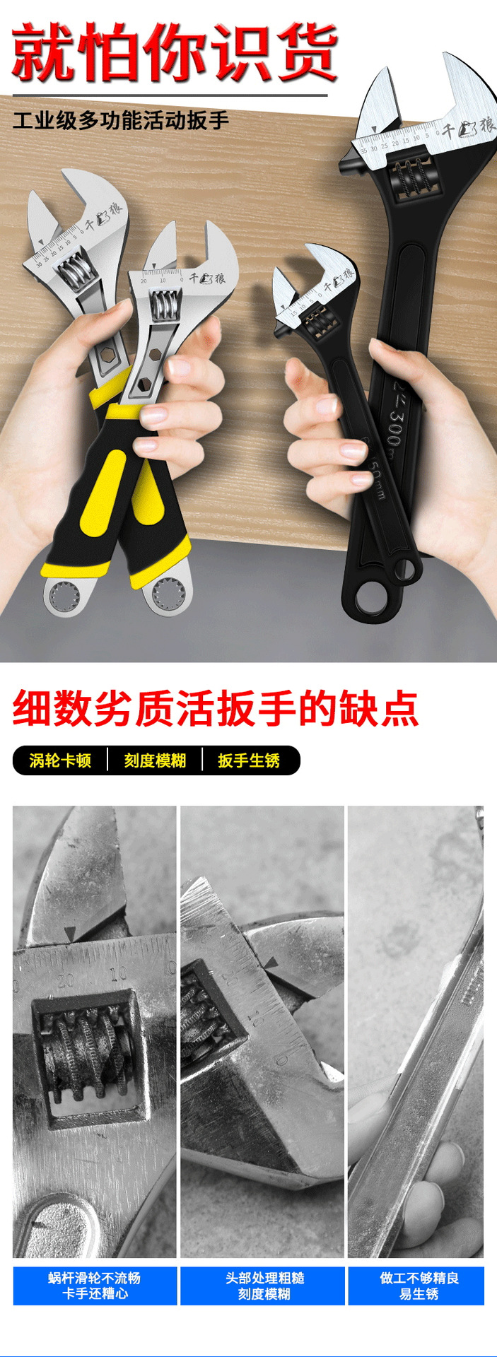 조정 가능한 렌치 산업 등급 큰 직경 고강도 다기능 도구 작은 보편적 인 개방 렌치 큰 오프닝