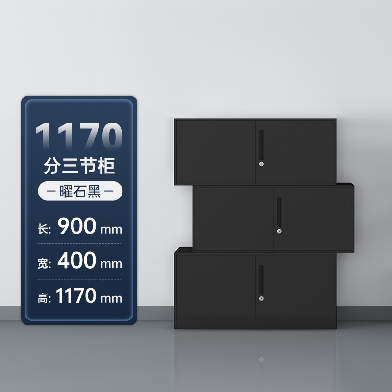 • 흑요석 검정색 분할 3섹션 캐비닛