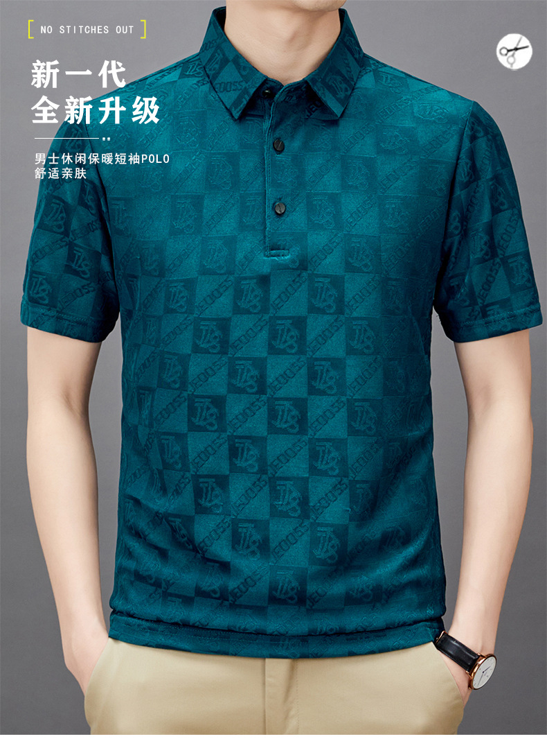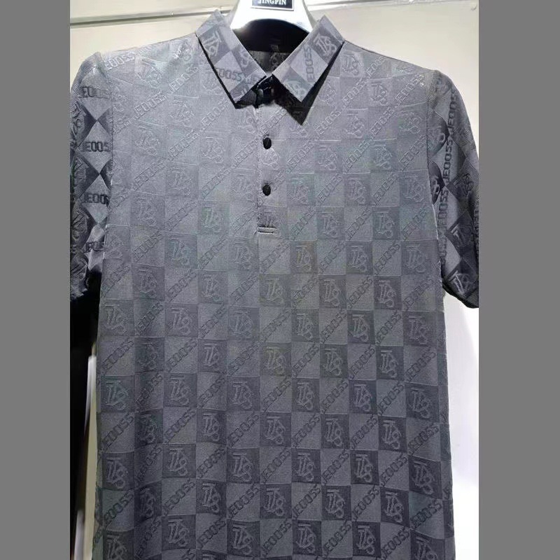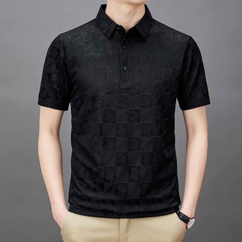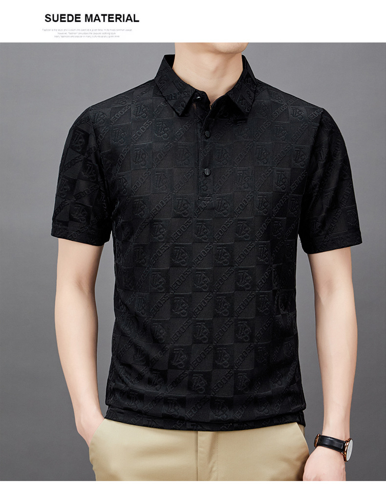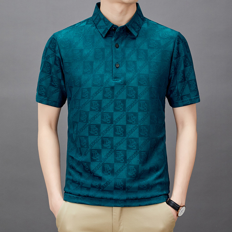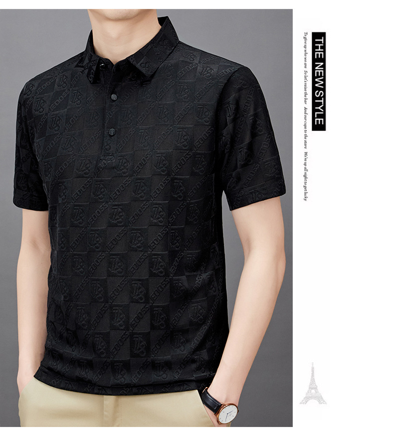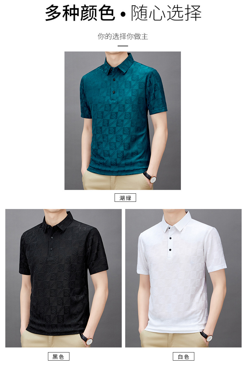 새로운 자카드 남성 아이스 실크 반팔 티셔츠 실키 여름 느슨한 빠른 건조 옷깃 원활한 폴로 셔츠 아이스 느낌 탑