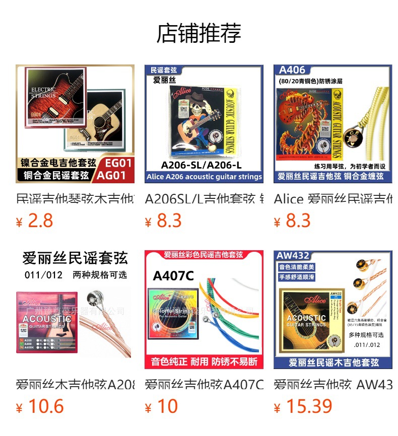 앨리스 기타 스트링 A306SL/XL 포크 기타 스트링 나무 기타 세트 스트링 포크 세트 스트링스토어 가기