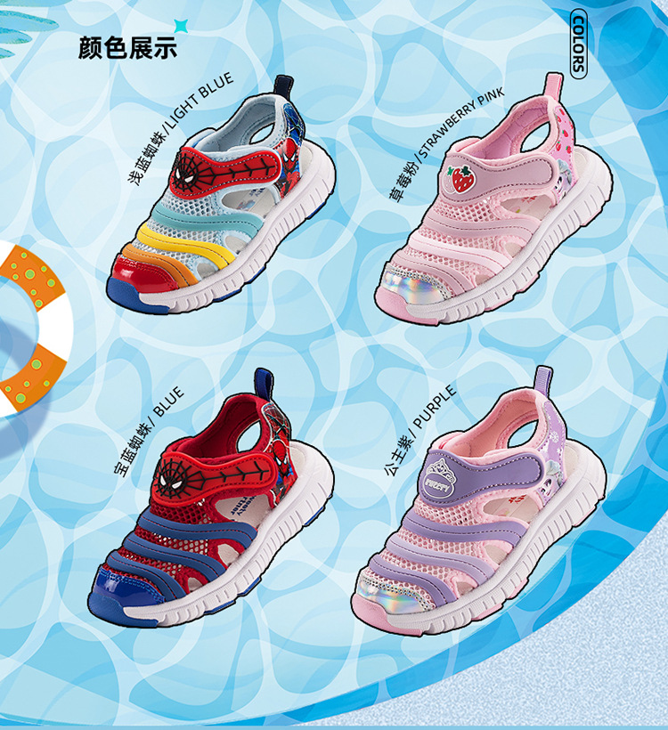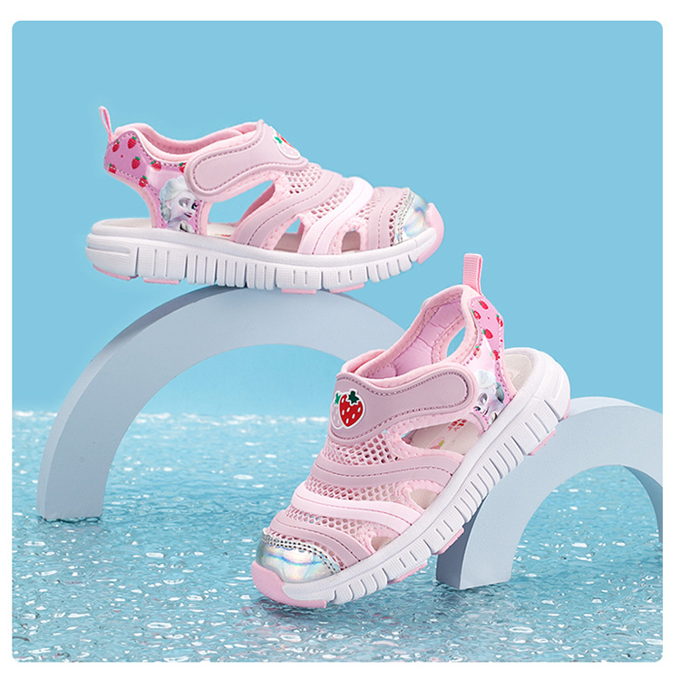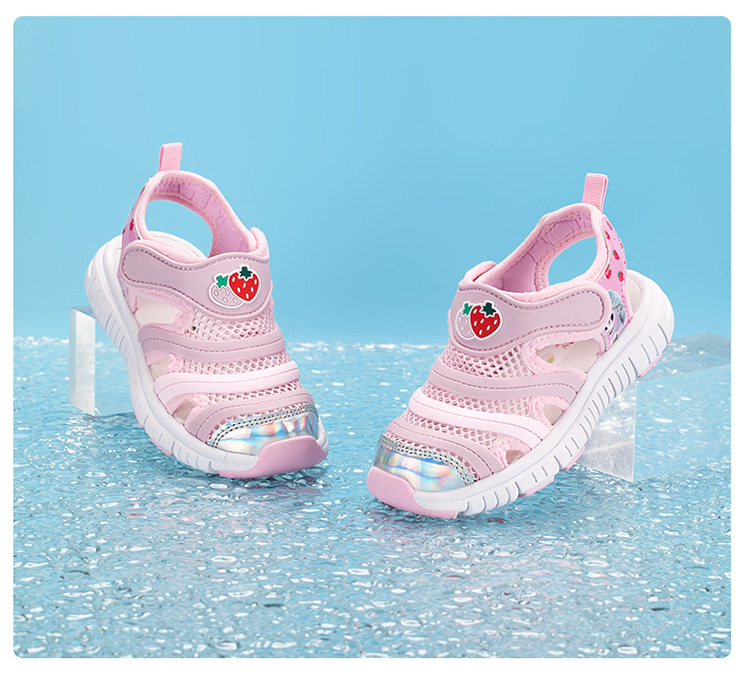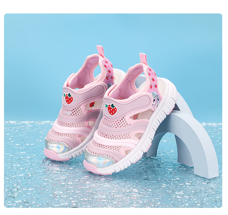 2024 새 아동용 신발 어린이 캐터필라 미끄럼 방지 샌들 통기성 닫힌 발가락 소녀의 부드러운 바닥 비치 슈즈스토어 가기