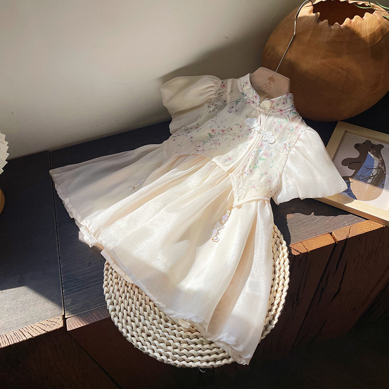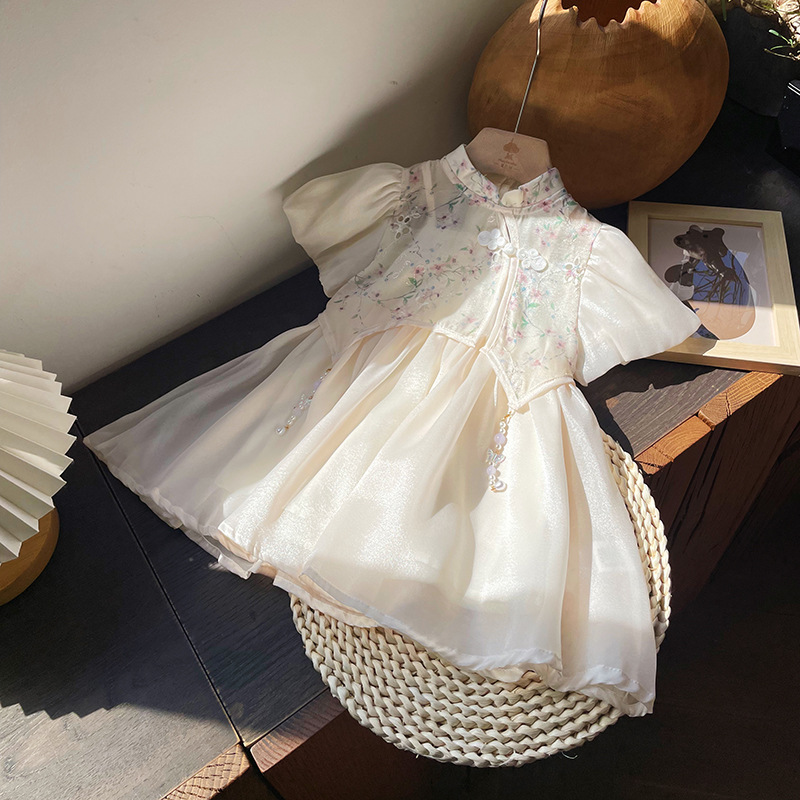 소녀 원피스 2024 여름 새로운 골동품 스타일 원피스 어린이 서양식 스커트 아기 소녀 여름 어린이 치마 도매스토어 가기