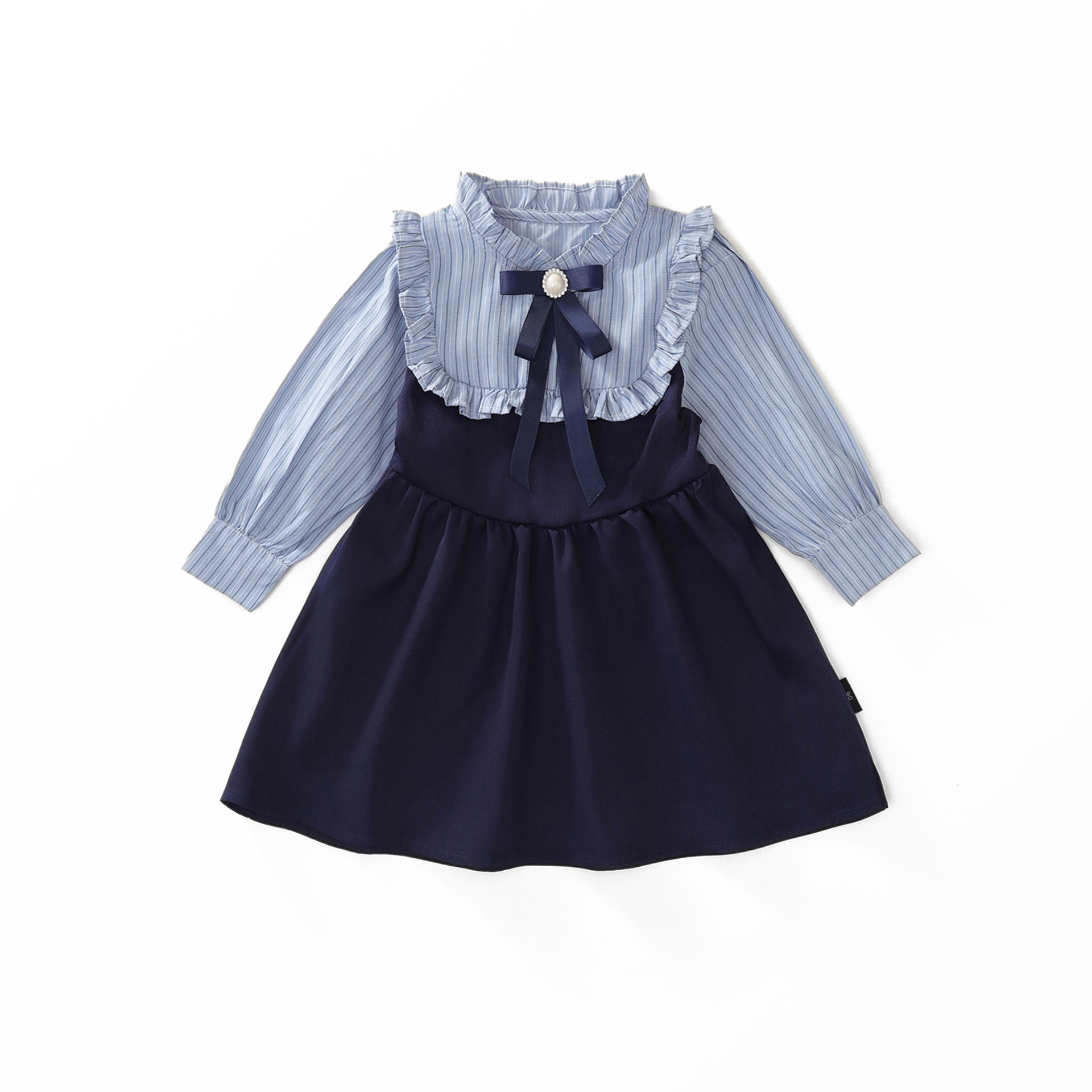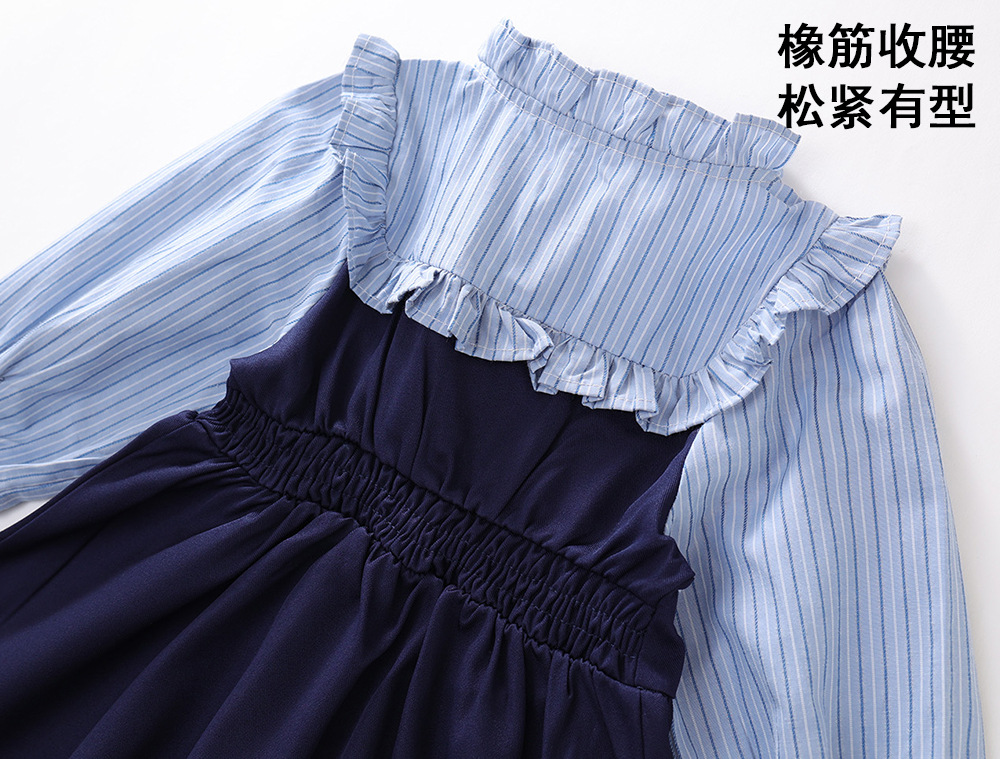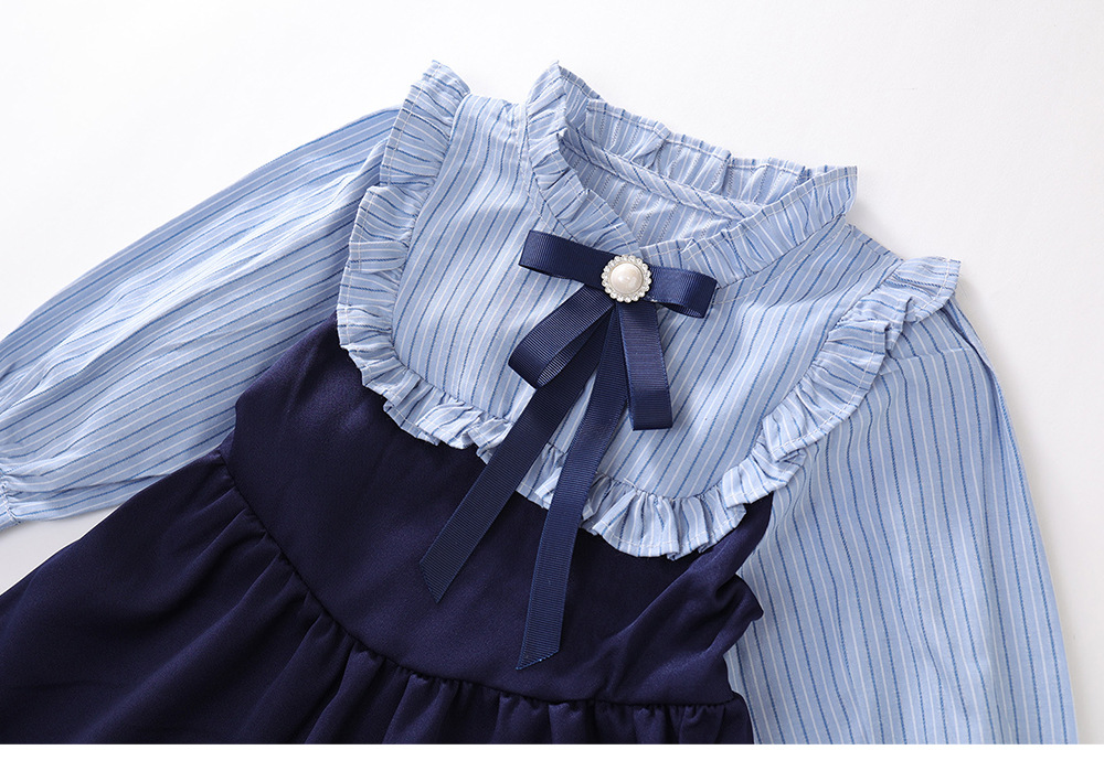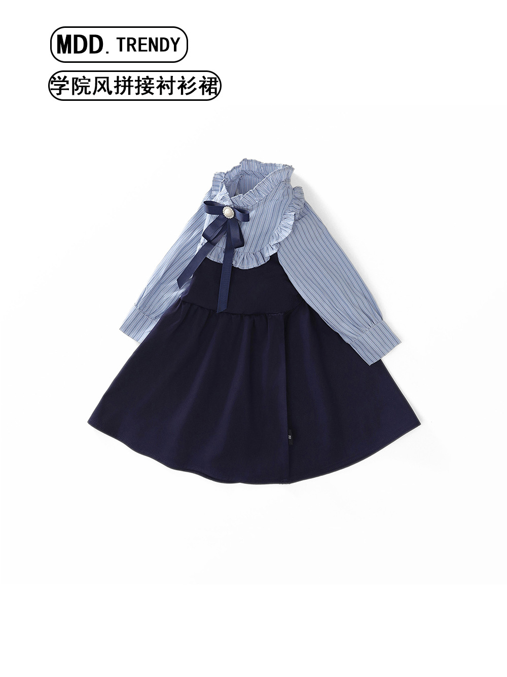 MDD 어린이 2024 봄과 가을 대학 스타일 아동복 소녀 줄무늬 패치 워크 원피스 서양식 공주 원피스 레이스 스커트스토어 가기