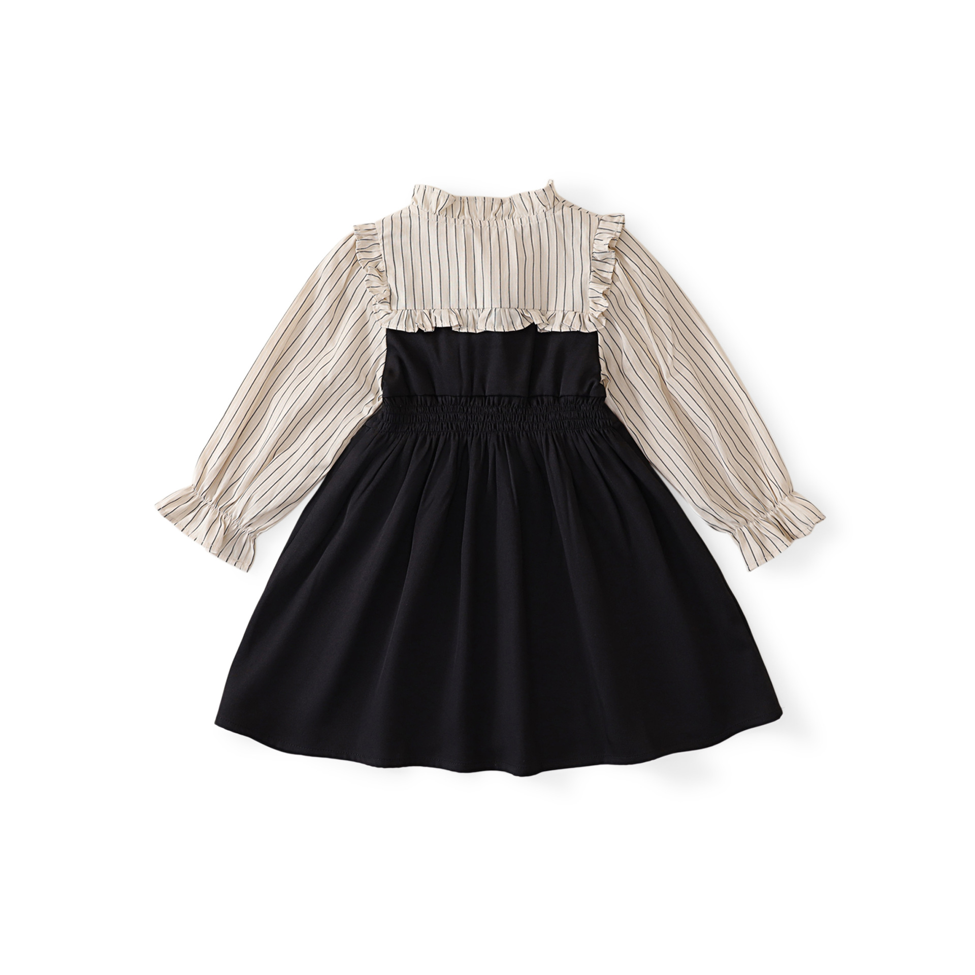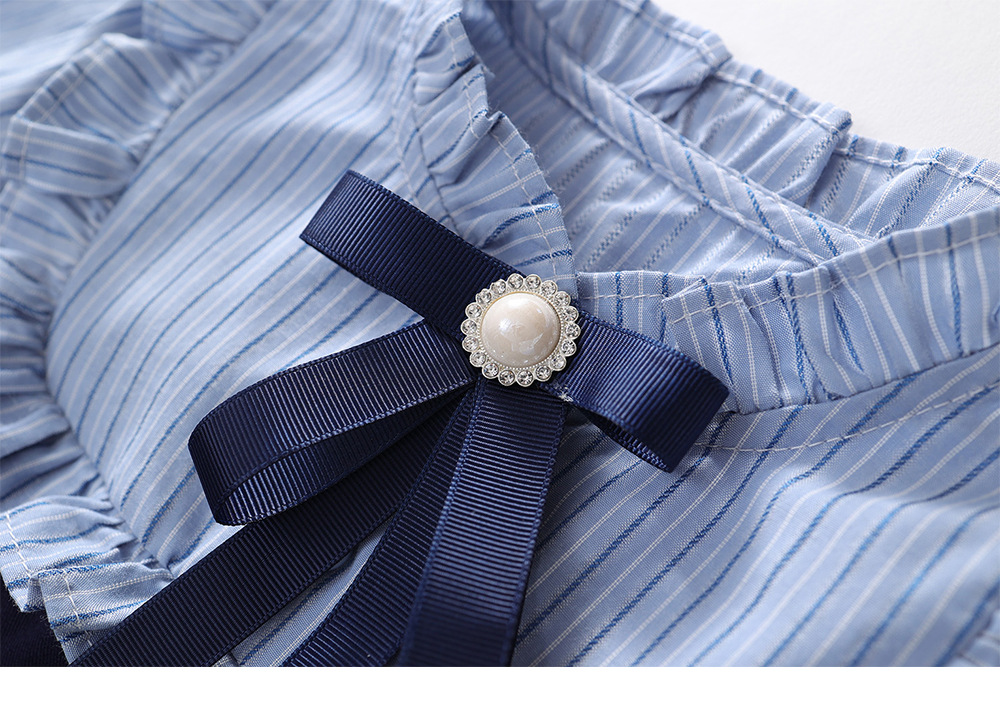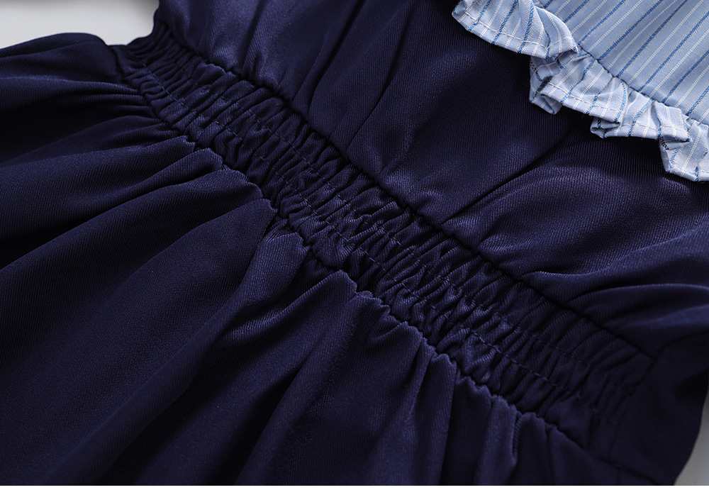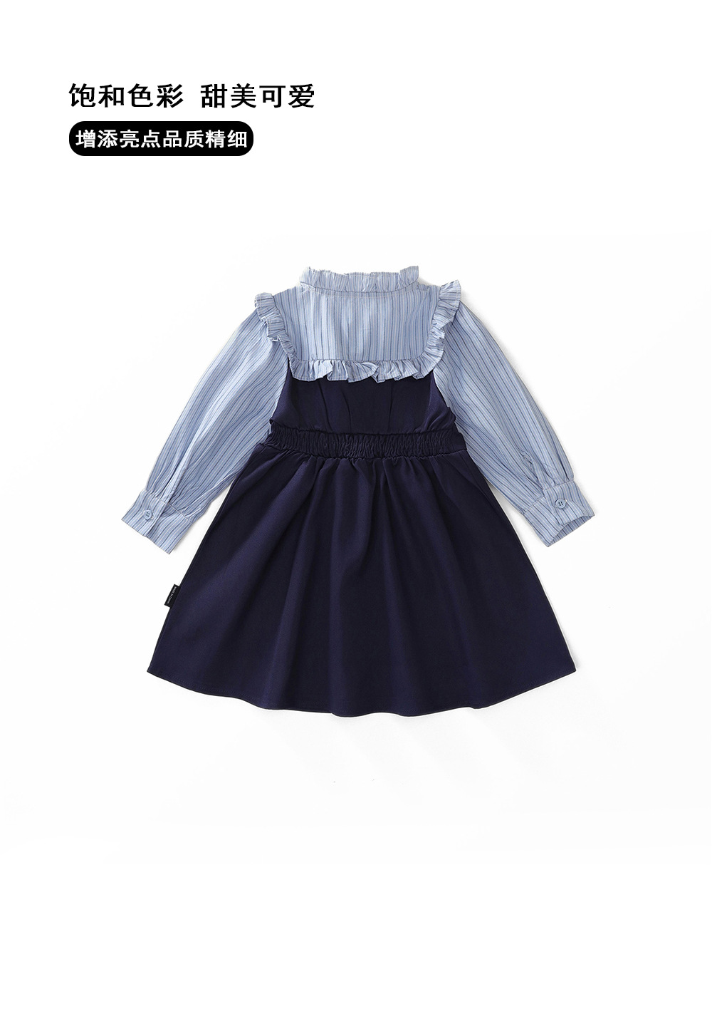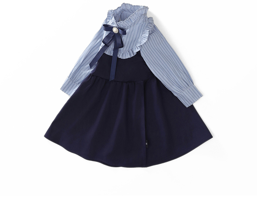 MDD 어린이 2024 봄과 가을 대학 스타일 아동복 소녀 줄무늬 패치 워크 원피스 서양식 공주 원피스 레이스 스커트스토어 가기
