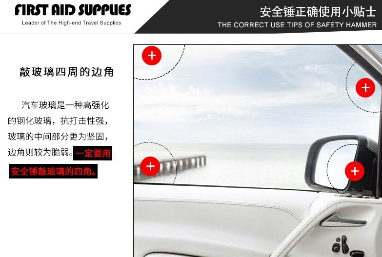 本款产品在外观设计上非常优异,颇有可圈可点之处:它和一般的同类产品相比,更人 性化、更符合实际需要。全金属汽车安全锤 实用消防应急逃生救生锤破窗器 KM45【宁可百年不用,不可一日不备,为您的安全保驾护航】产品虽小,威力不小,轻松破 窗,易于存放,越简单,越实用!危急时刻一个安全锤=一个救生的希望!