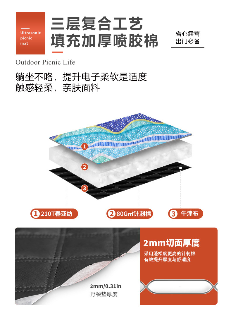 야외용 방수 초음파 방습 매트 휴대용 옥스포드 천 두꺼운 해변 매트 캠핑 필수품 피크닉 매트