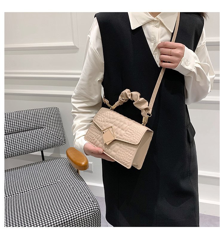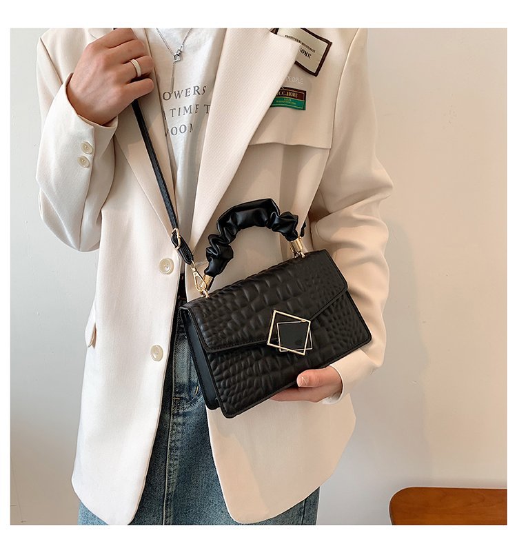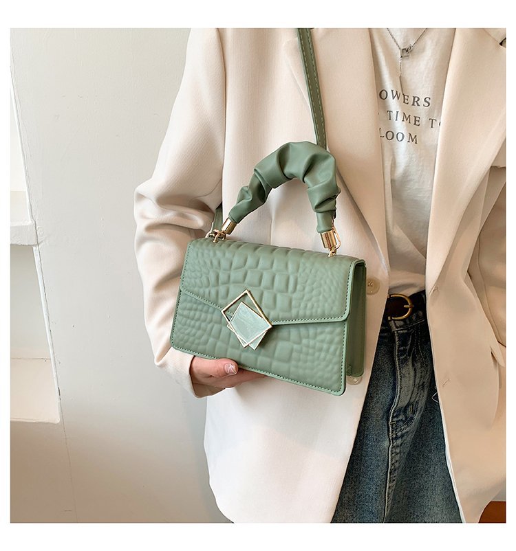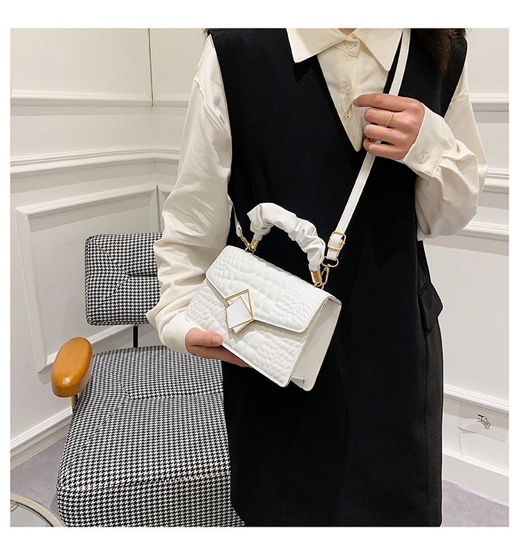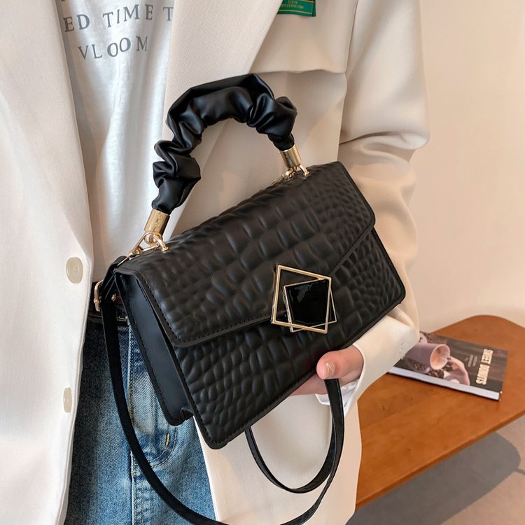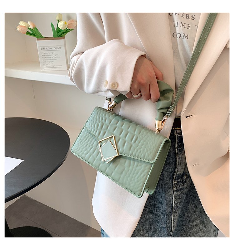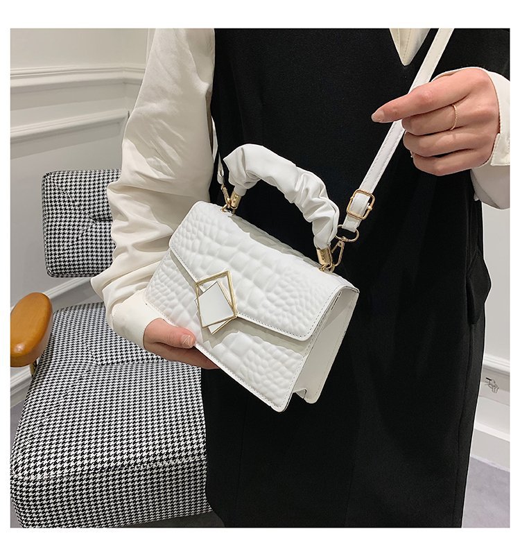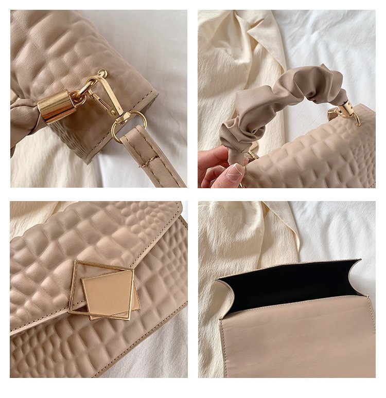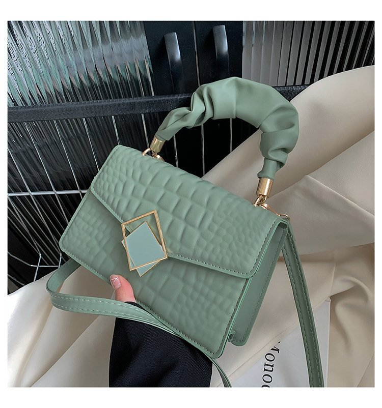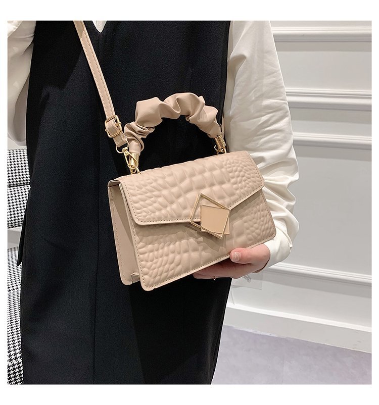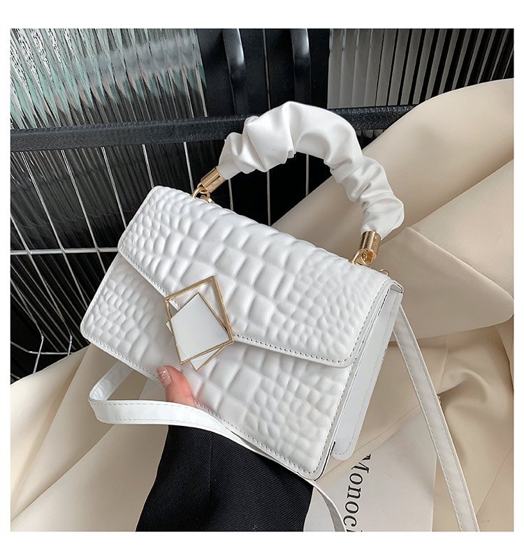 여성용 가방 2025 새로운 간단한 여성용 가방 솔리드 컬러 크로스 바디 백 플리츠 휴대용 숄더 백 스톤 패턴 작은 사각형 가방스토어 가기