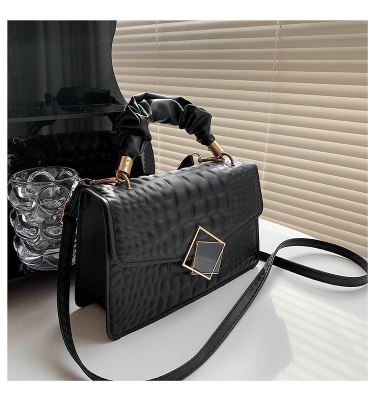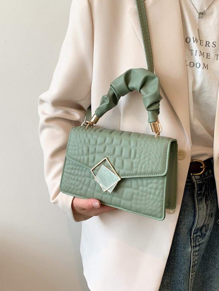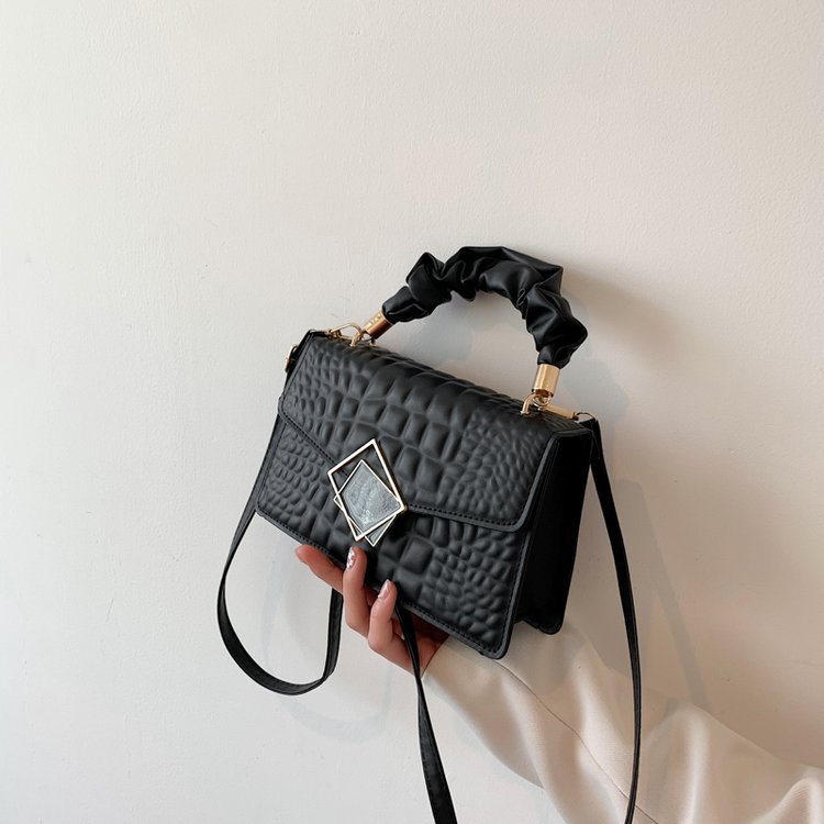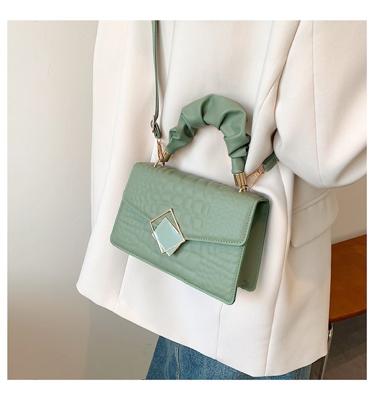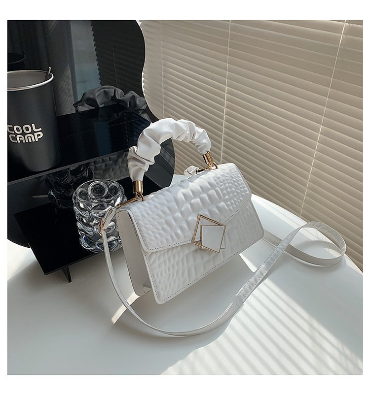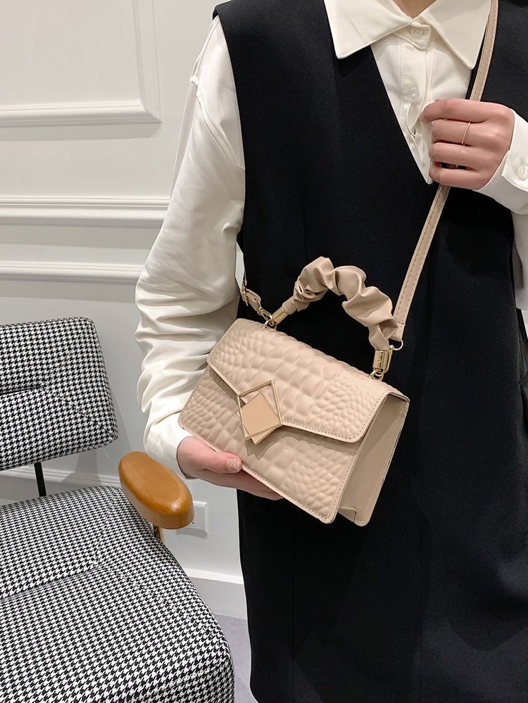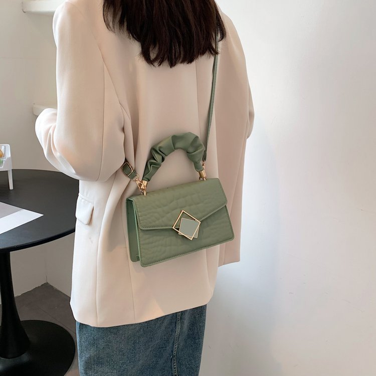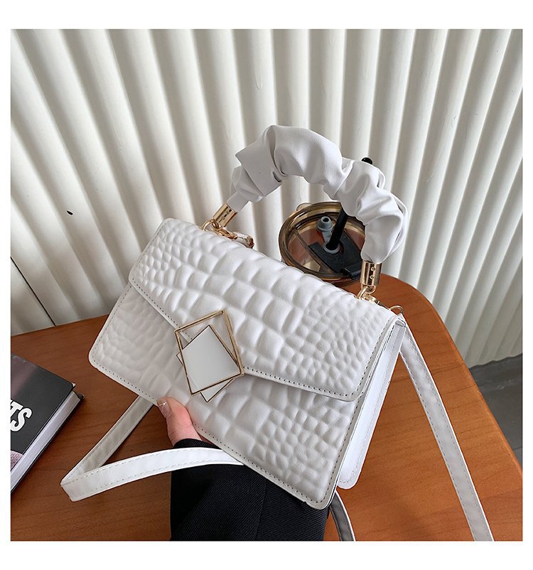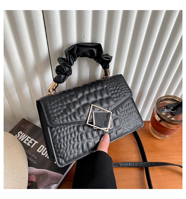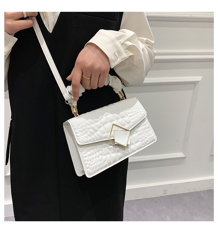 여성용 가방 2025 새로운 간단한 여성용 가방 솔리드 컬러 크로스 바디 백 플리츠 휴대용 숄더 백 스톤 패턴 작은 사각형 가방스토어 가기