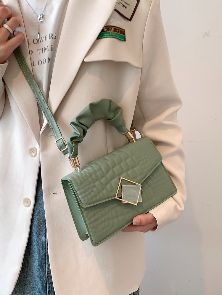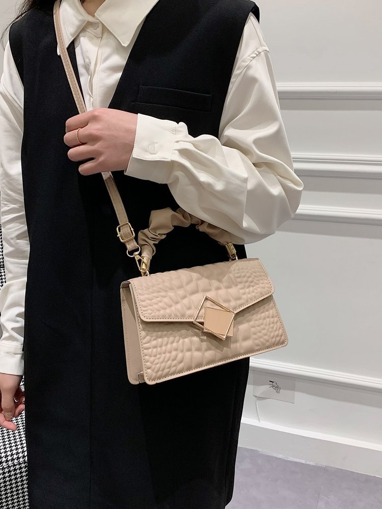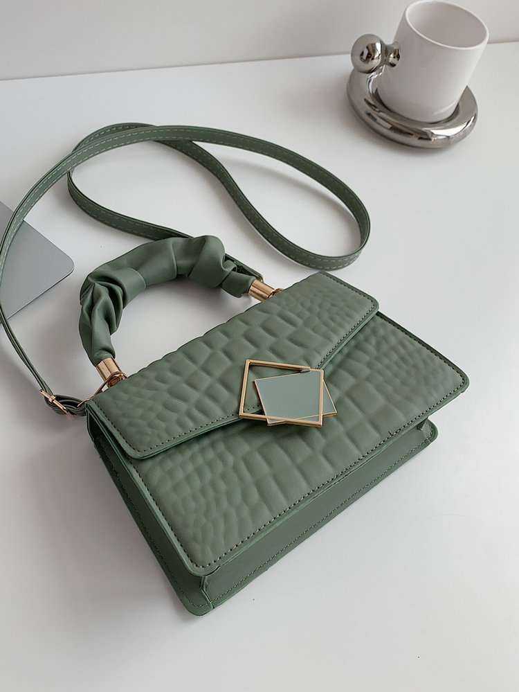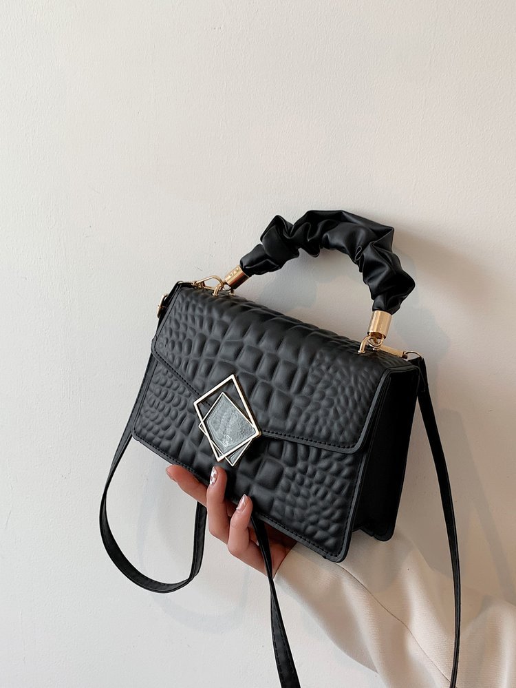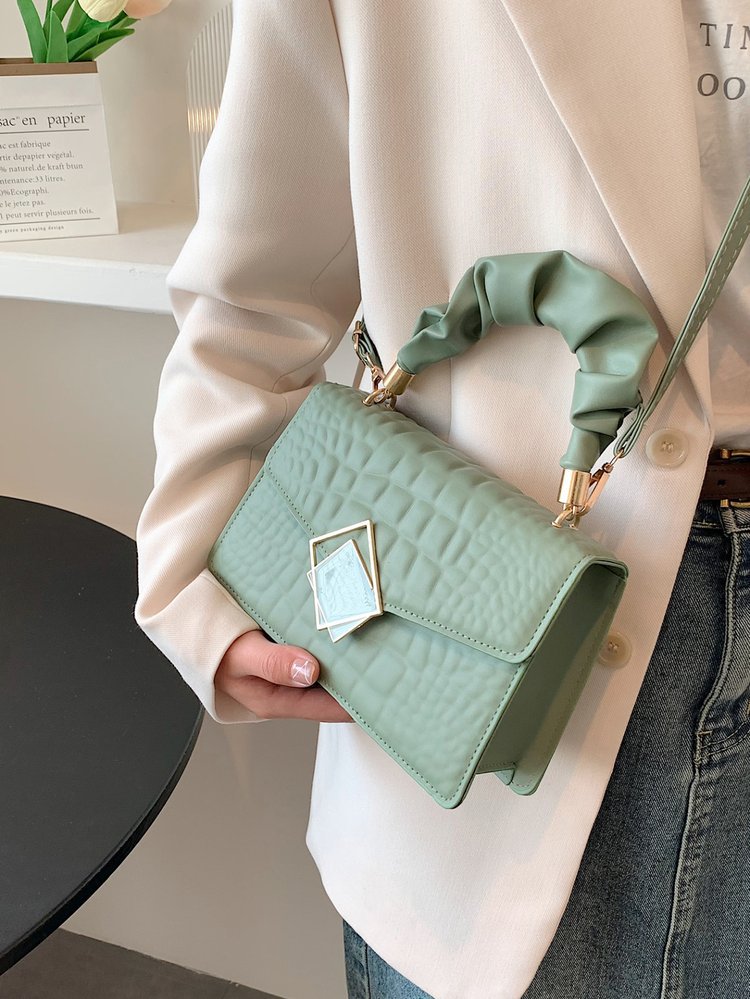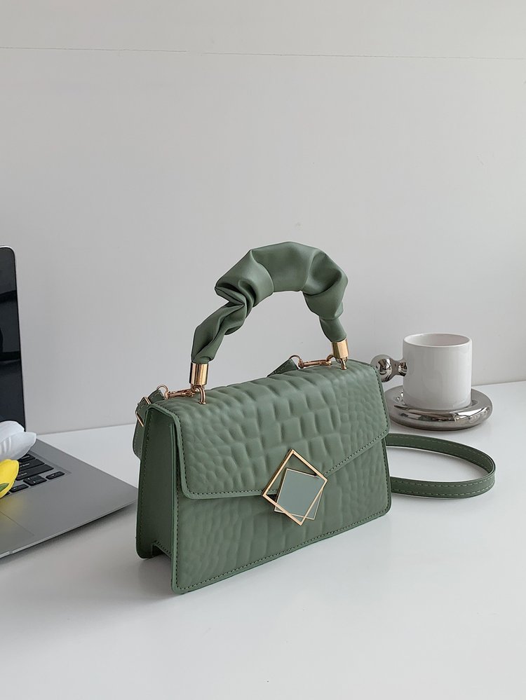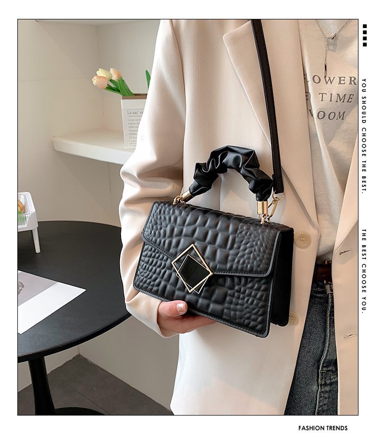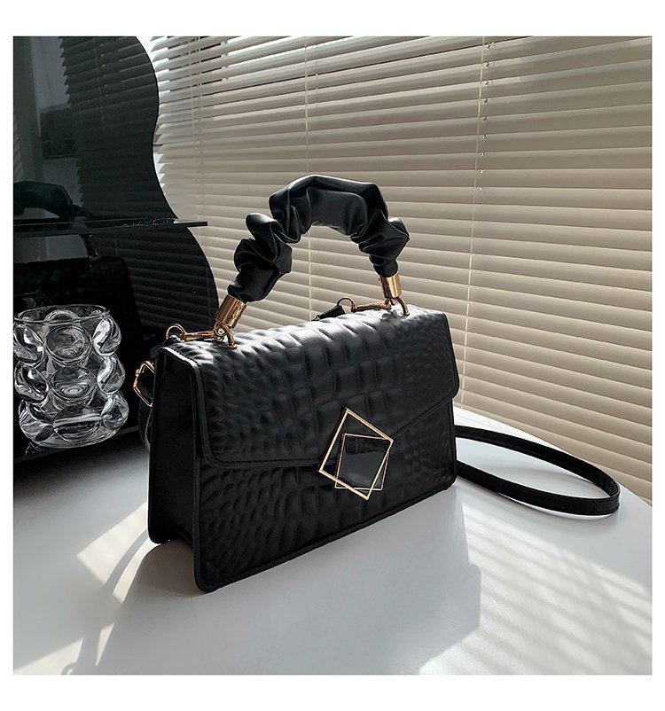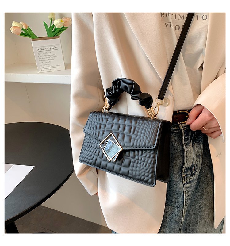 여성용 가방 2025 새로운 간단한 여성용 가방 솔리드 컬러 크로스 바디 백 플리츠 휴대용 숄더 백 스톤 패턴 작은 사각형 가방스토어 가기
