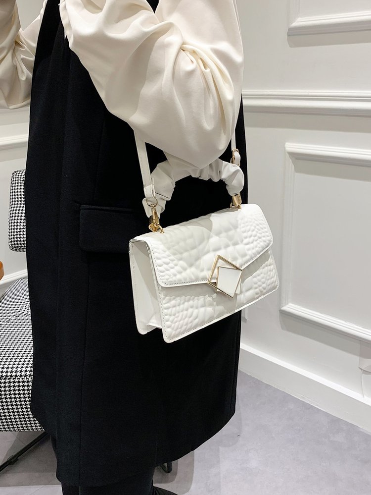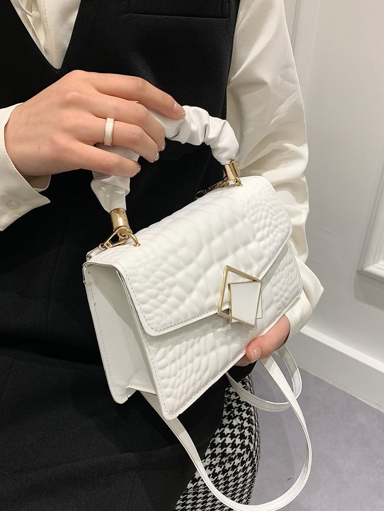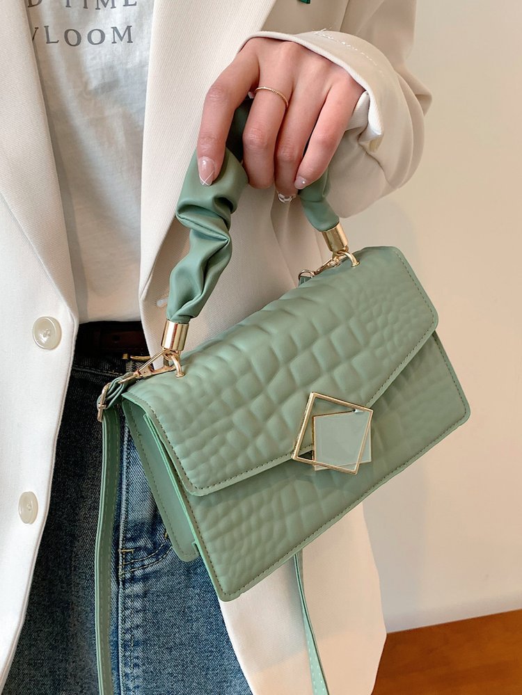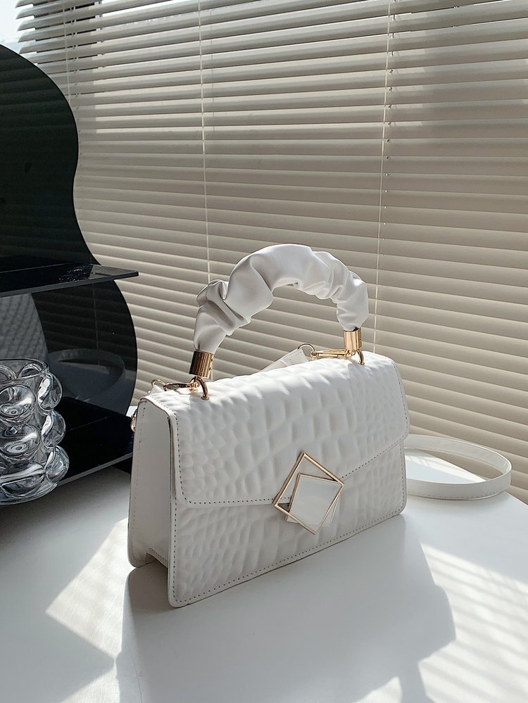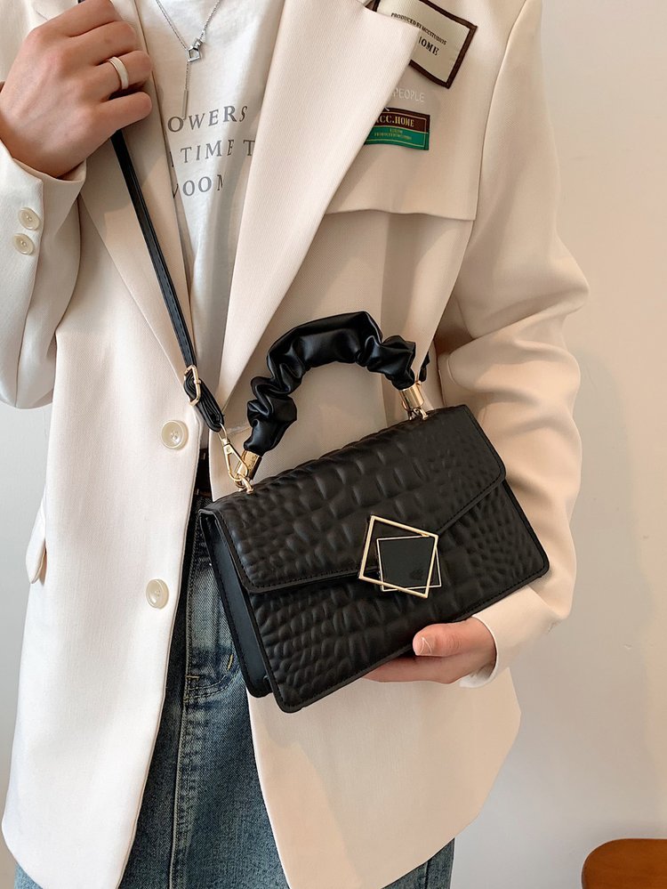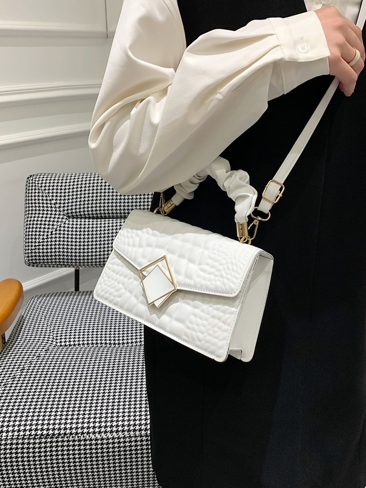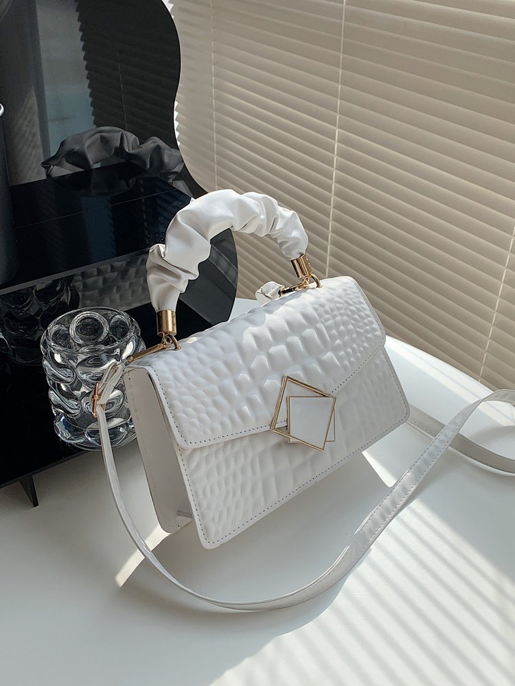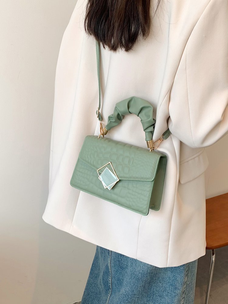 여성용 가방 2025 새로운 간단한 여성용 가방 솔리드 컬러 크로스 바디 백 플리츠 휴대용 숄더 백 스톤 패턴 작은 사각형 가방스토어 가기