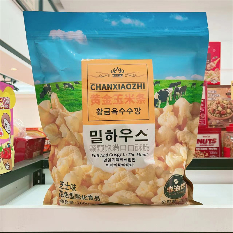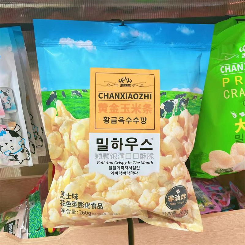 욕심 Xiaozhi 금 옥수수 스트립 튀겨지지 않은 부푼 음식 260g 가방 인터넷 유명인 캐주얼 스낵 큰 가방스토어 가기