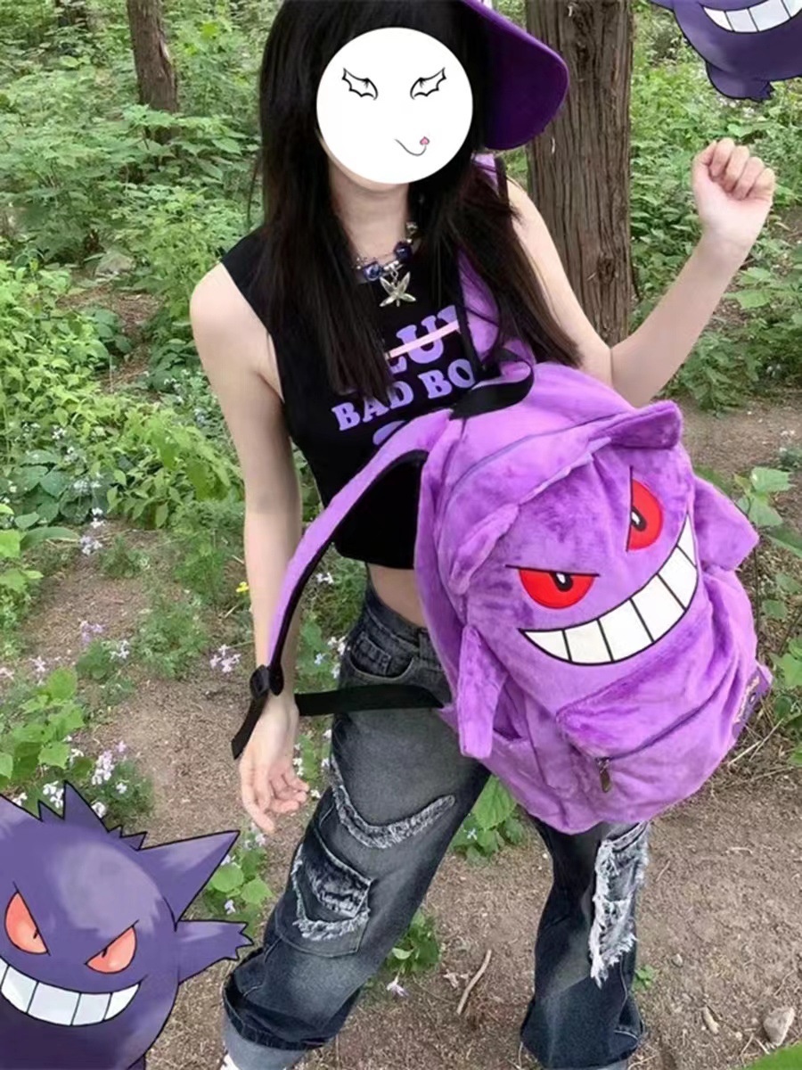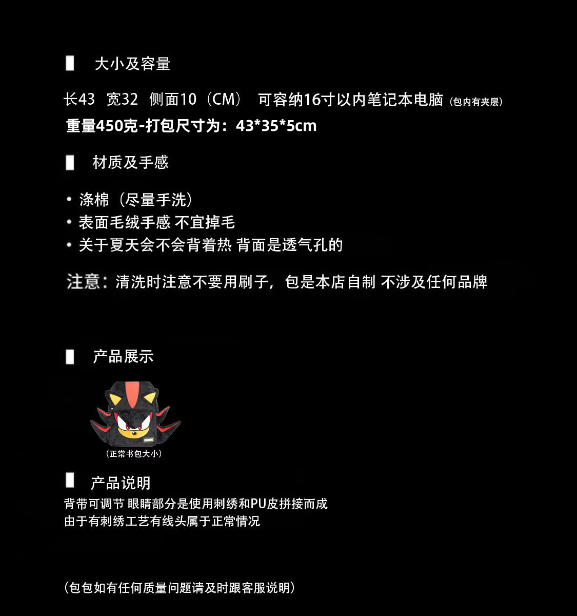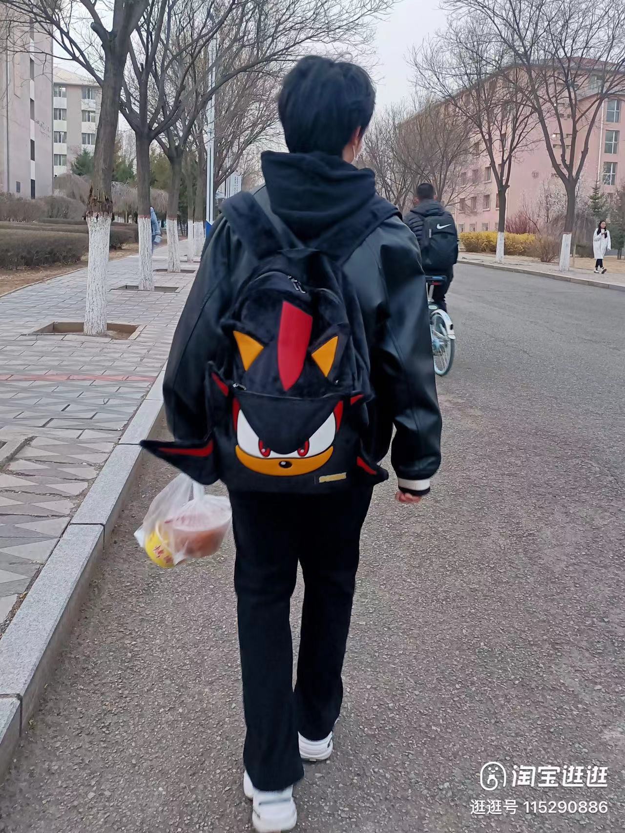 Wlgs 수제 소닉 섀도우 블랙 플러시 틈새 배낭 커플 캐주얼 가방 트렌디 한 책가방 학생 가방스토어 가기