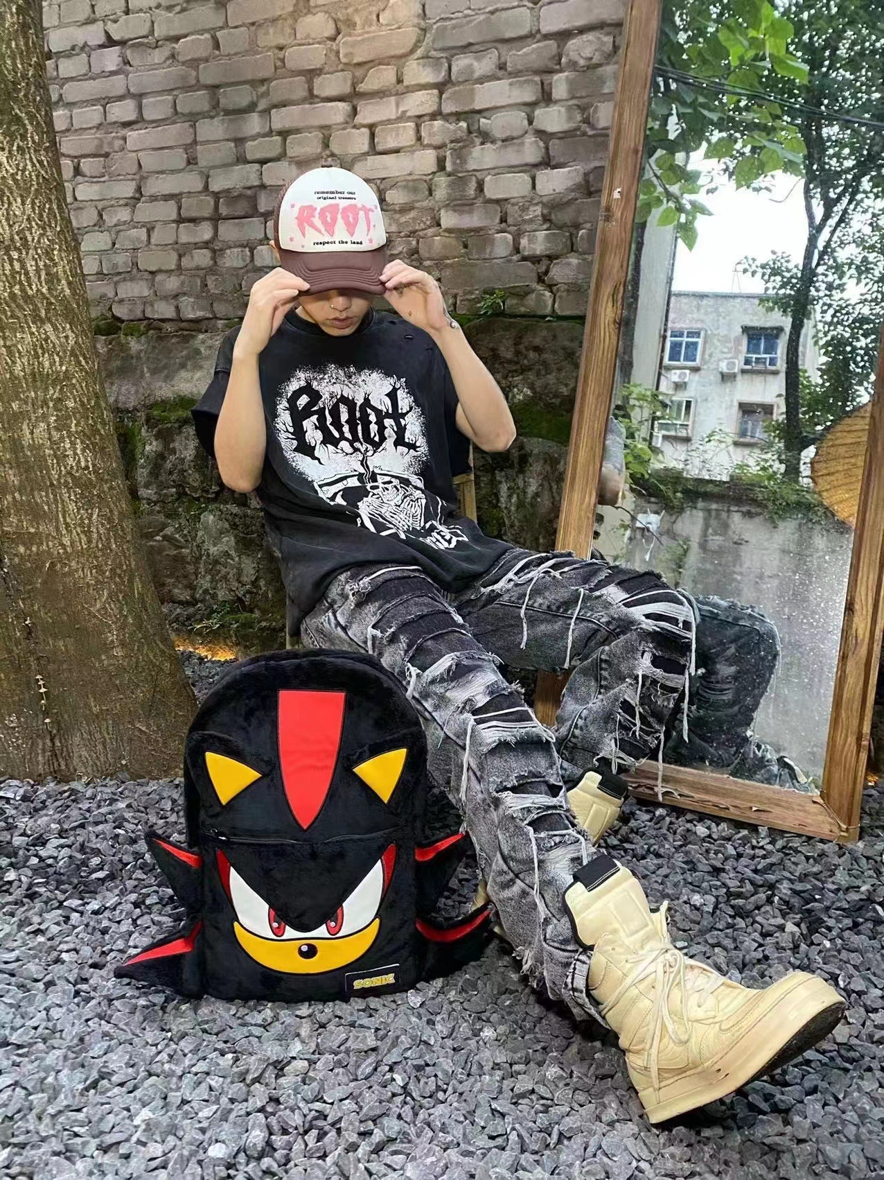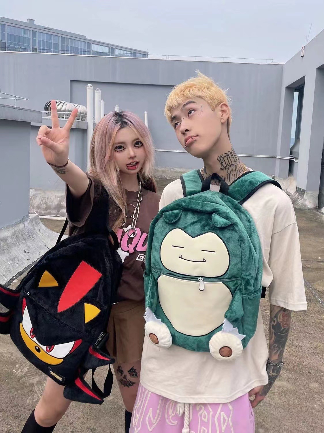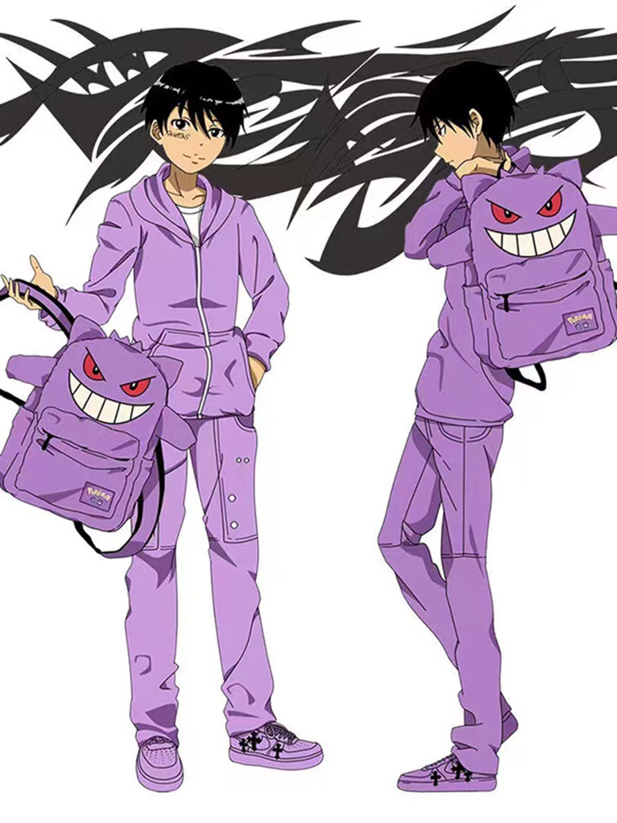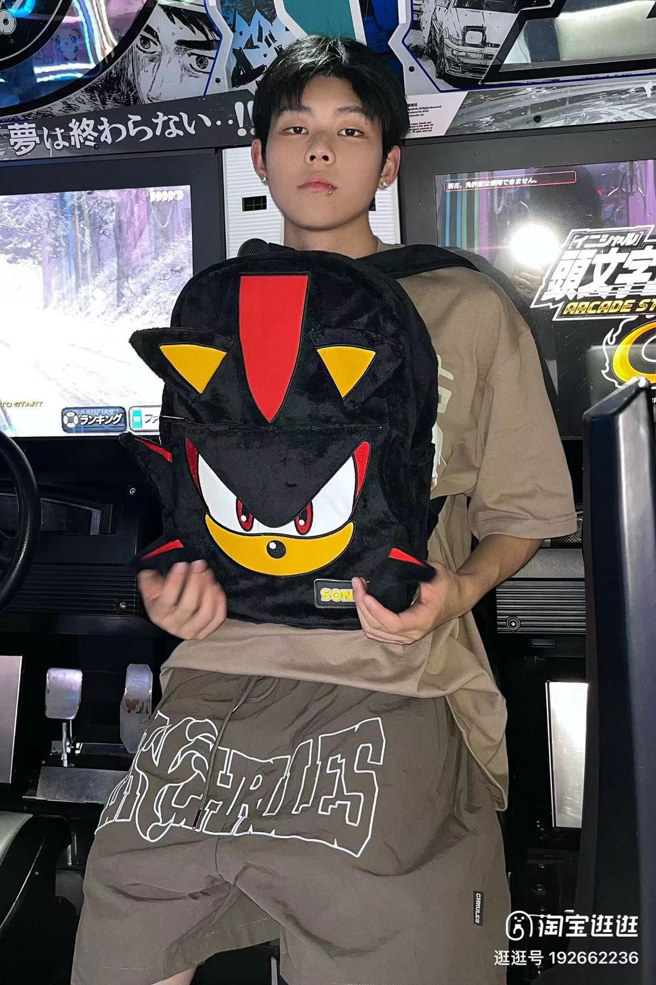 Wlgs 수제 소닉 섀도우 블랙 플러시 틈새 배낭 커플 캐주얼 가방 트렌디 한 책가방 학생 가방스토어 가기