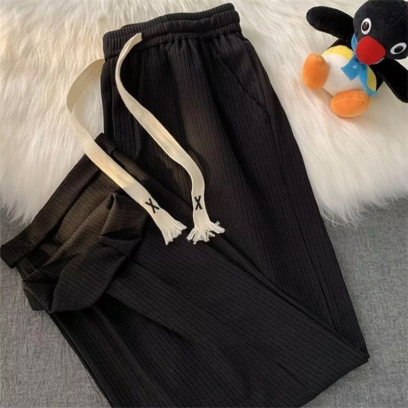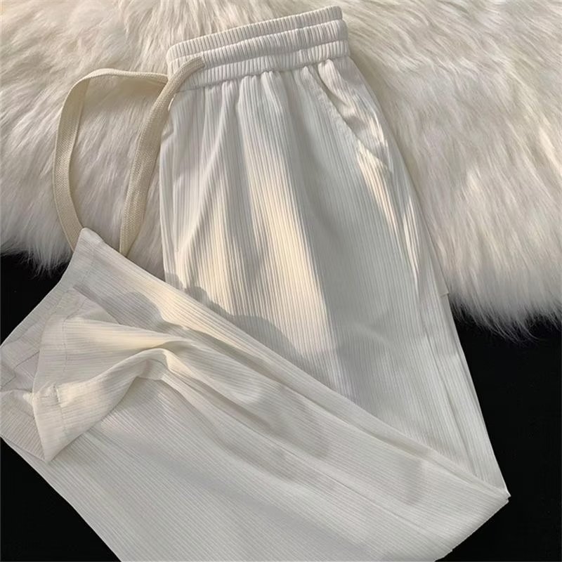 아이스 실크 빠른 건조 바지 남성 여름 얇은 패션 브랜드 느슨한 발목 묶인 에어컨 바지 트렌디 한 캐주얼 스포츠 크롭 바지